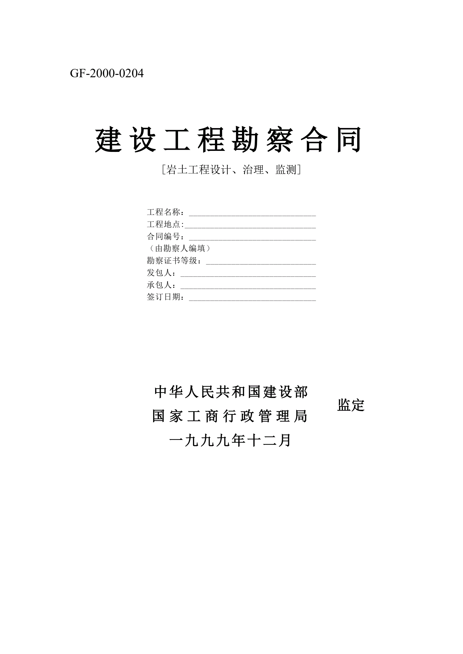 >建设工程勘察合同[岩土工程设计、治理、监测]