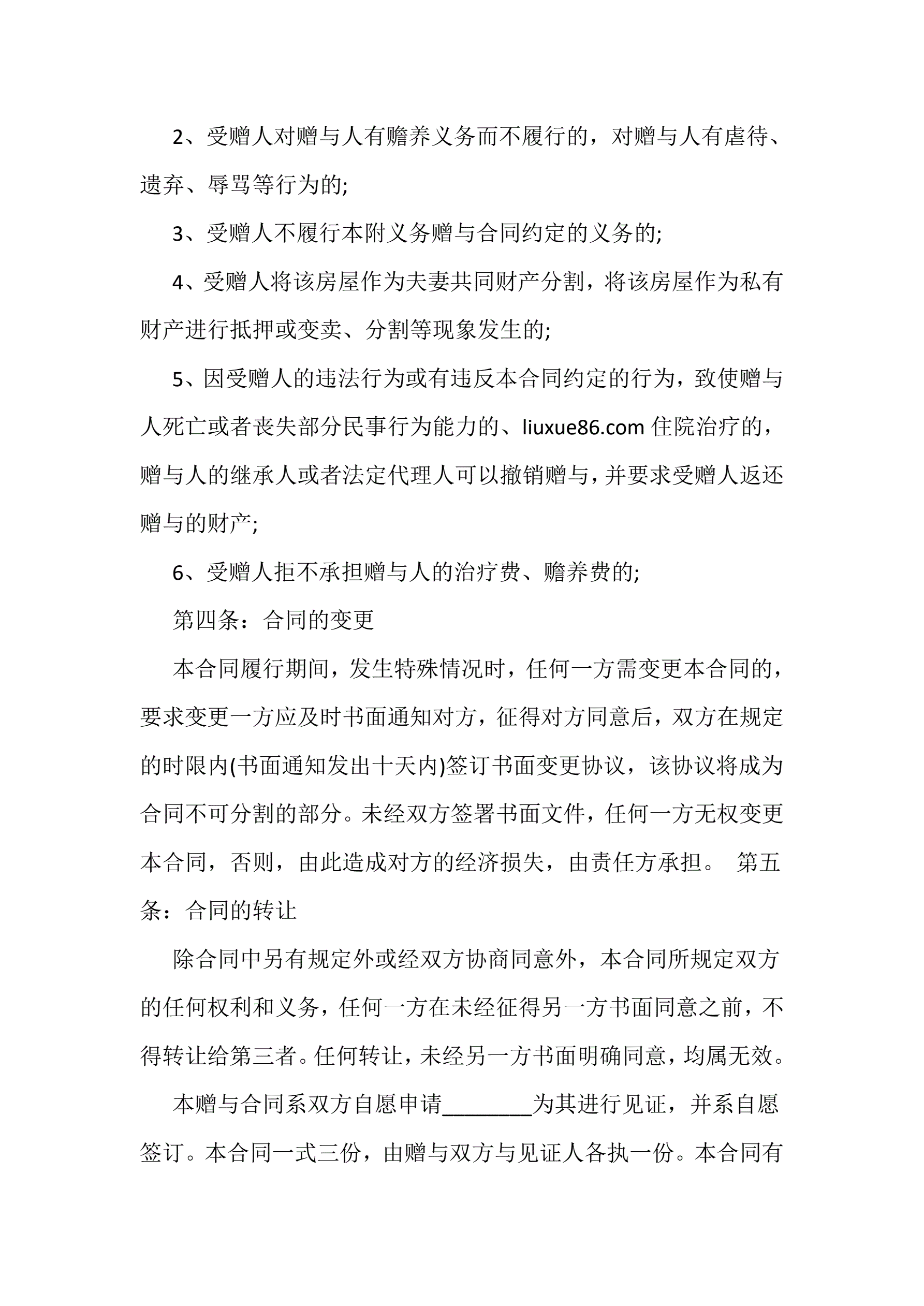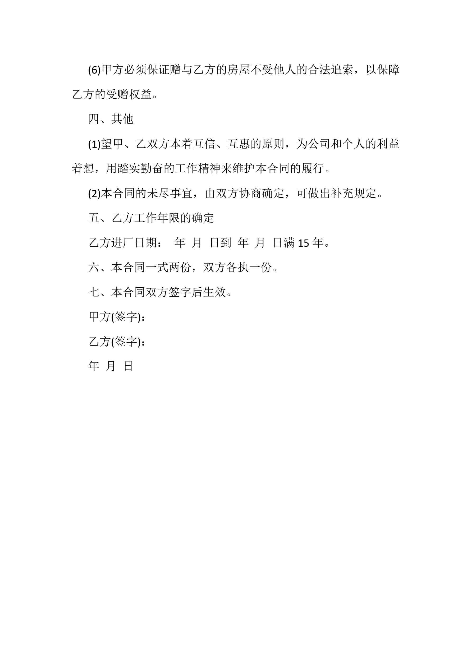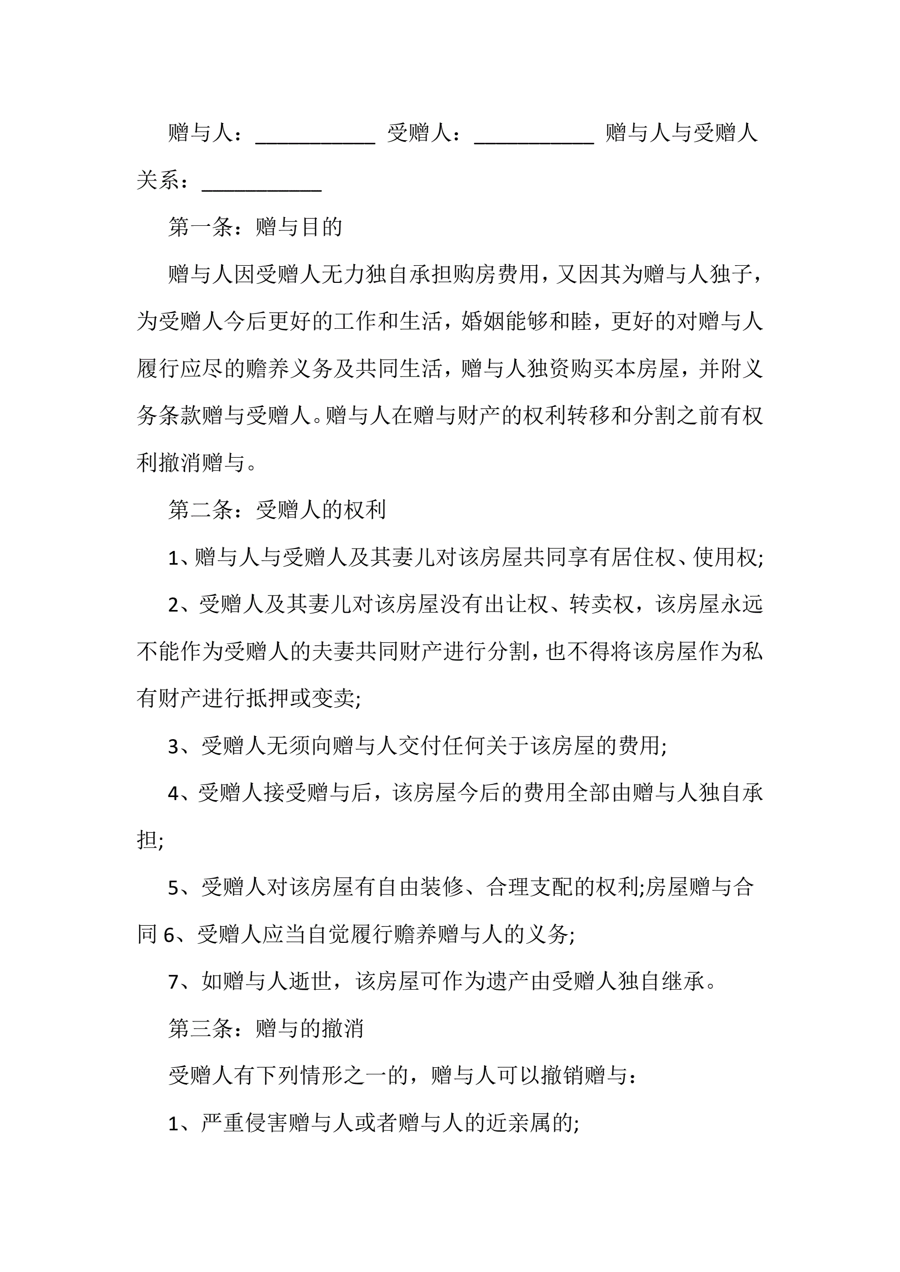 >父母房屋赠与协议书5份