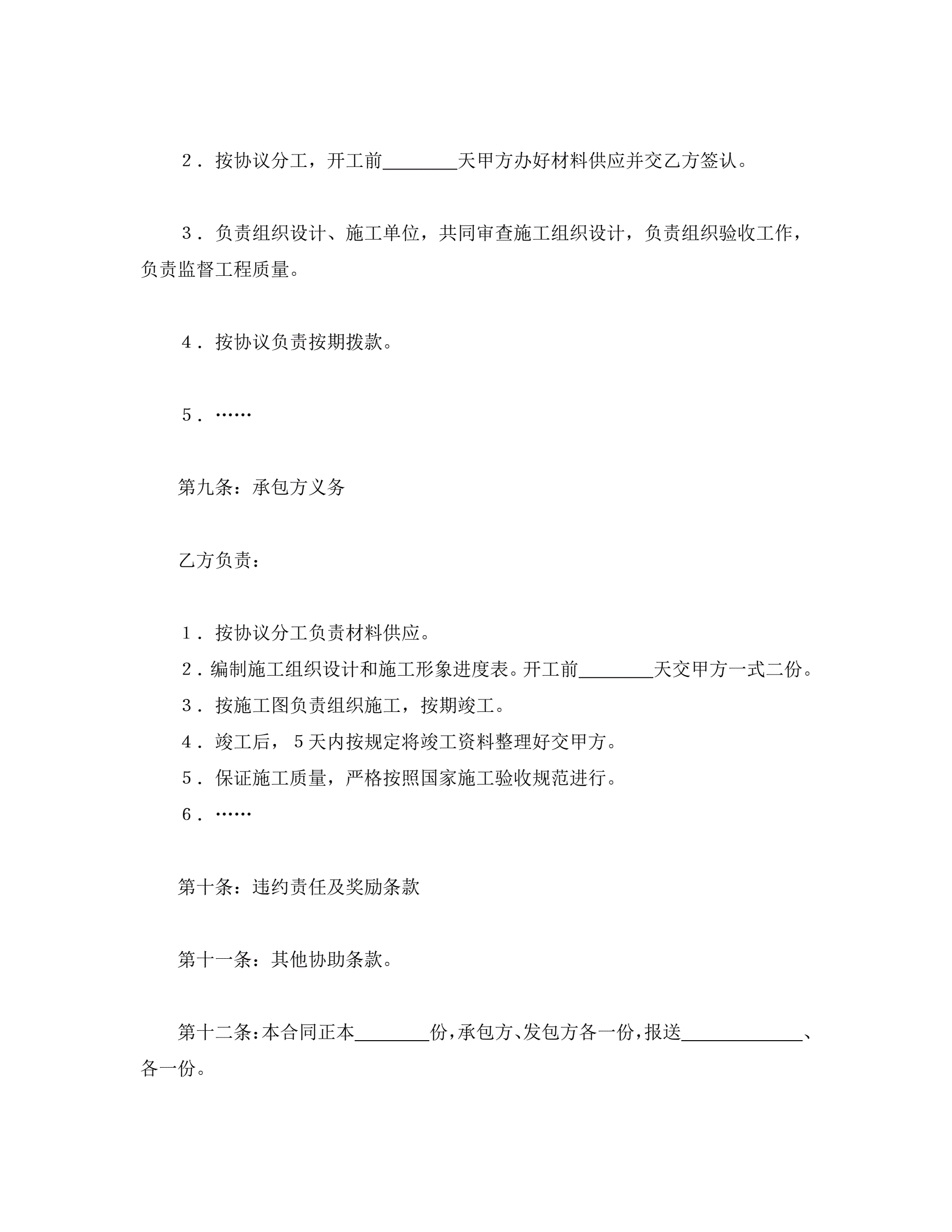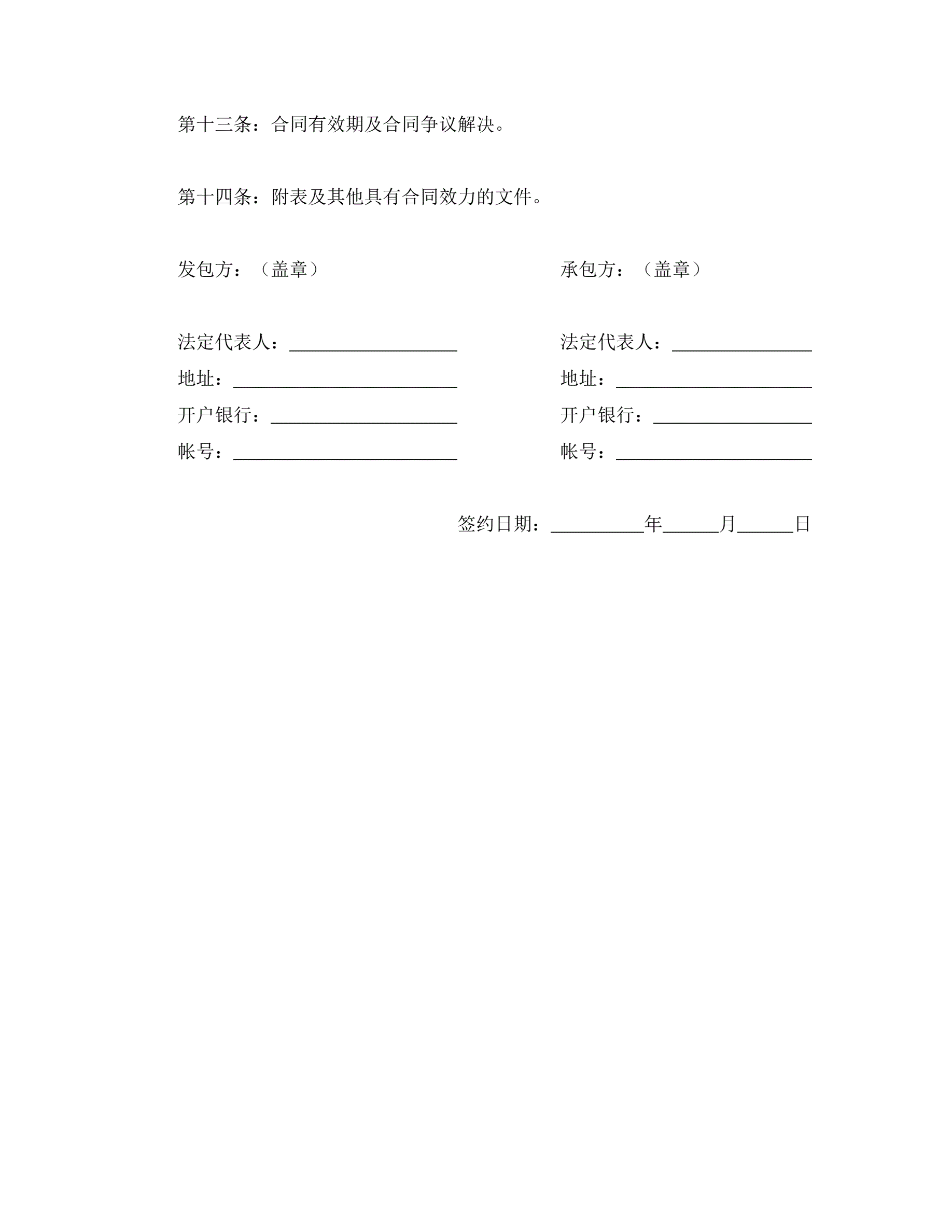 建筑安装工程承包合同协议条款