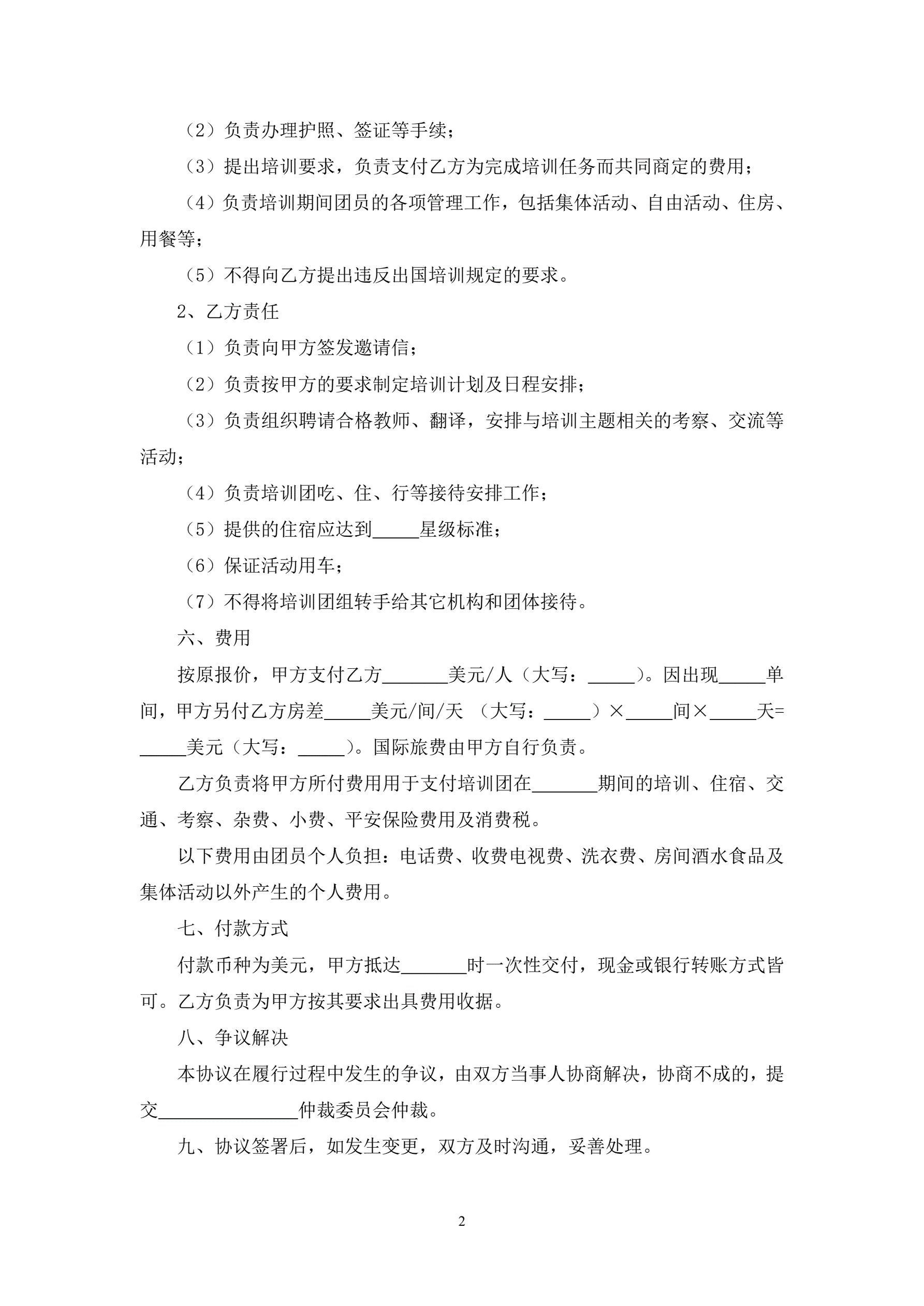 >出国培训委托协议书