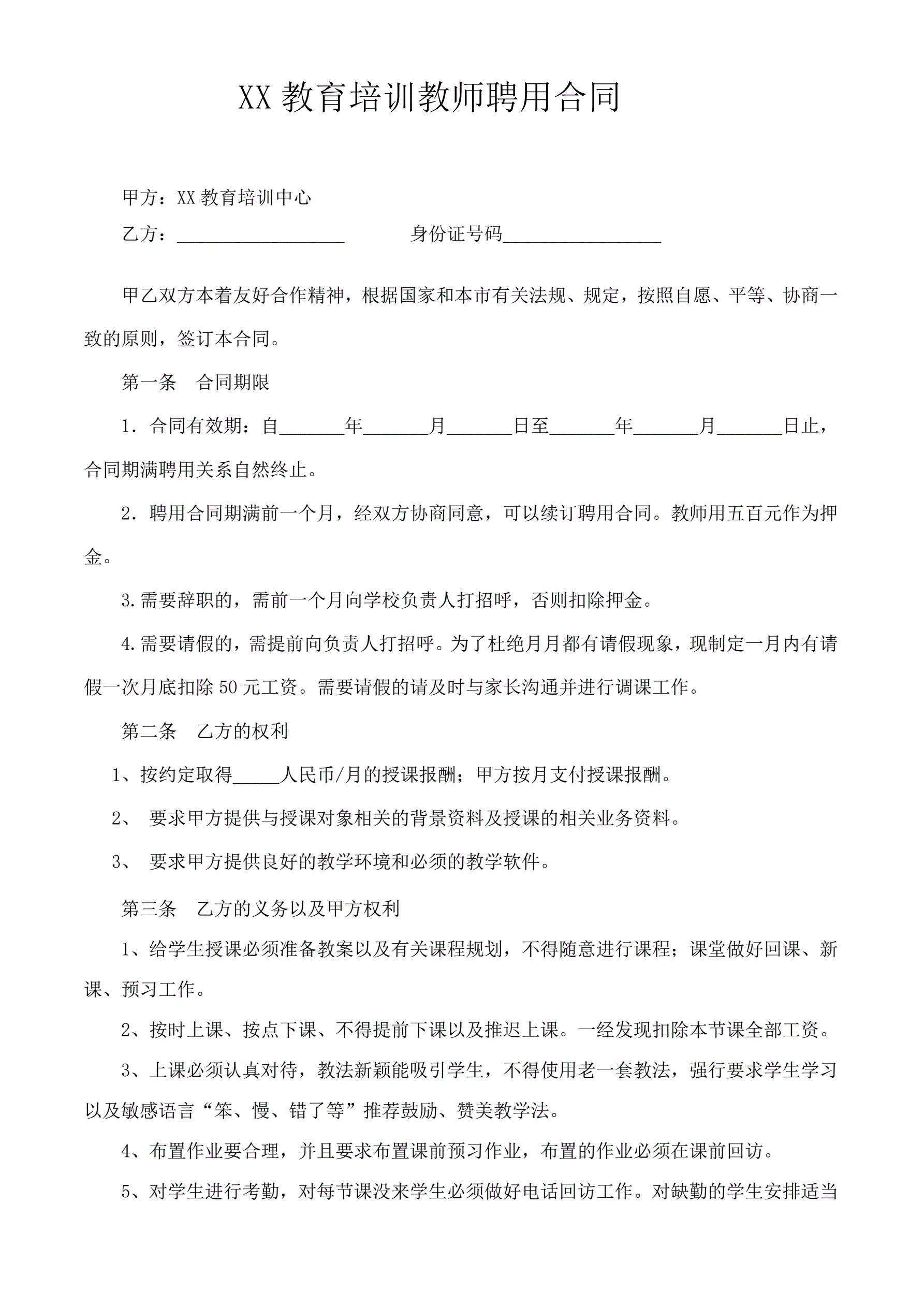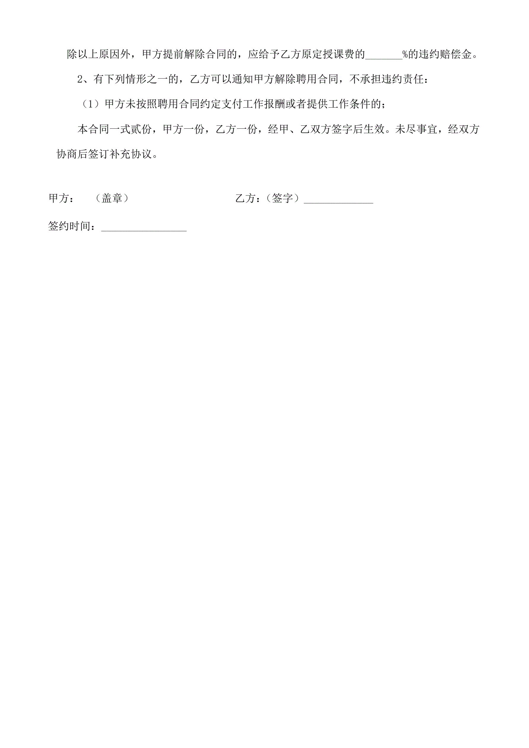 培训机构教师聘用合同可用