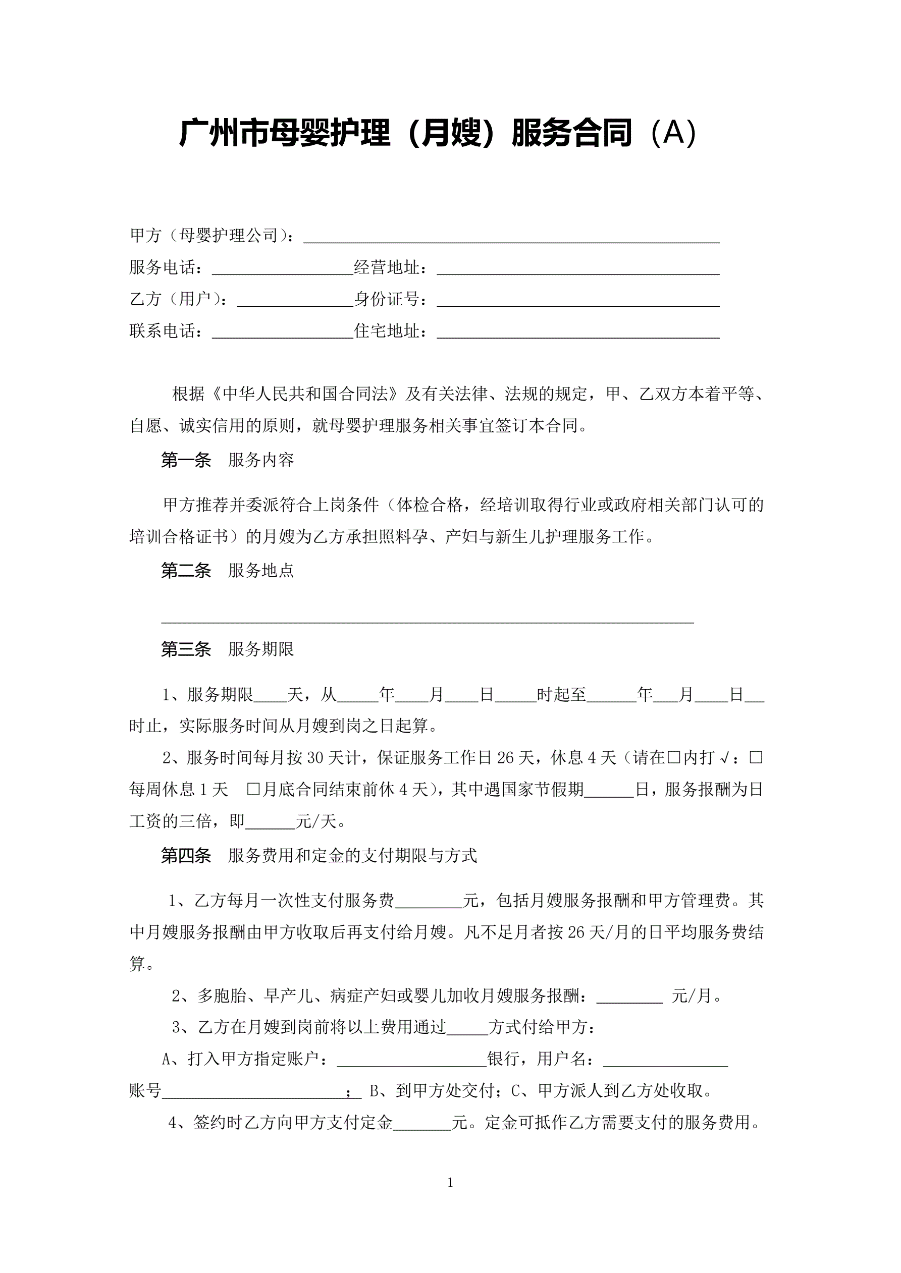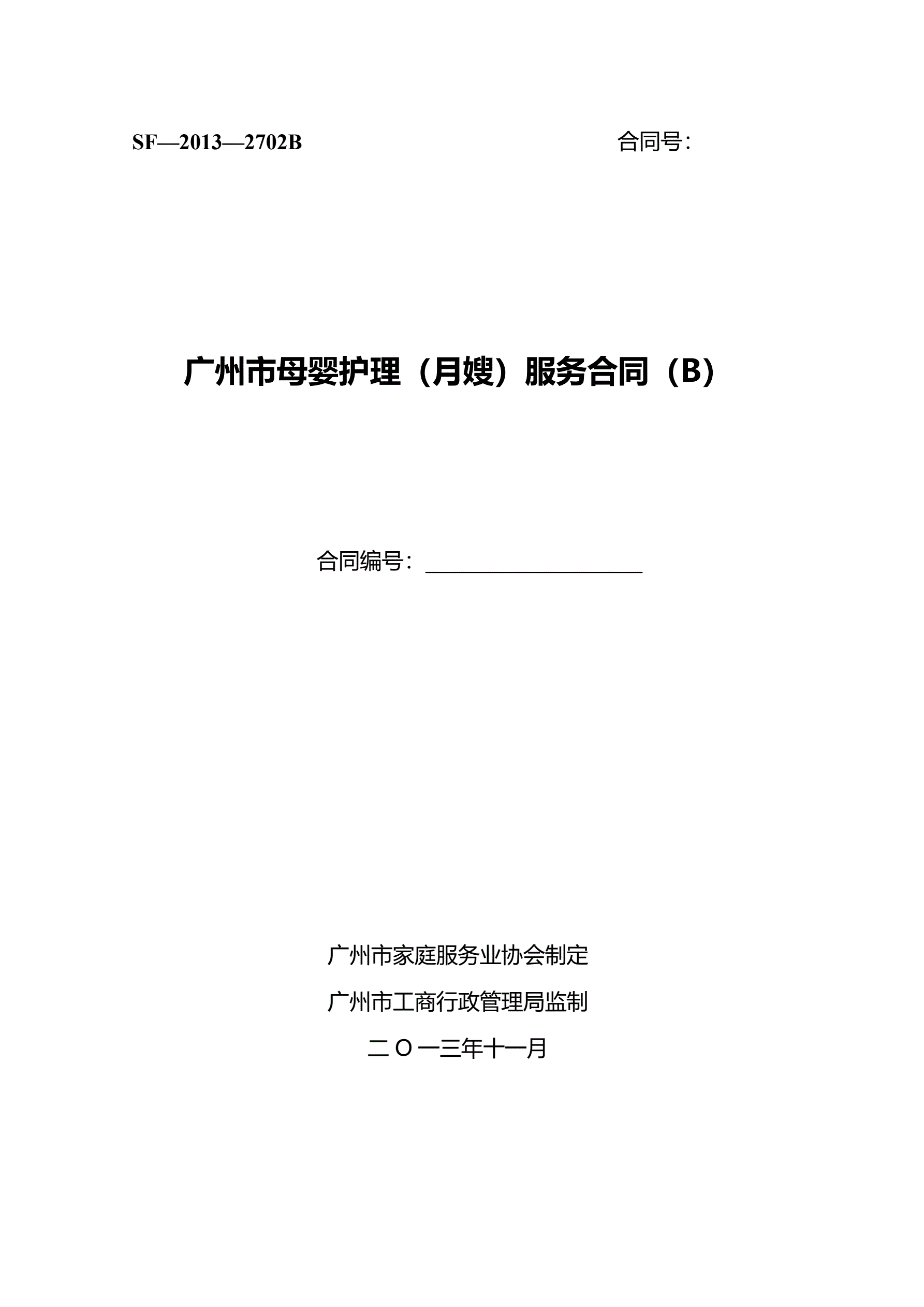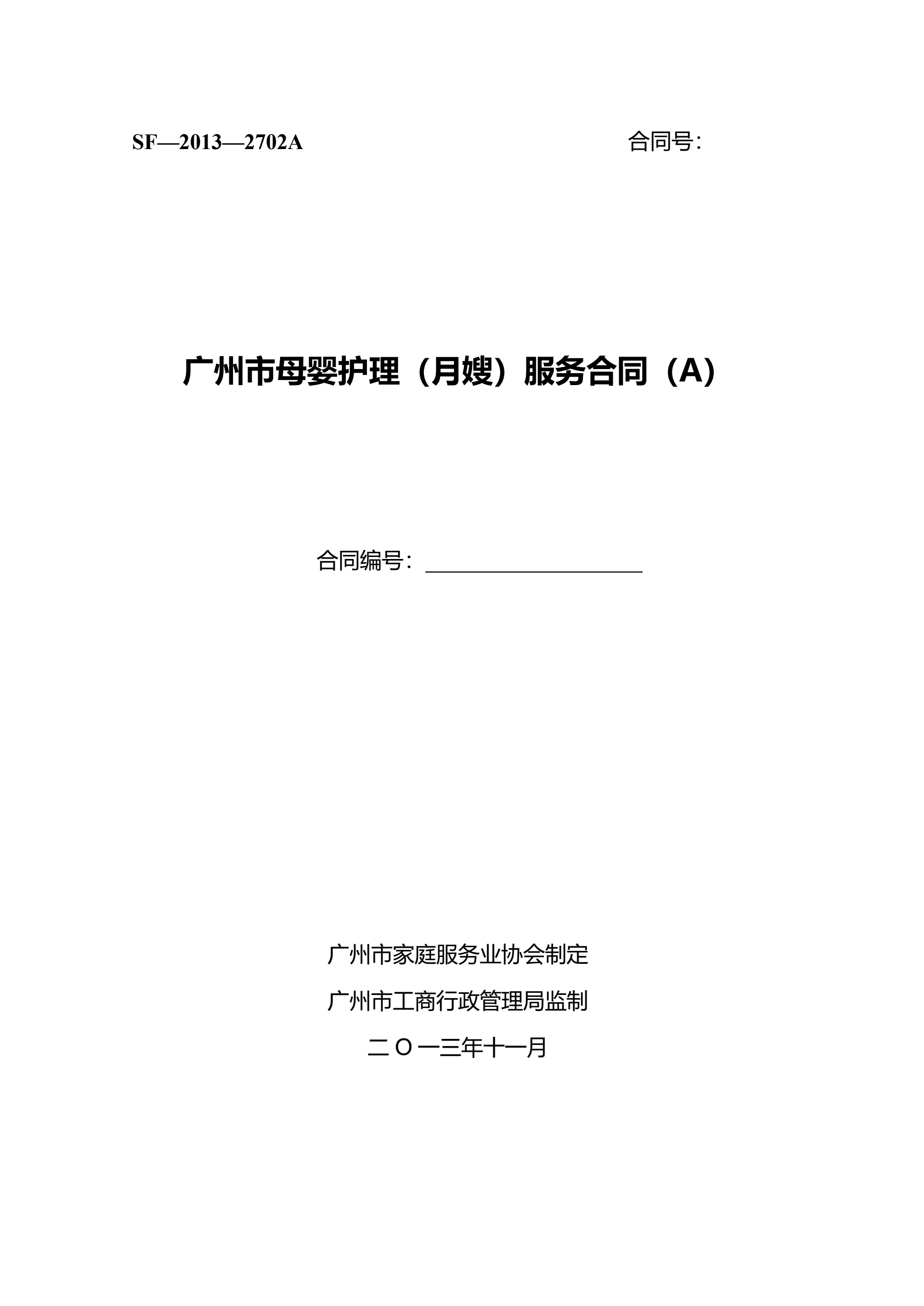 >广州市母婴护理(月嫂)服务合同SF-2013-2702A、2702B