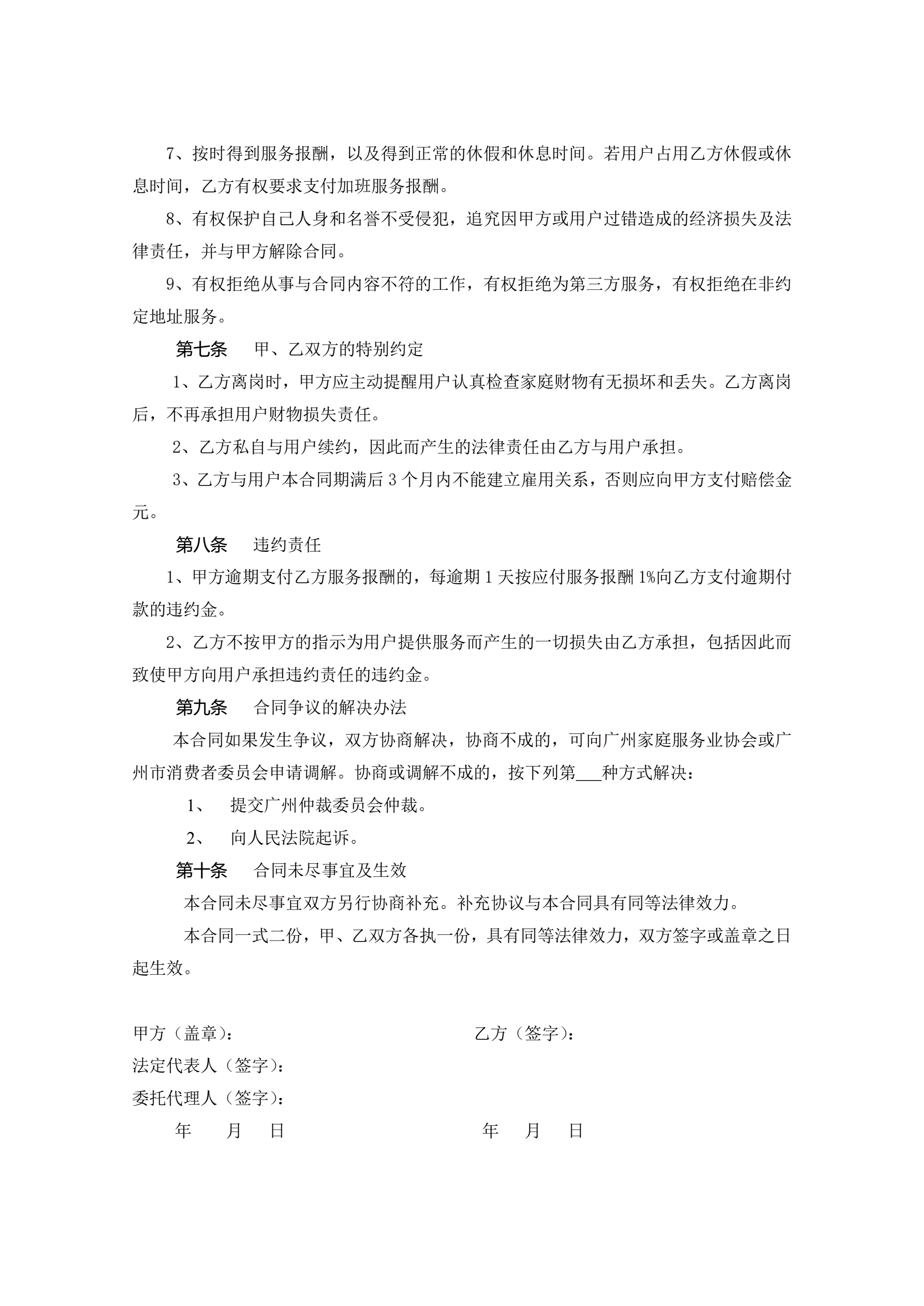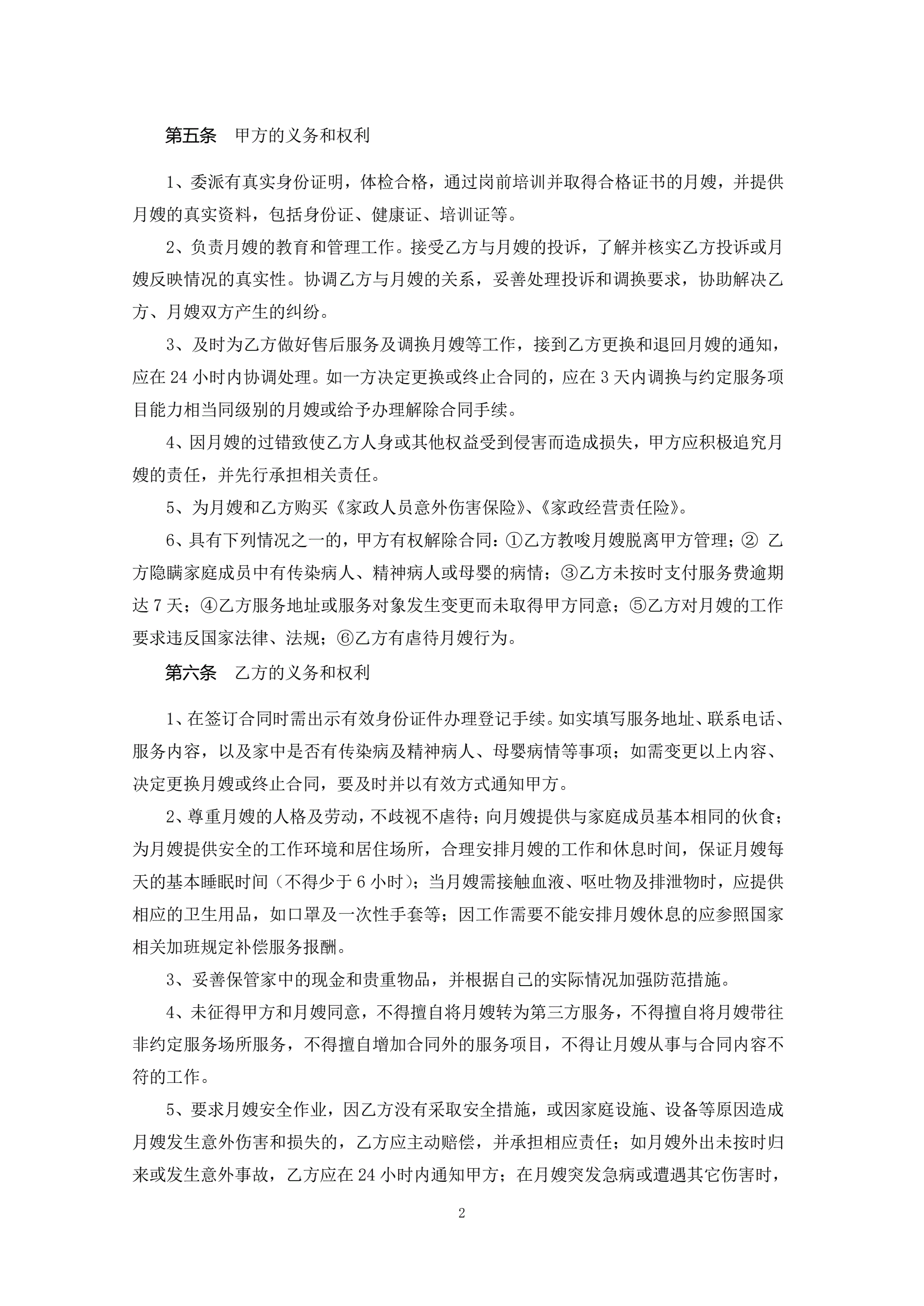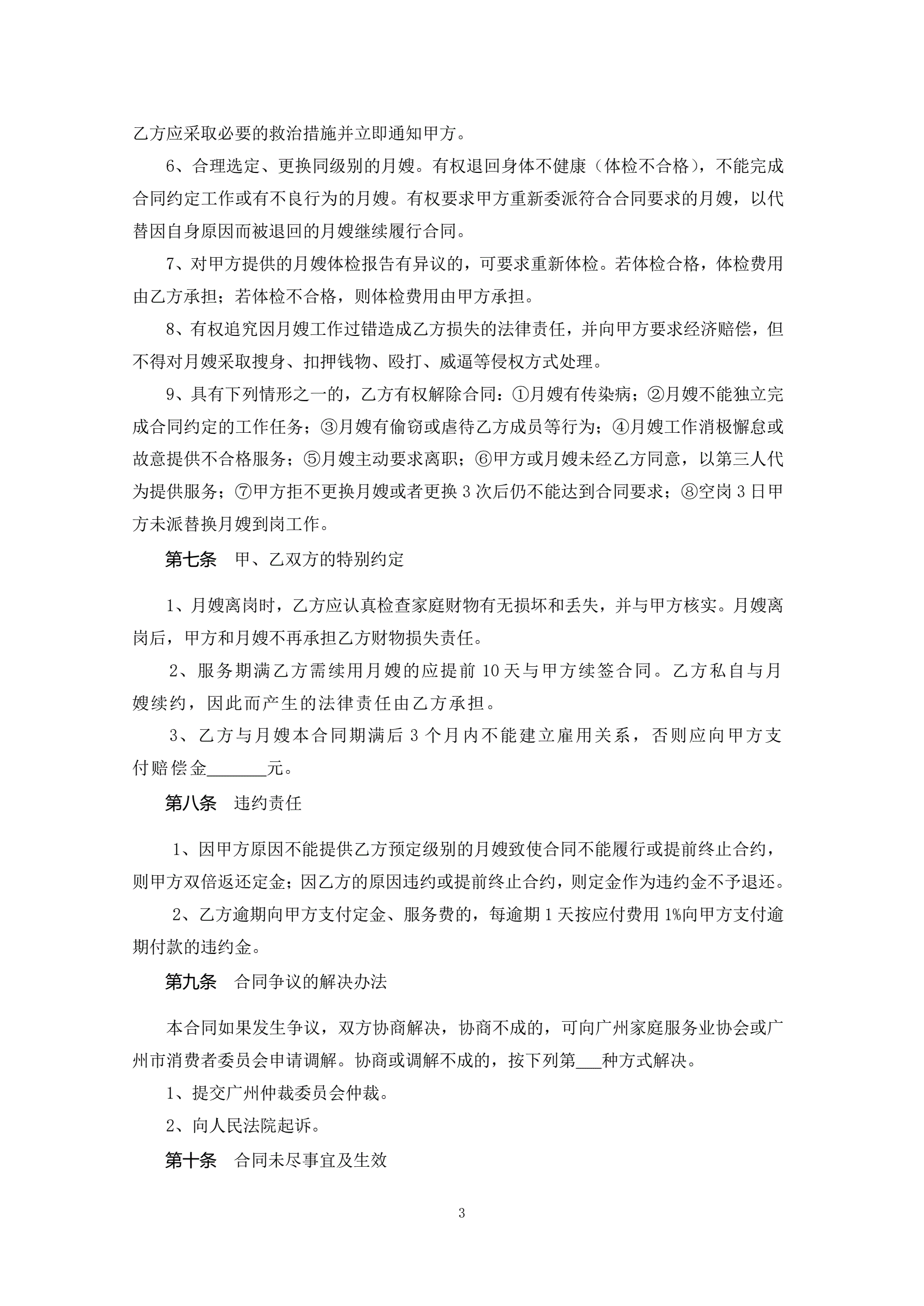 >广州市母婴护理(月嫂)服务合同SF-2013-2702A、2702B