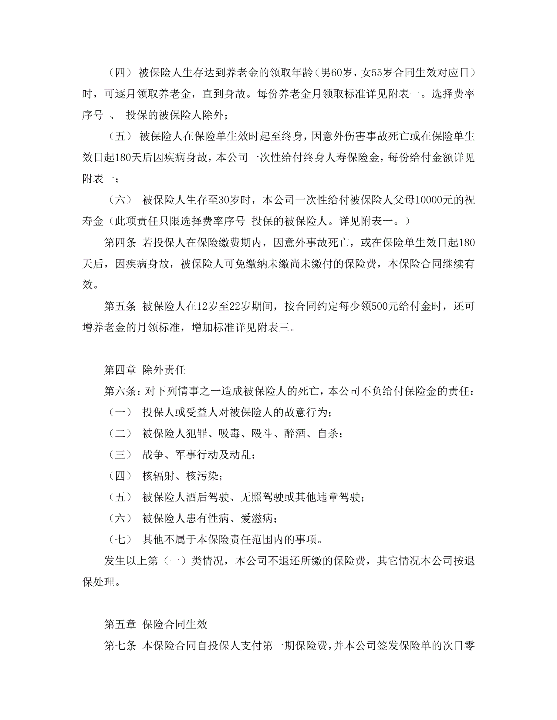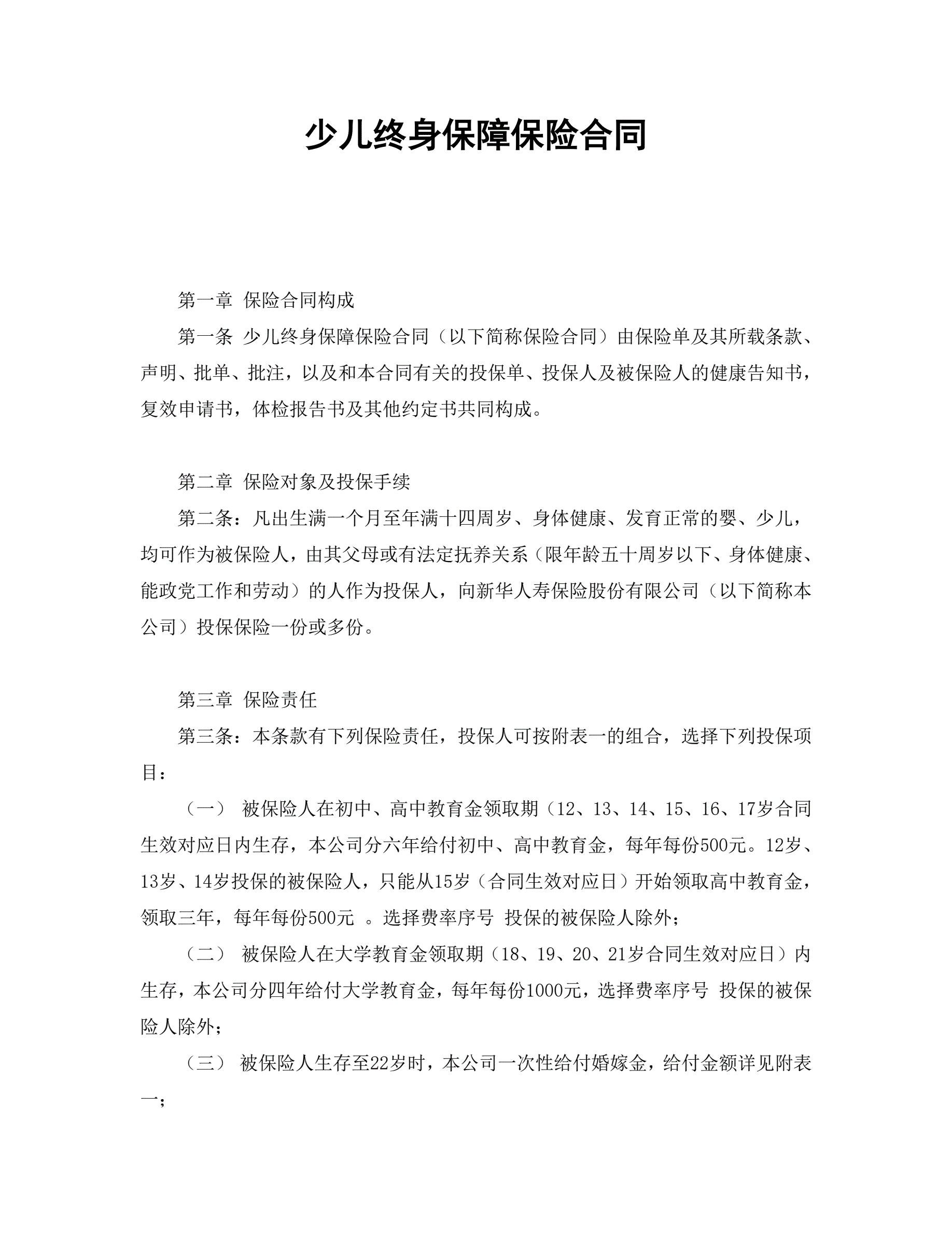 >少儿终身保障保险合同(新华人寿)