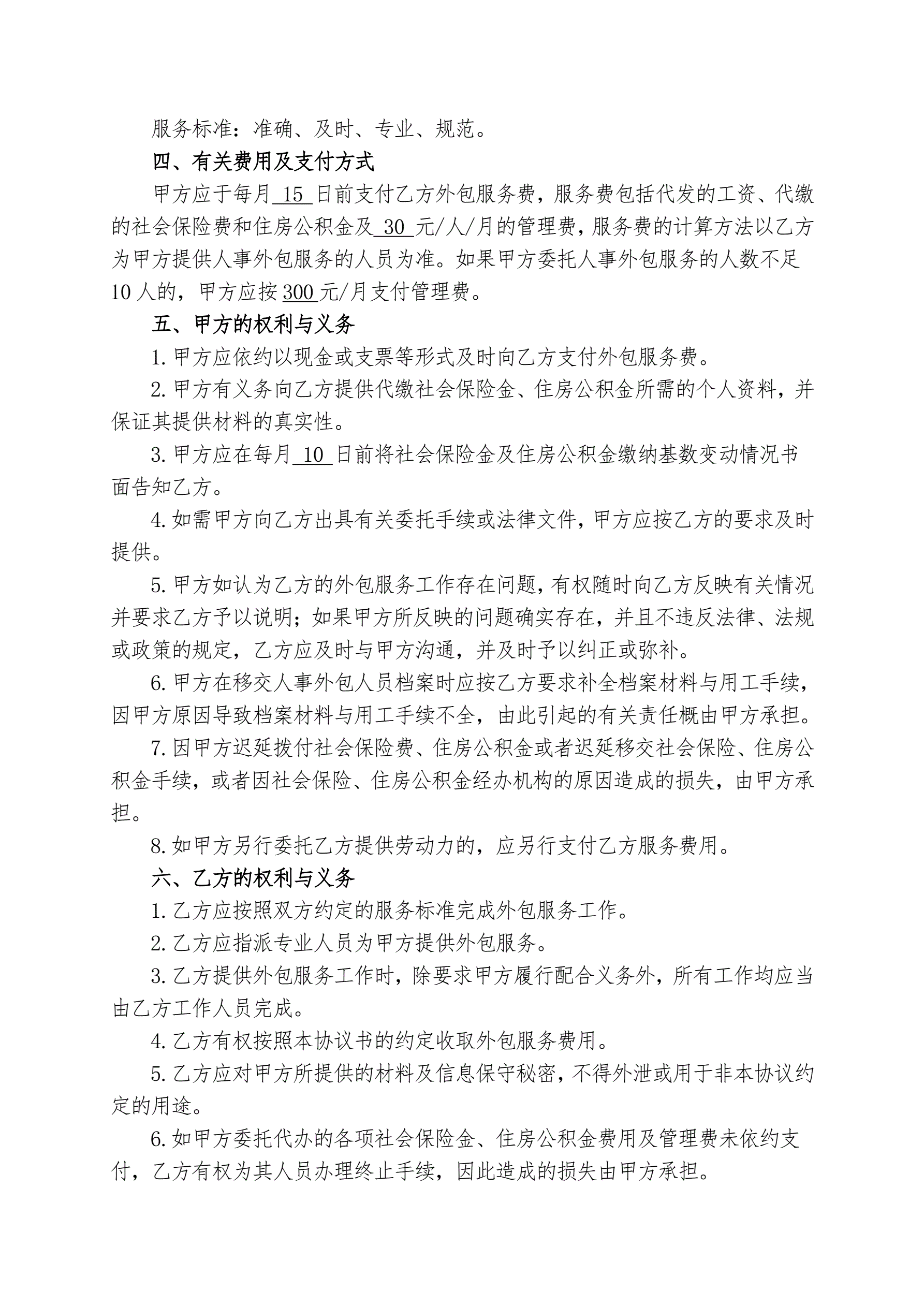 人力资源业务外包协议书