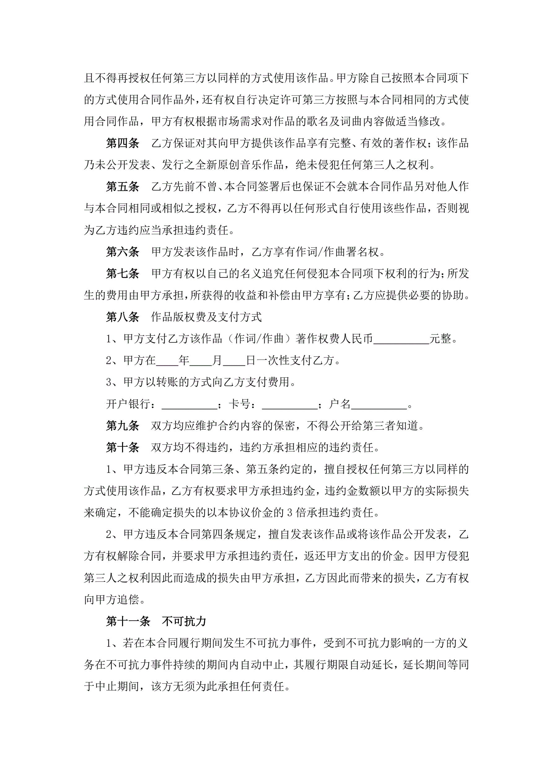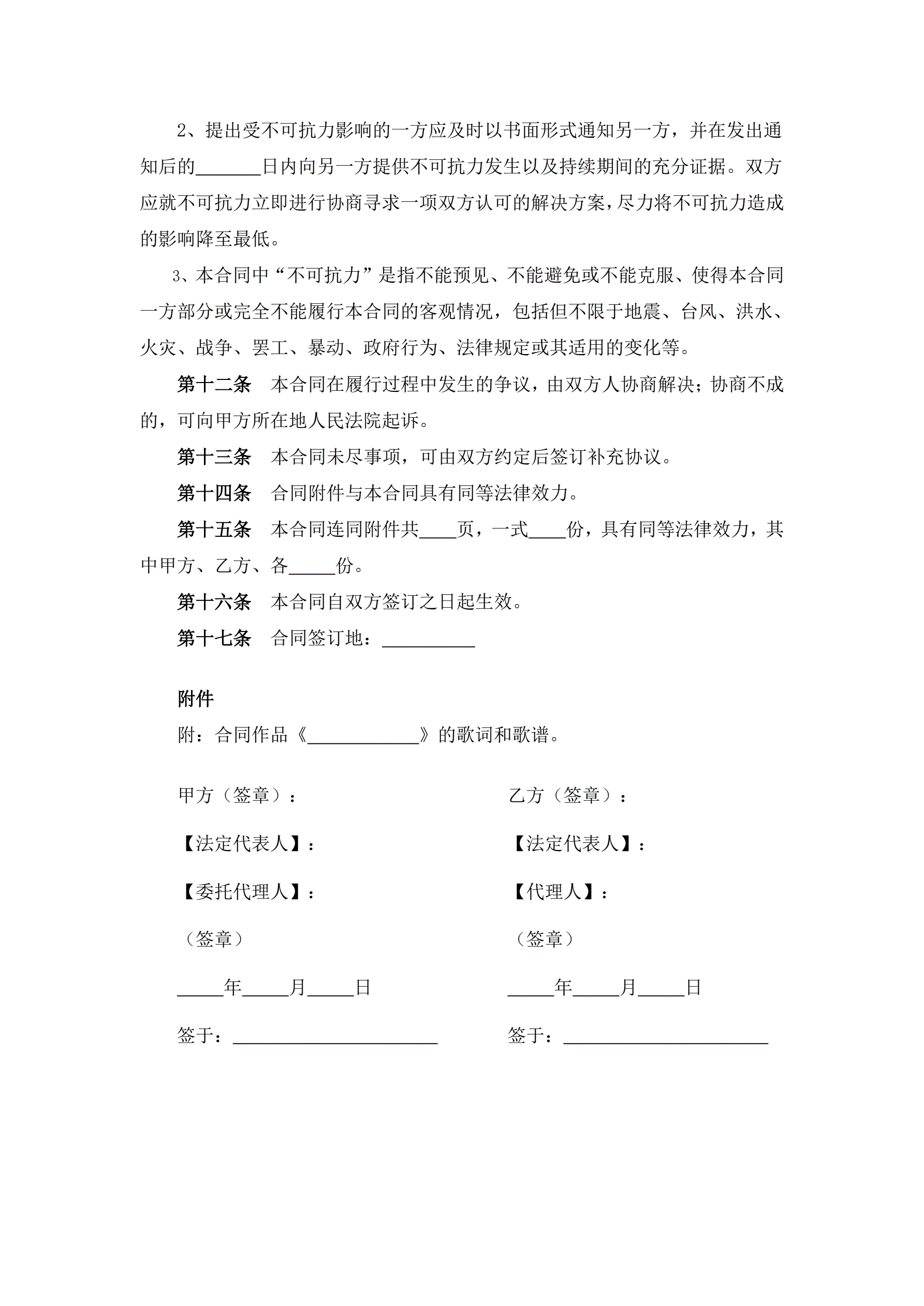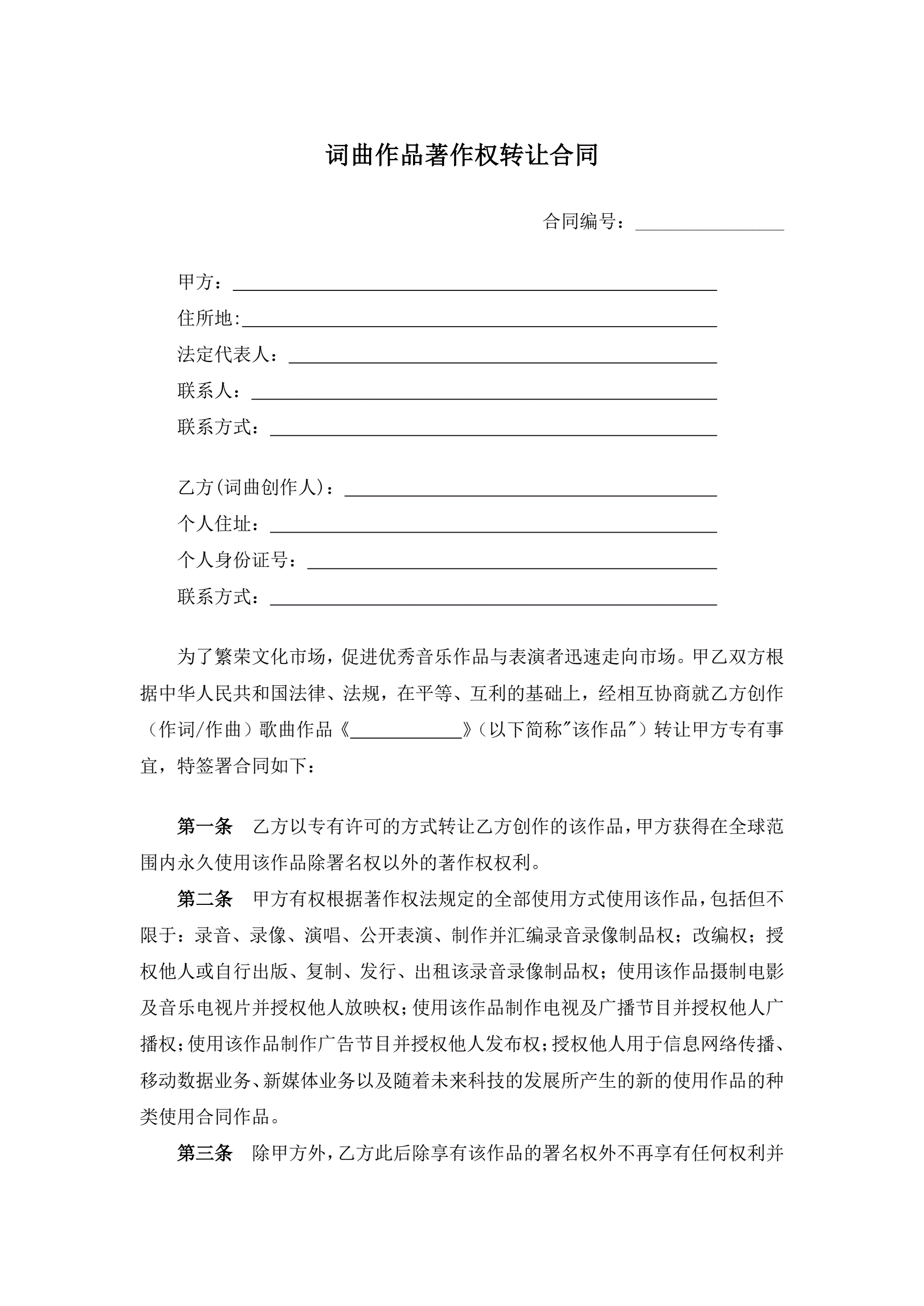 词曲作品著作权转让合同