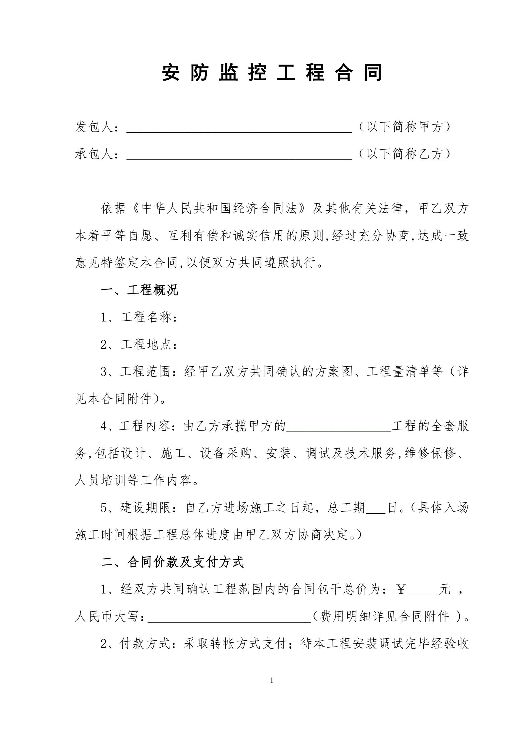 安防监控工程合同