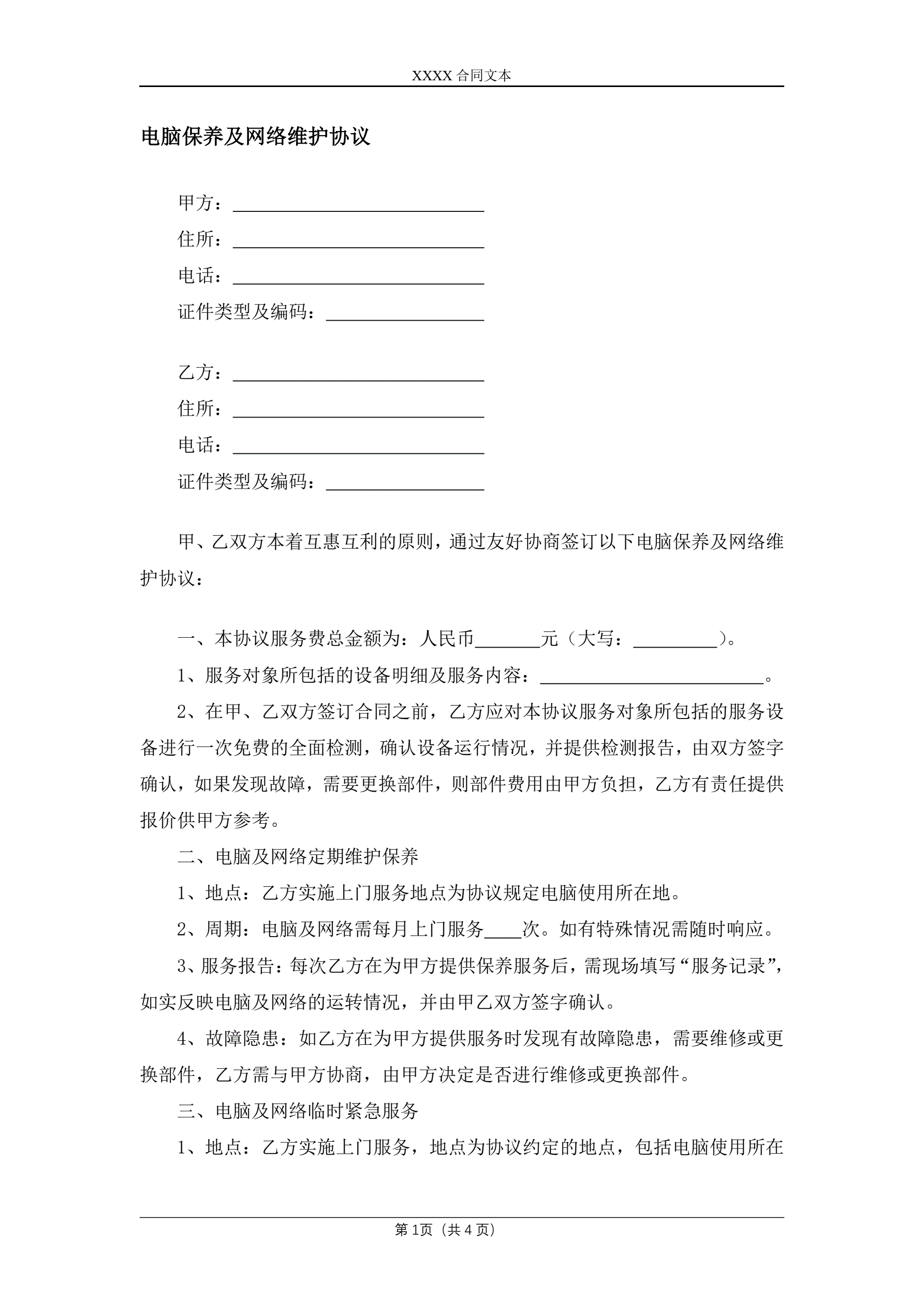 >电脑保养及网络维护协议