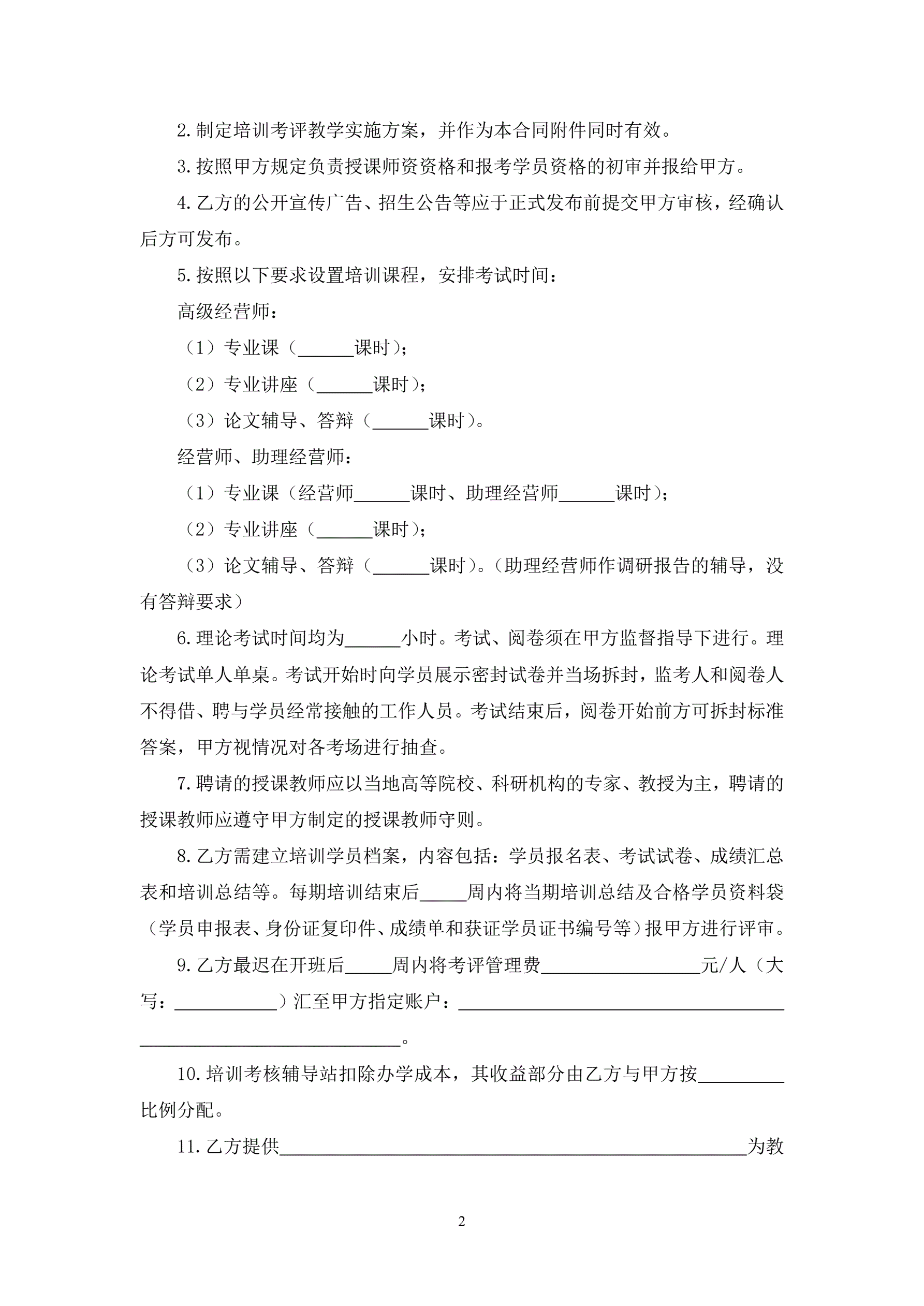 全国经营系列任职资格培训考核委托协议