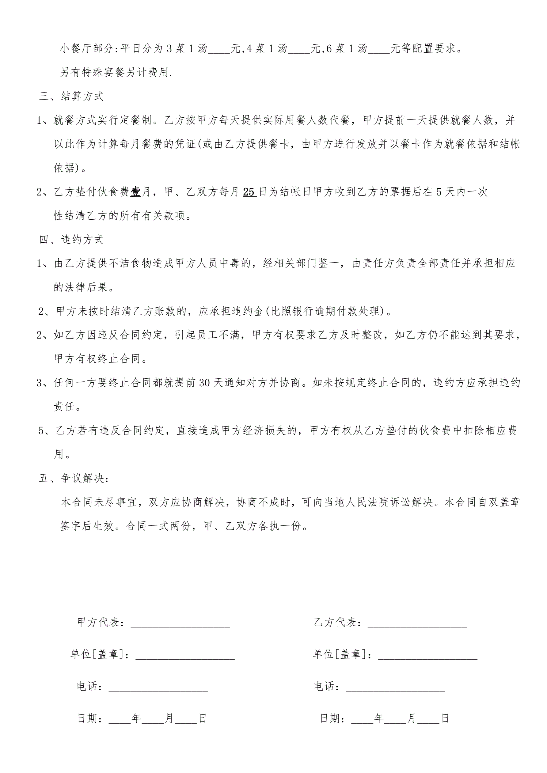 工厂食堂承包合同