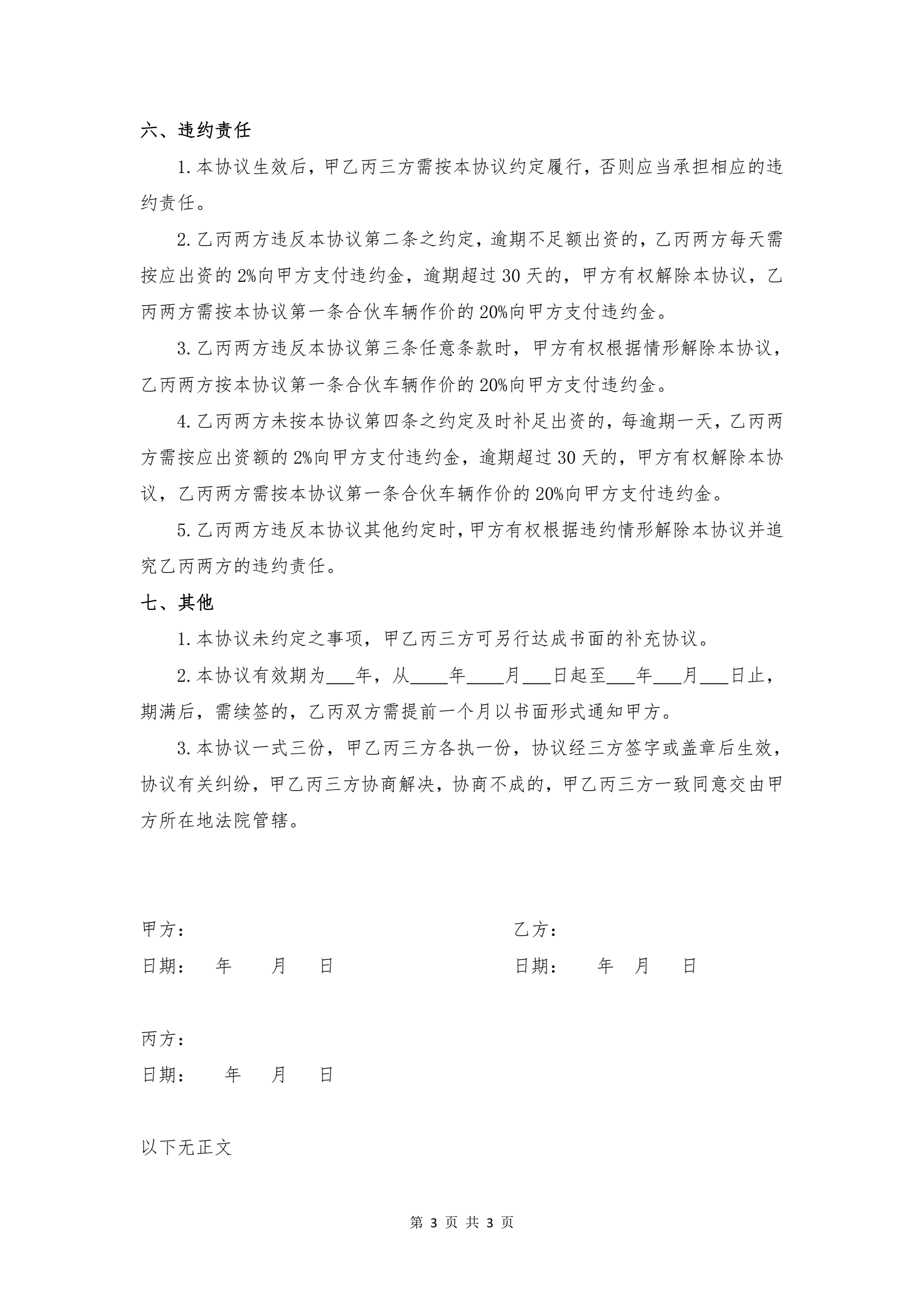 车辆合伙经营协议