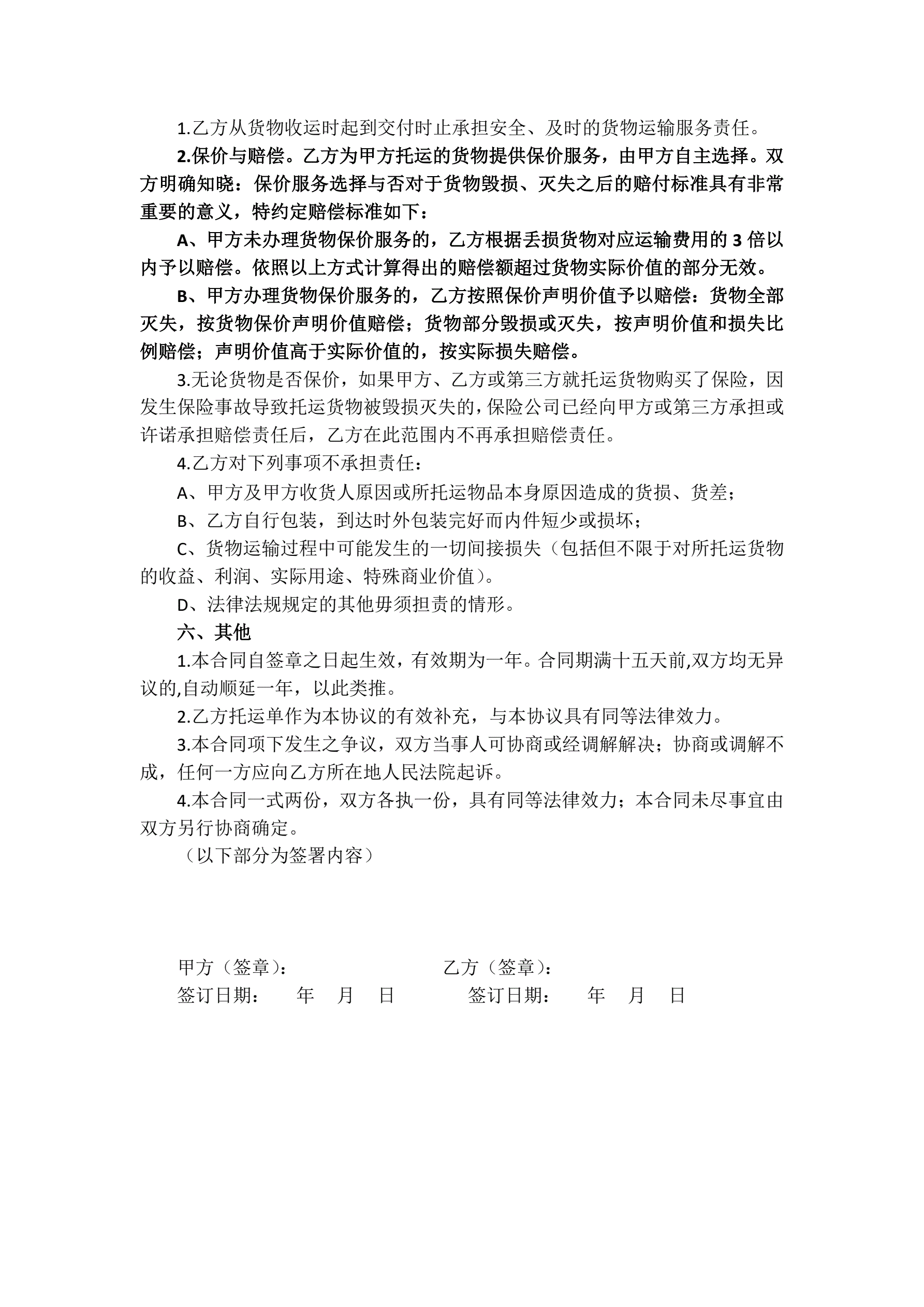>货物运输服务合同(简易版)