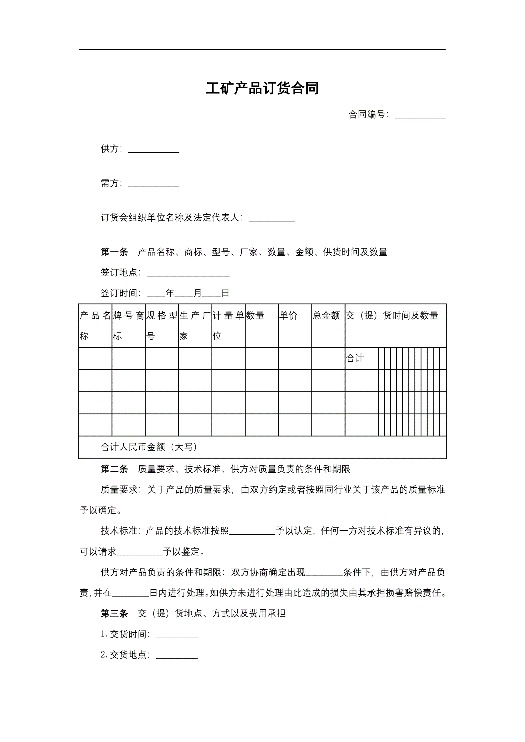 工矿产品订货合同
