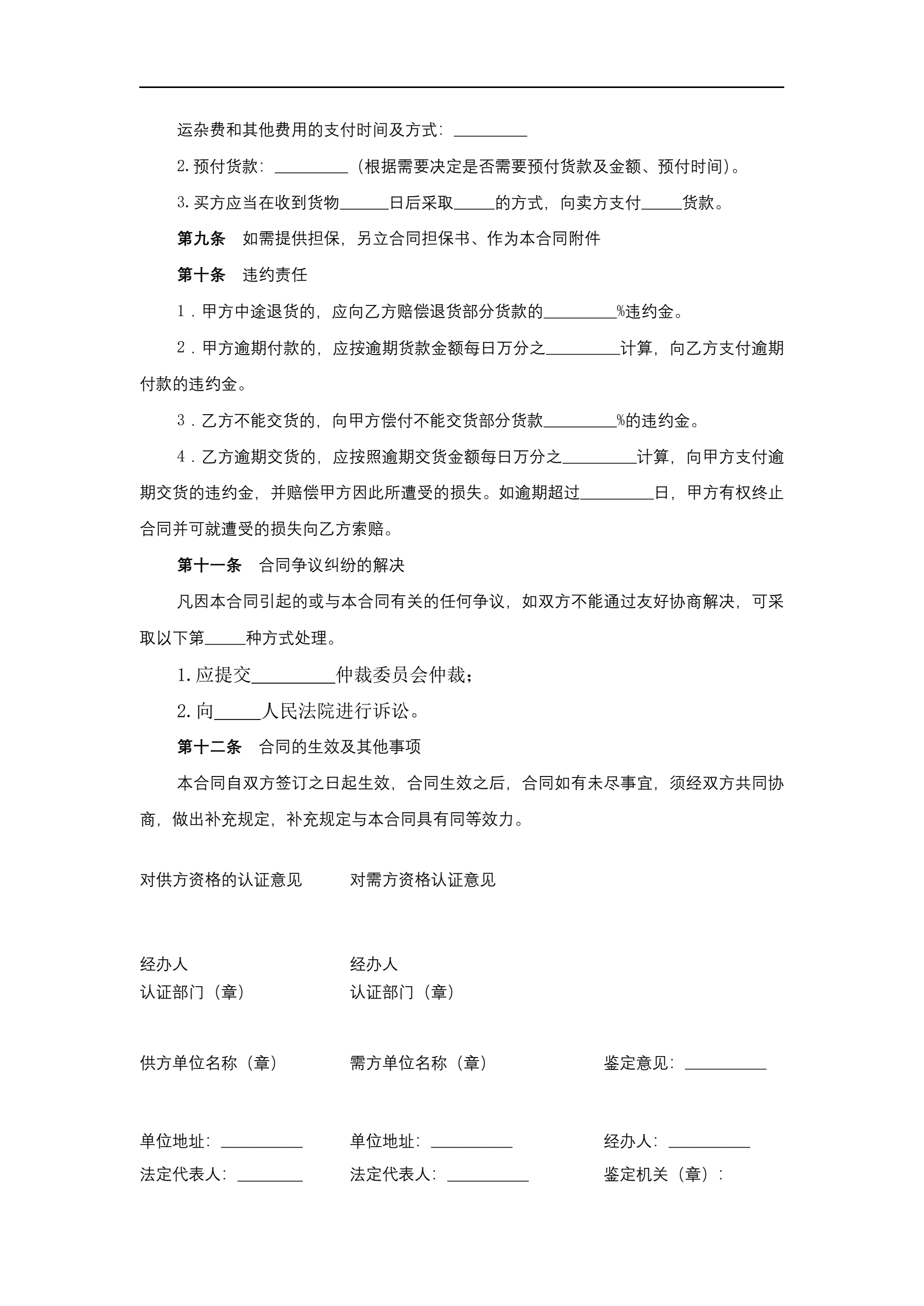 >工矿产品订货合同