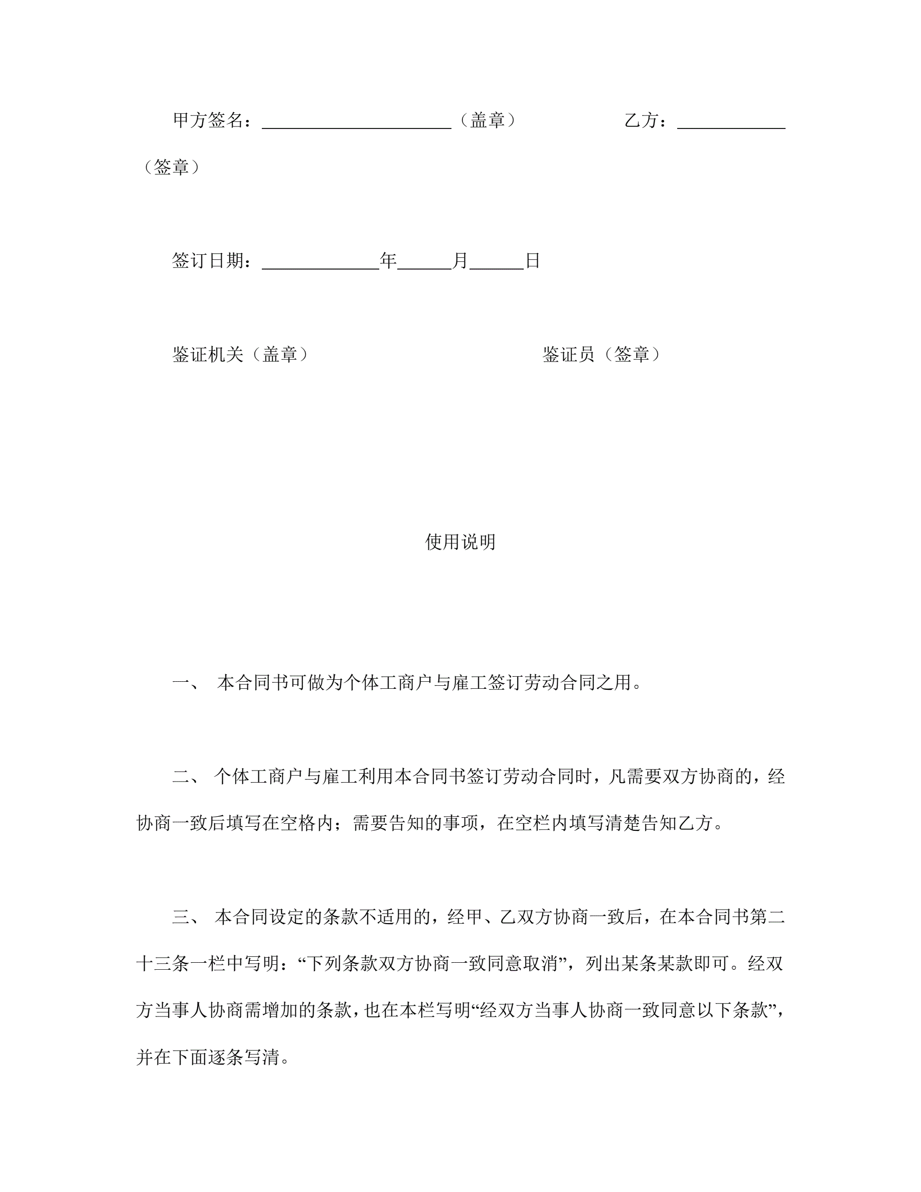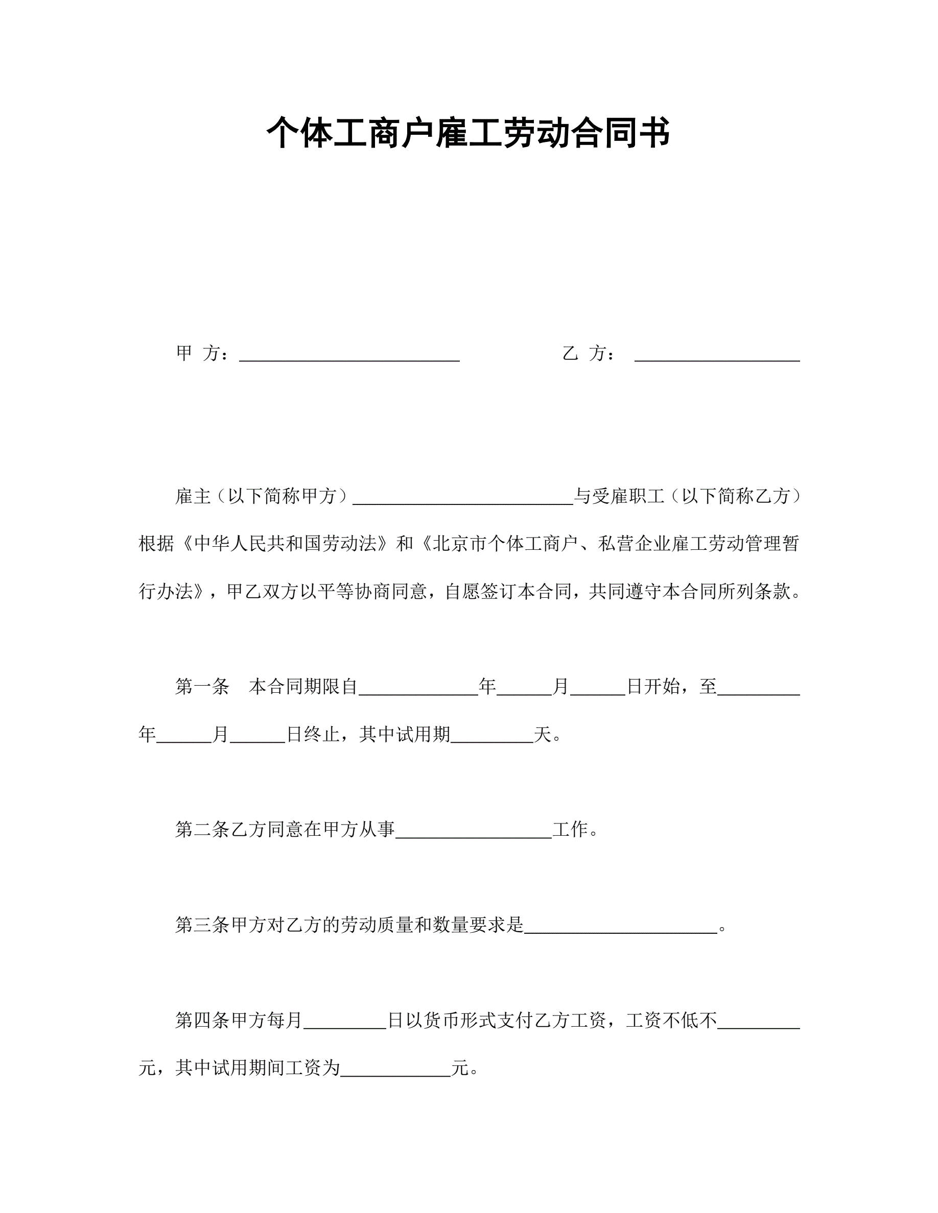 >个体工商户雇工劳动合同书
