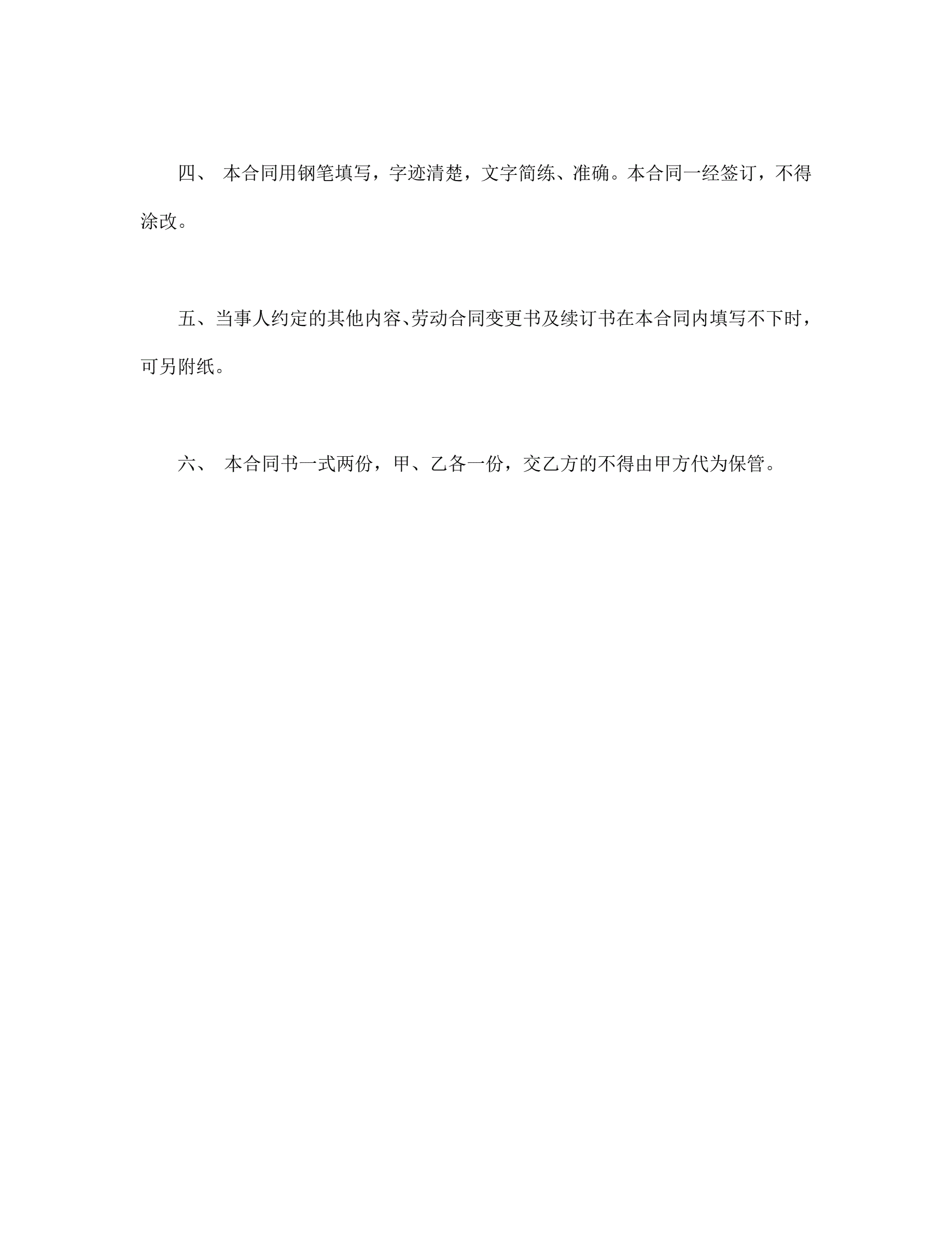 个体工商户雇工劳动合同书