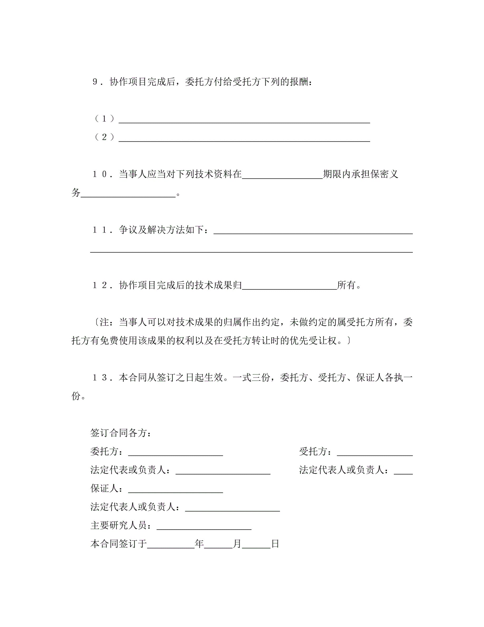 >科技协作合同