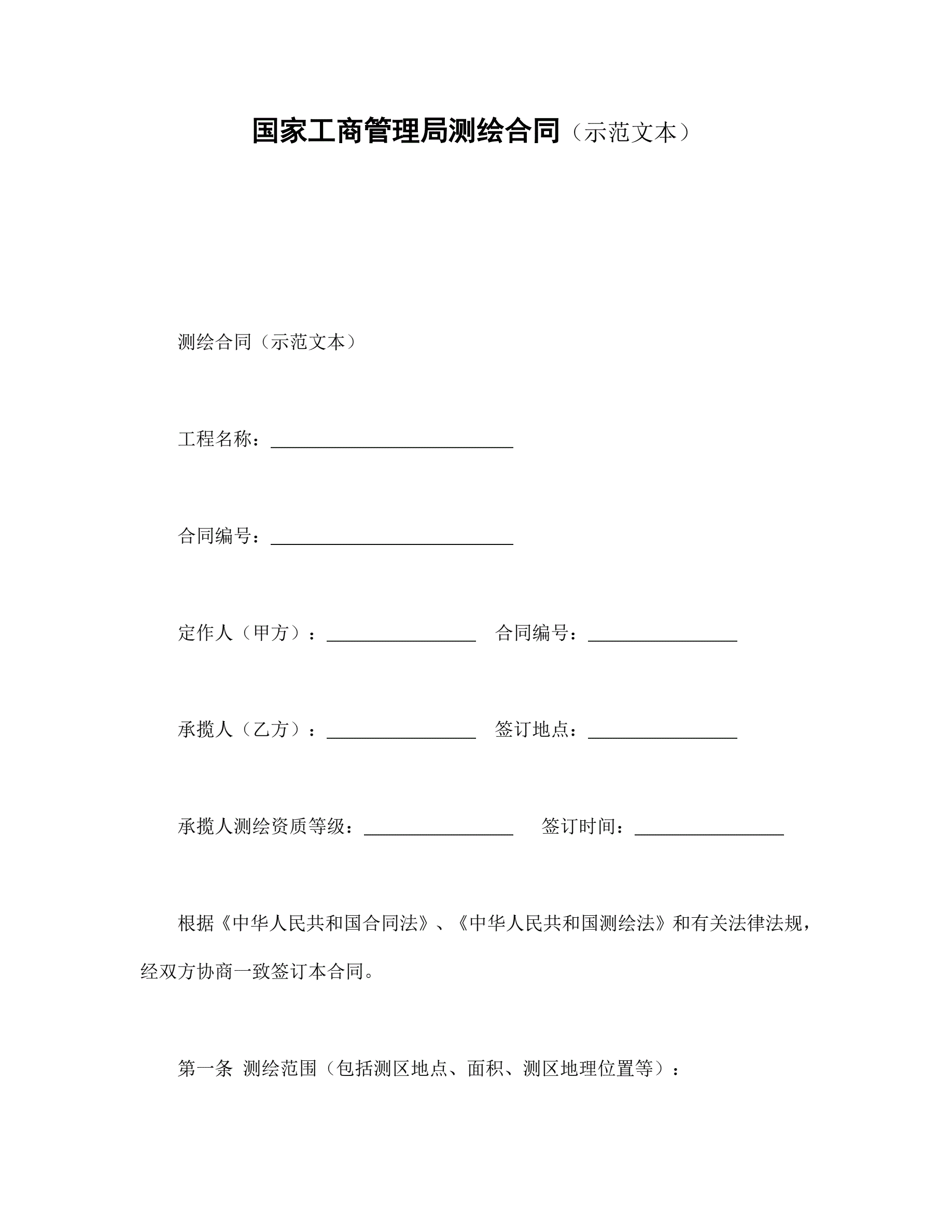 >国家工商管理局测绘合同(示范文本)