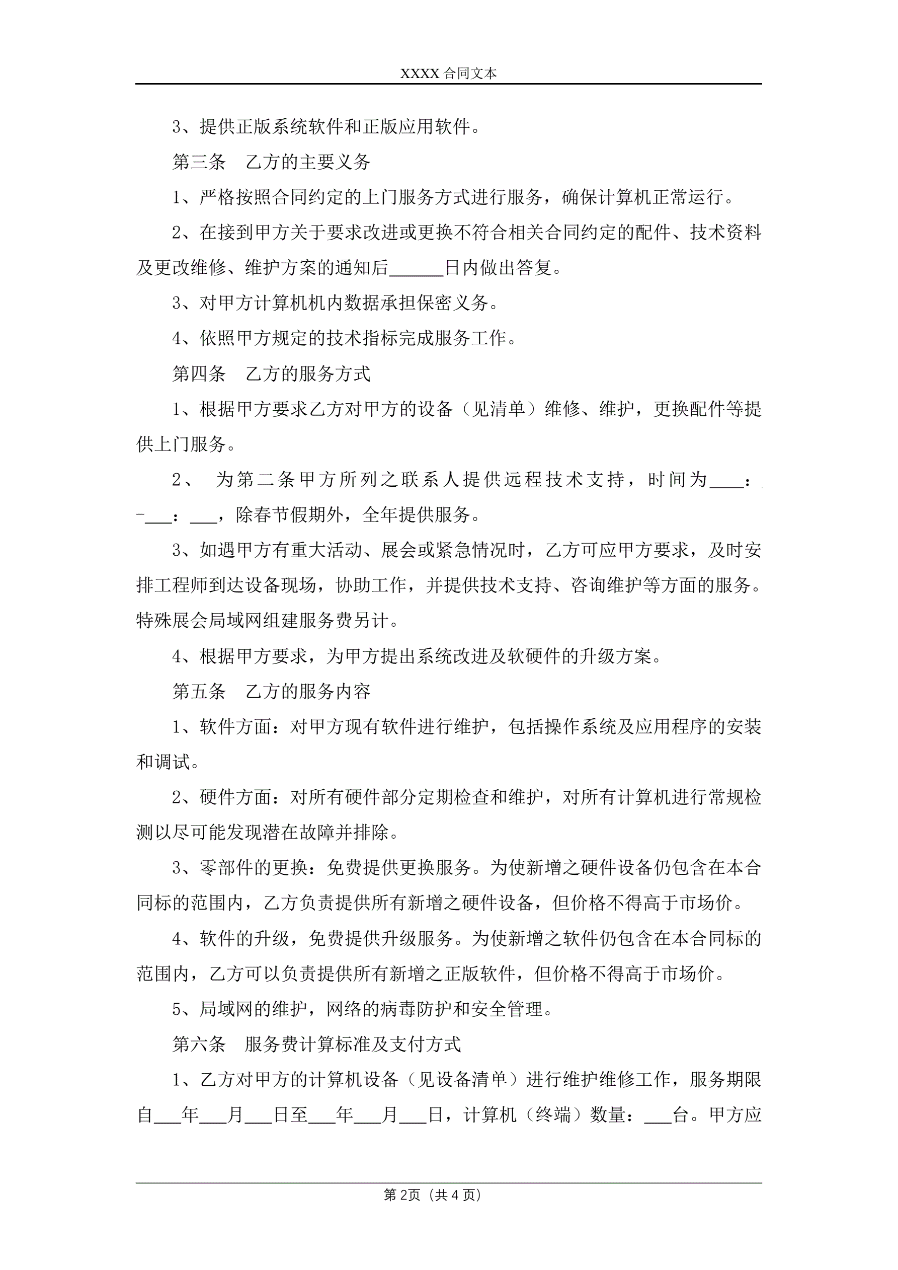 >计算机维护及计算机技术支持服务协议