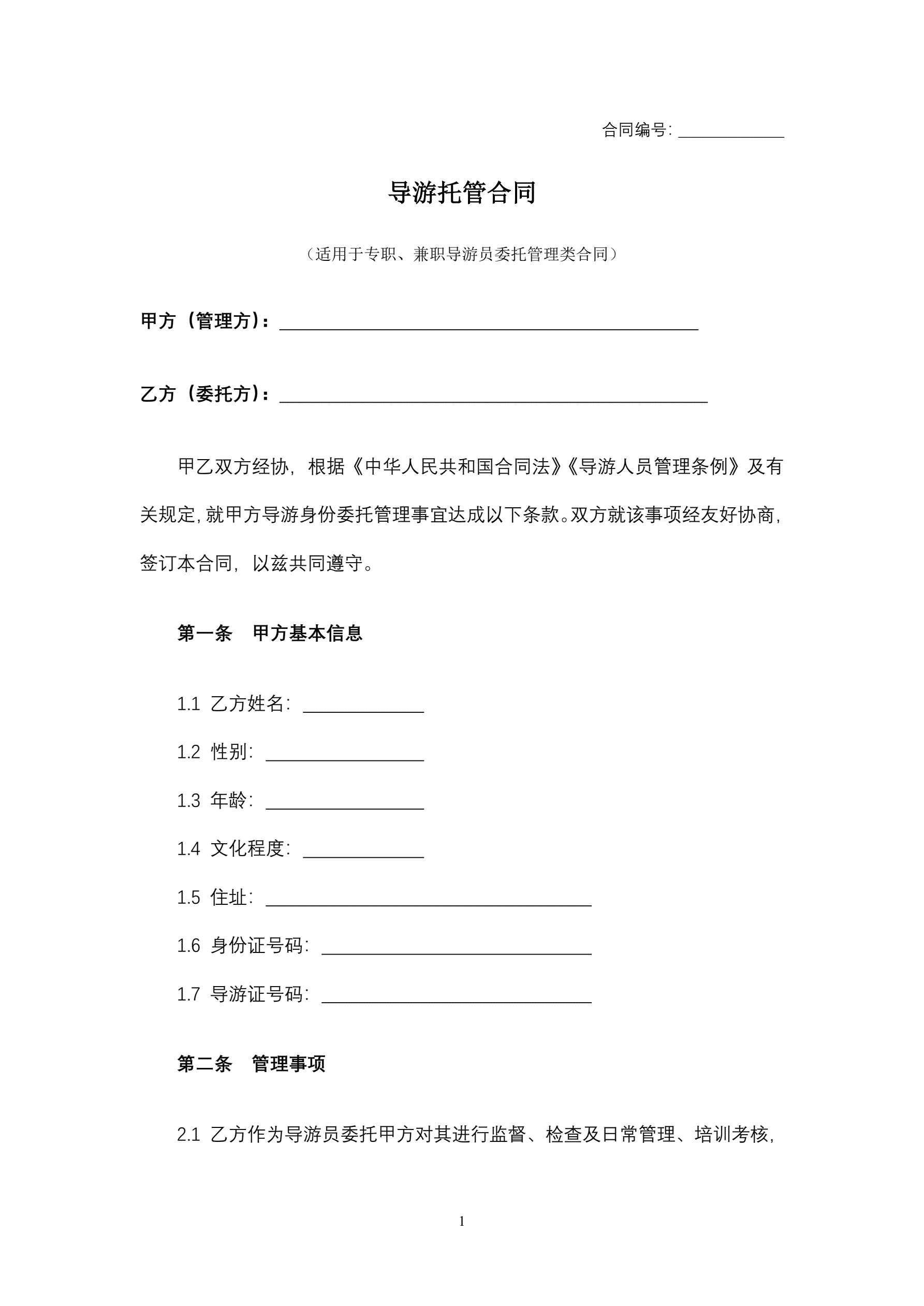 >导游托管合同
