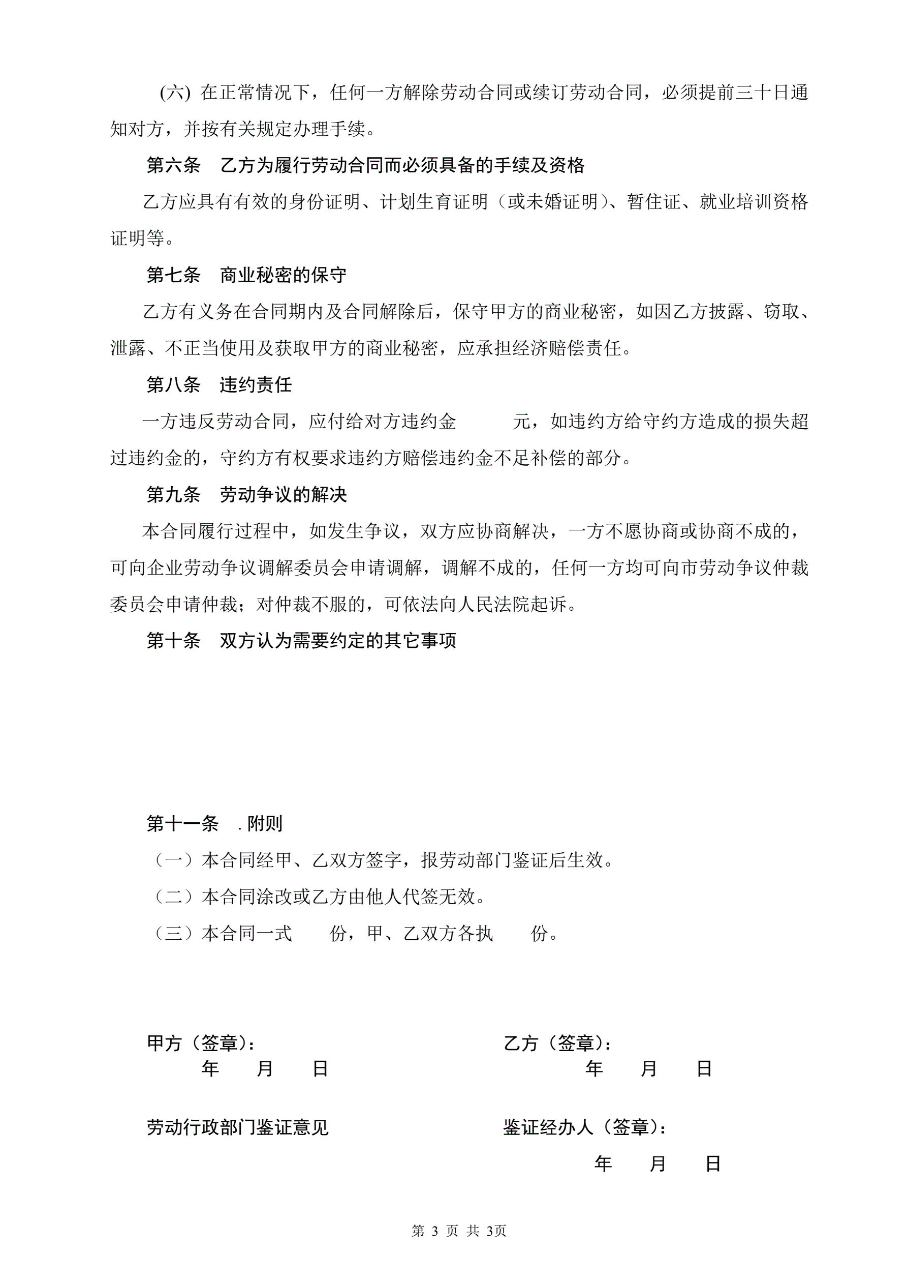 劳动合同书(3页)