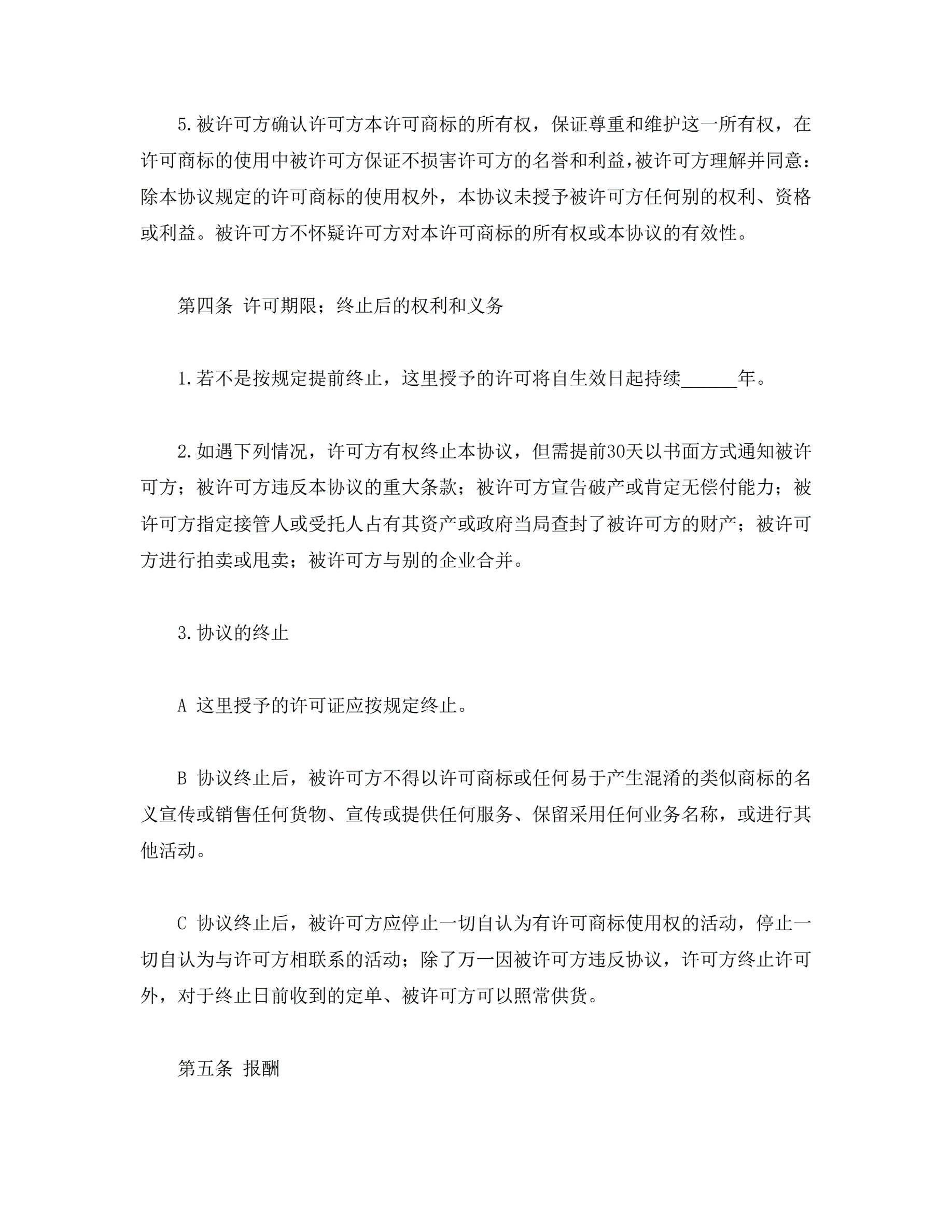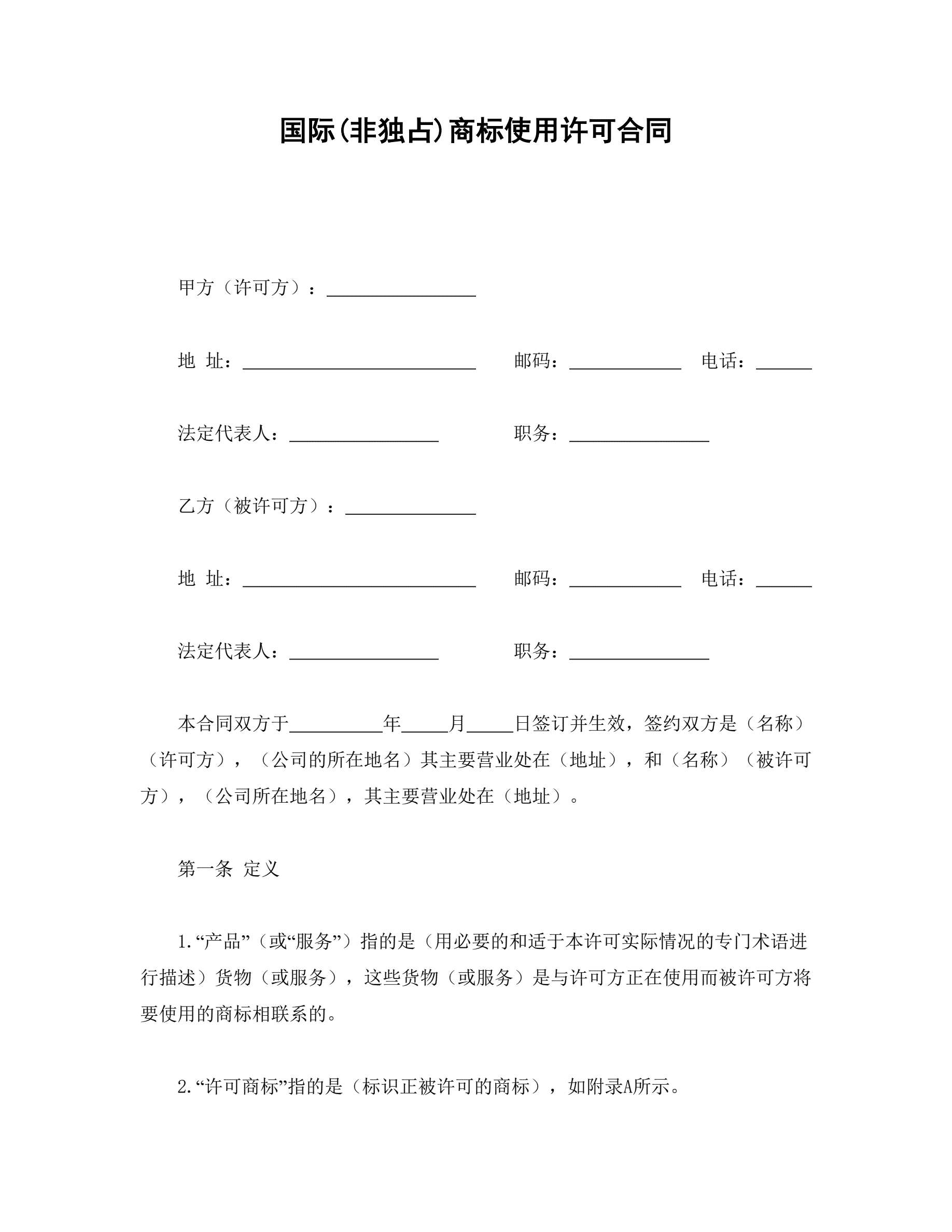 >国际(非独占)商标使用许可合同
