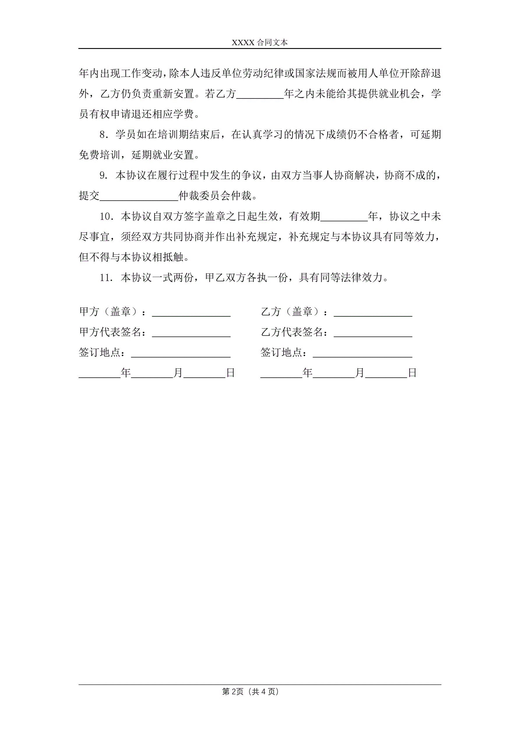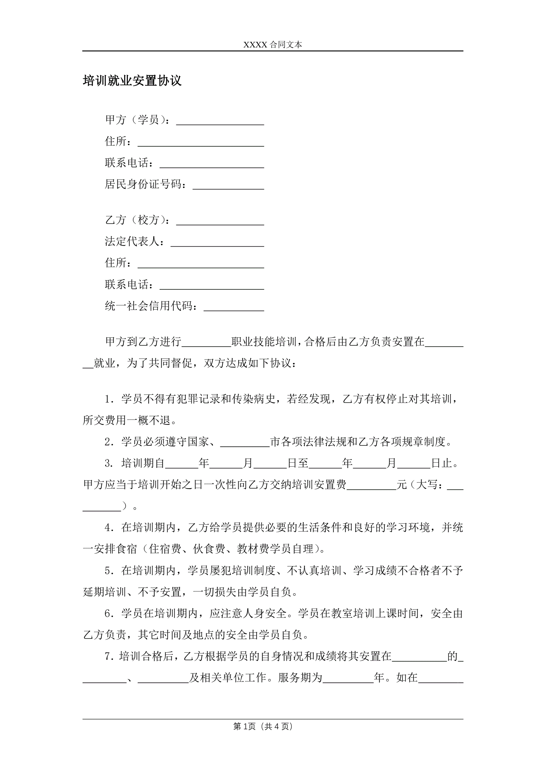 培训就业安置协议