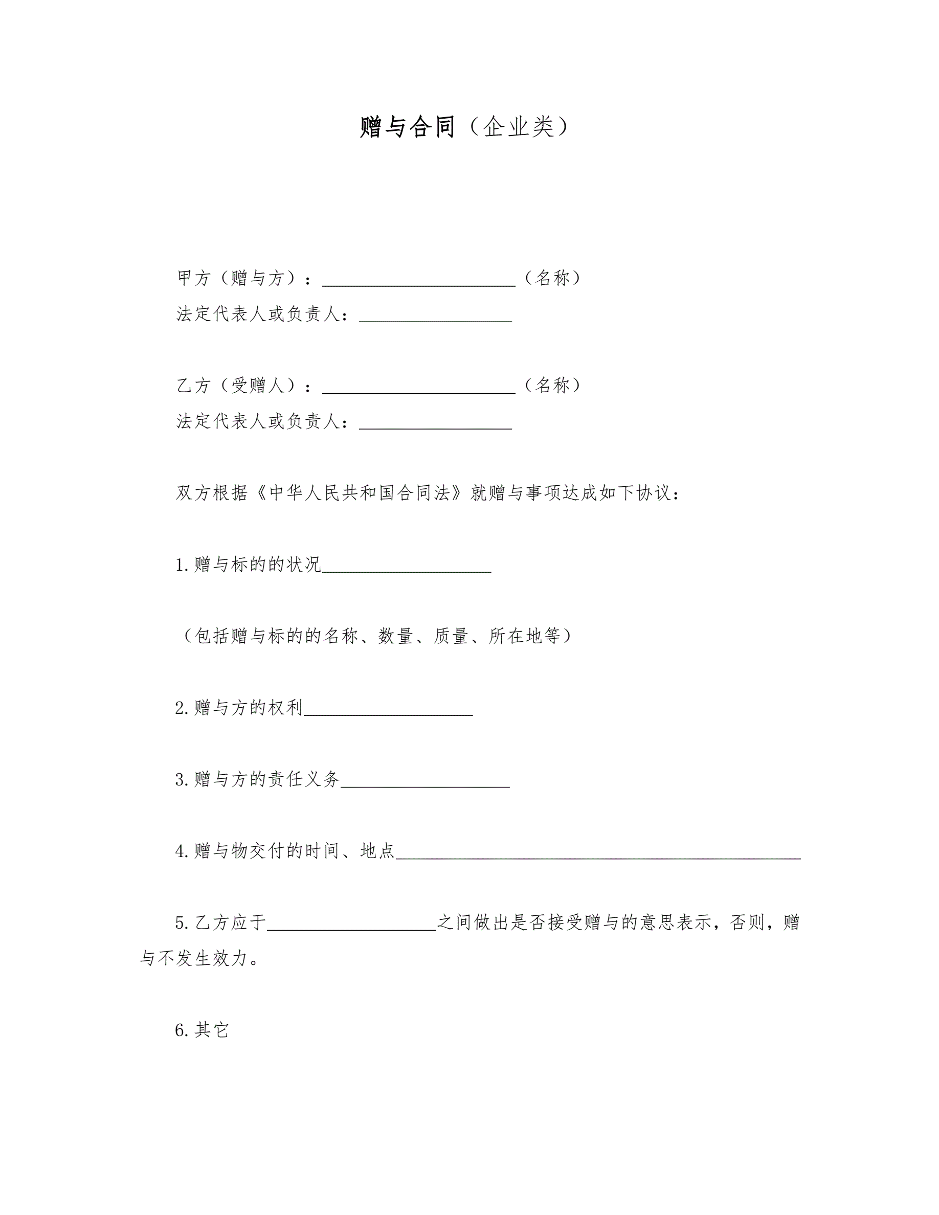 >赠与合同(企业类)