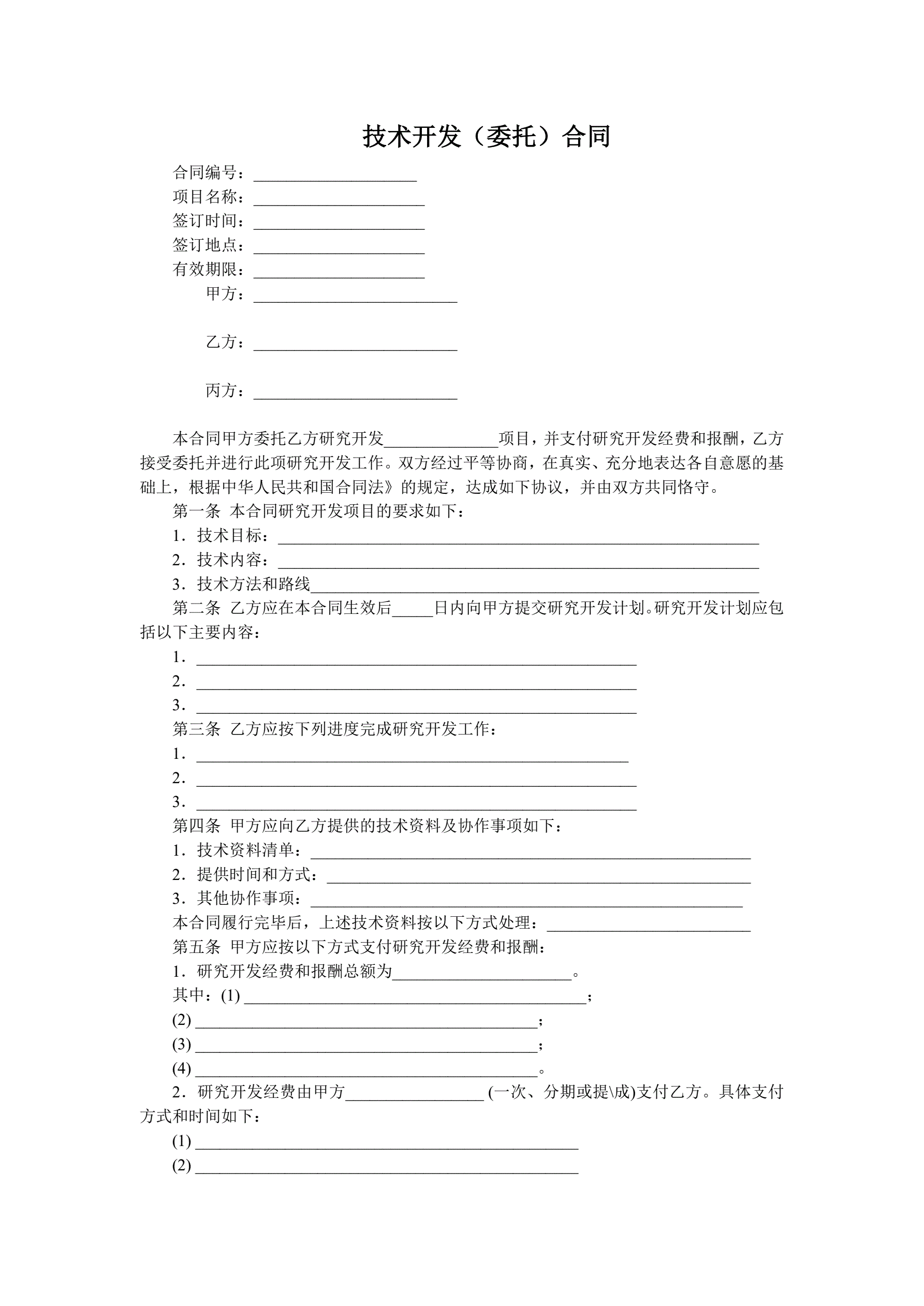 合同名称:技术开发(委托)合同