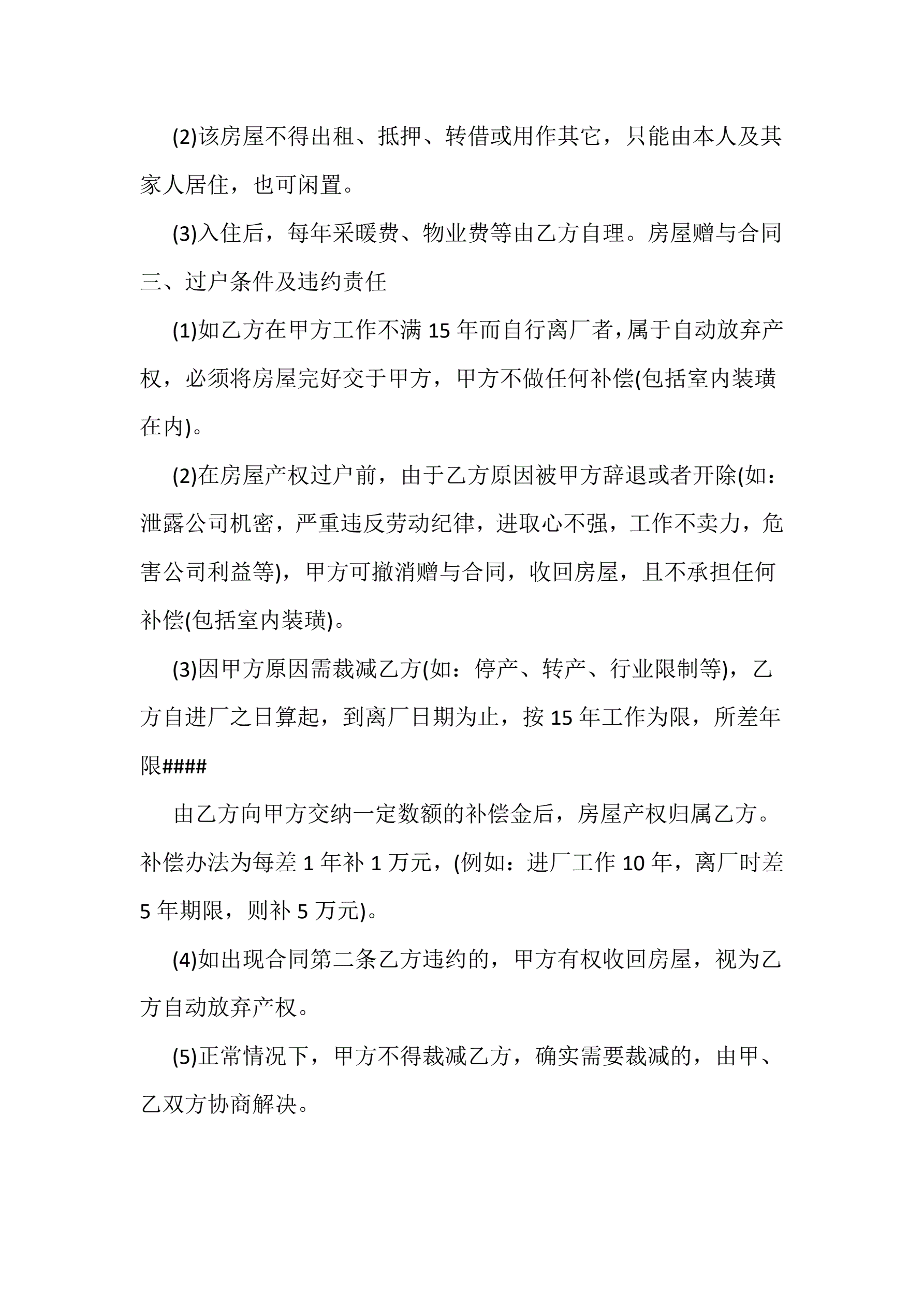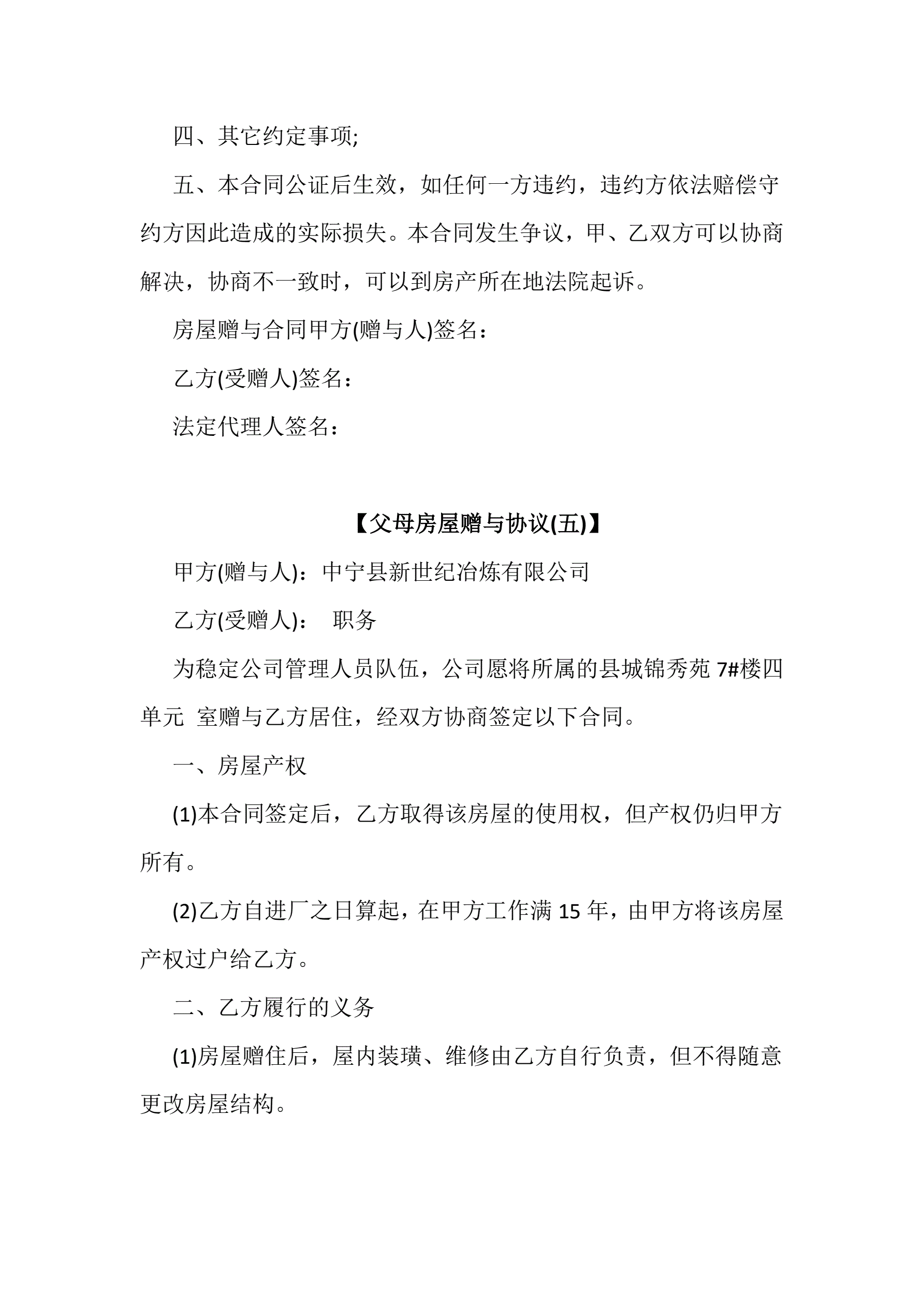 >父母房屋赠与协议书5份