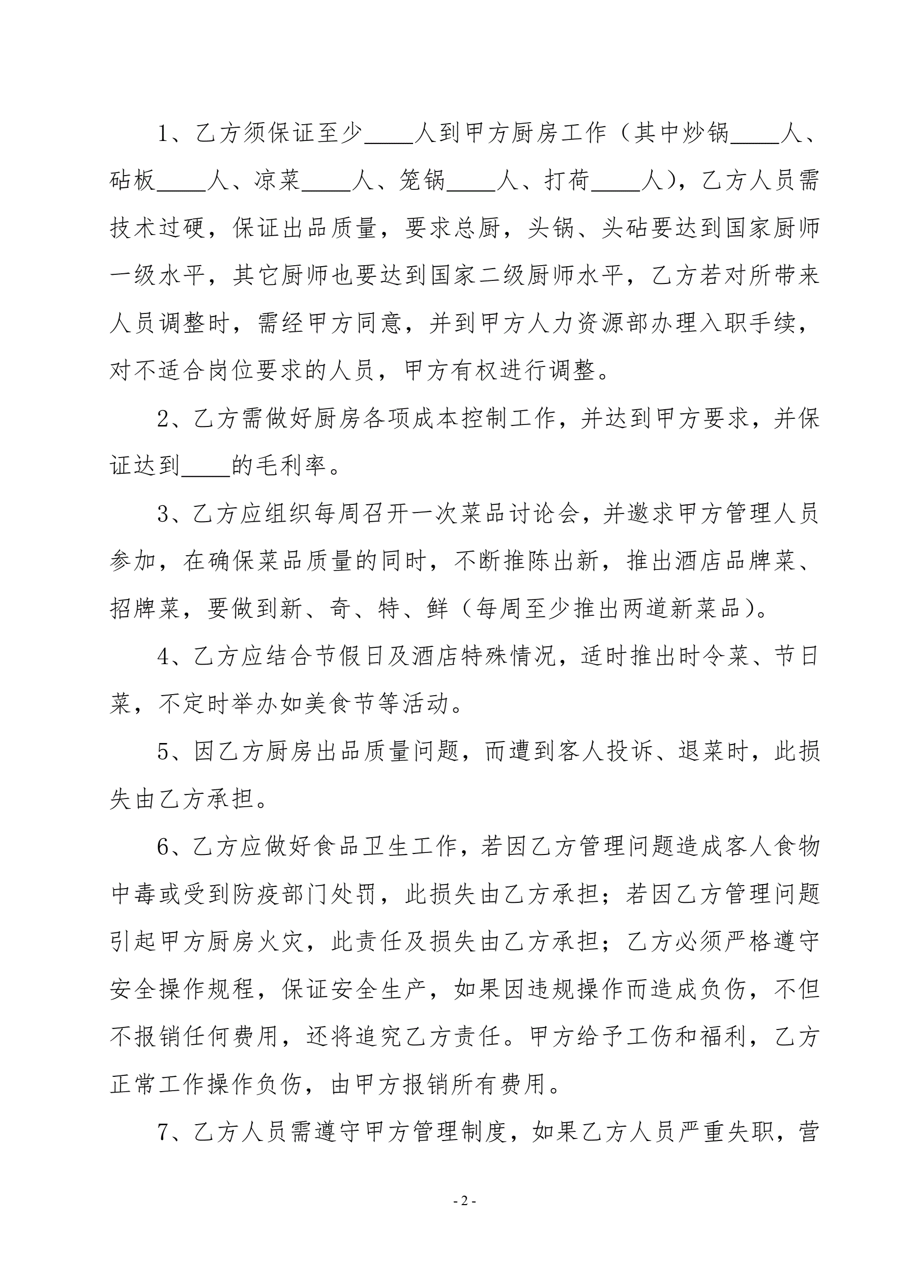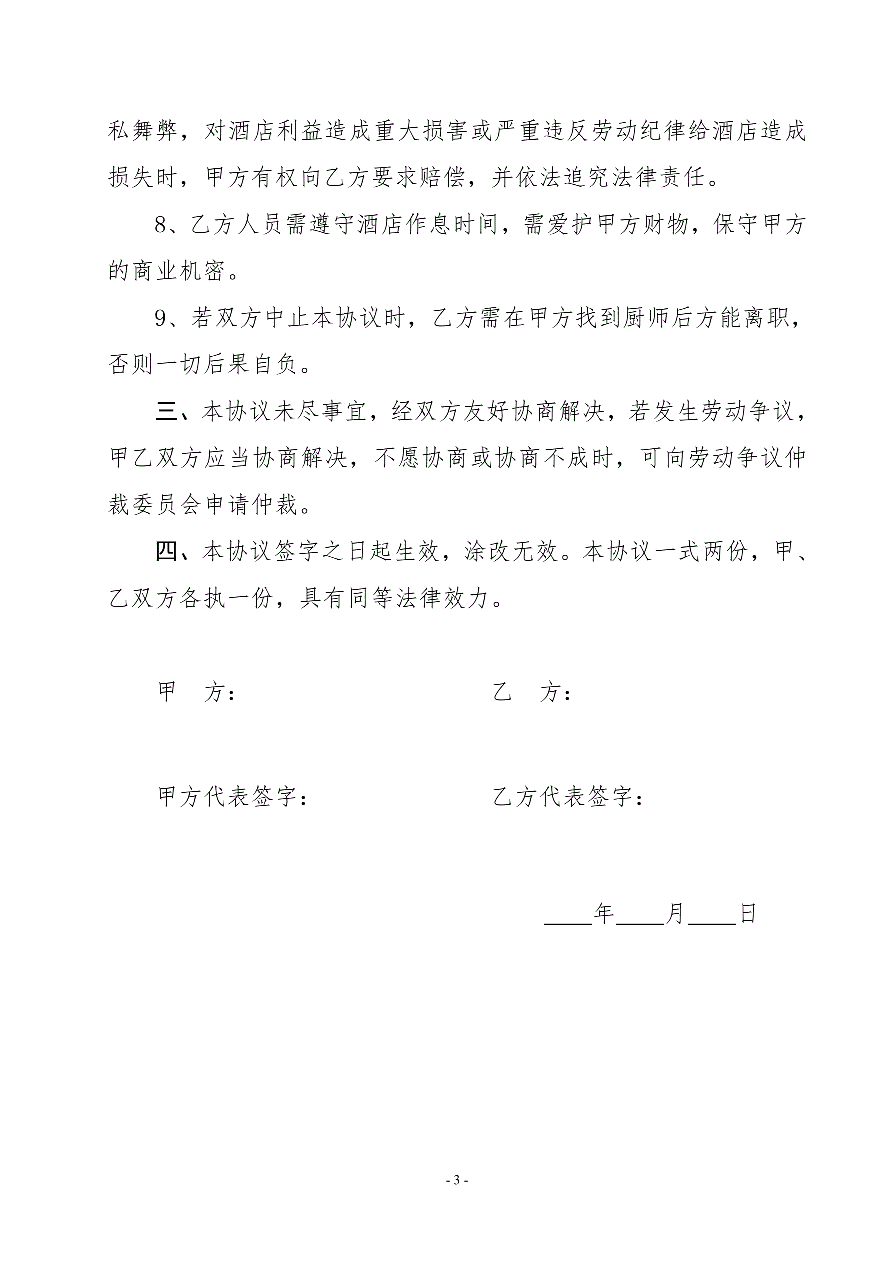 酒店厨师聘用合同