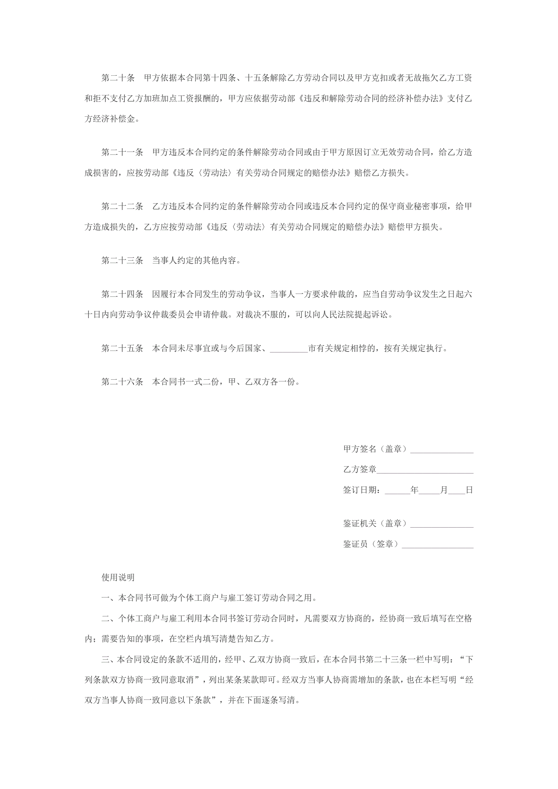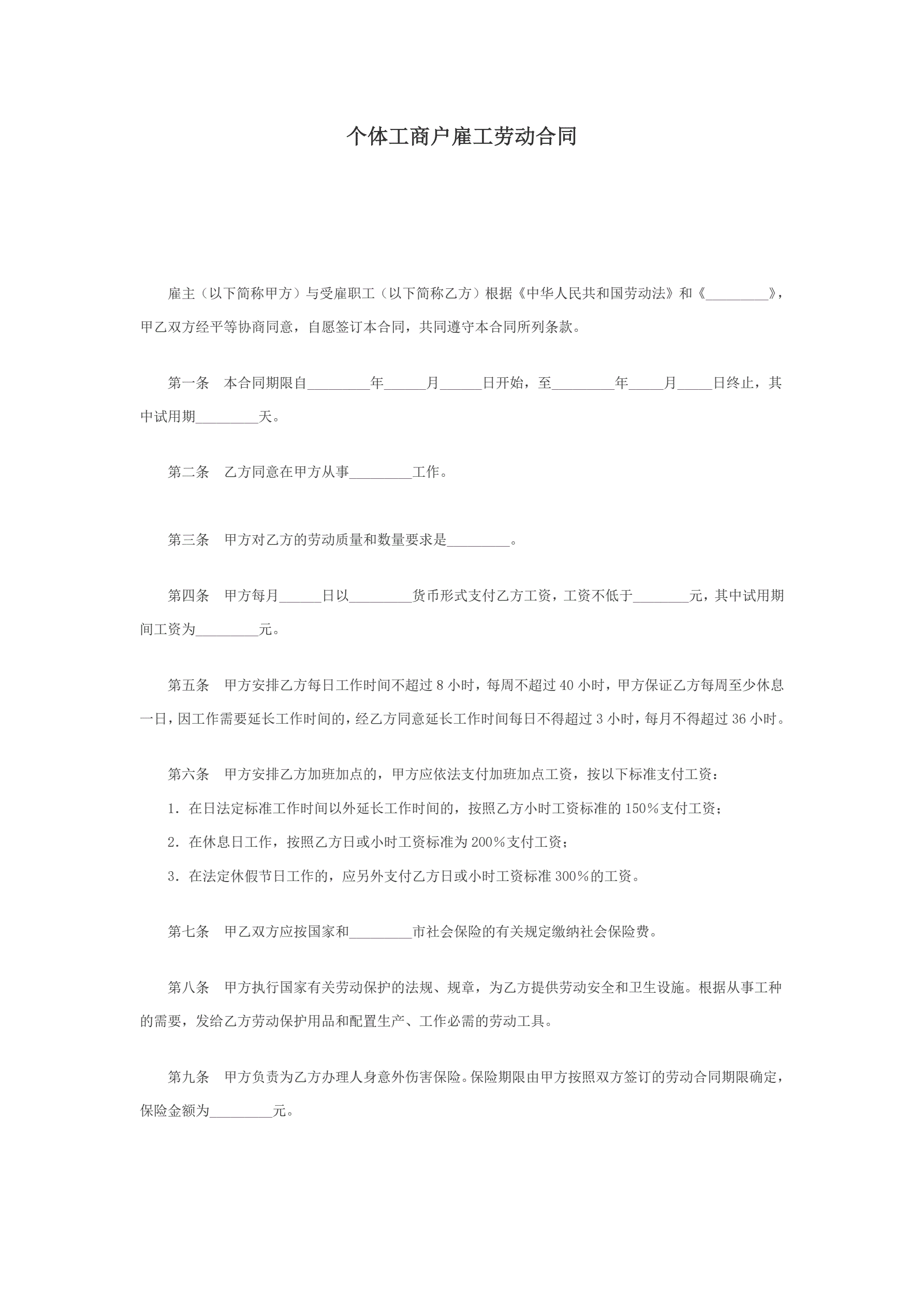 >个体工商户雇工劳动合同