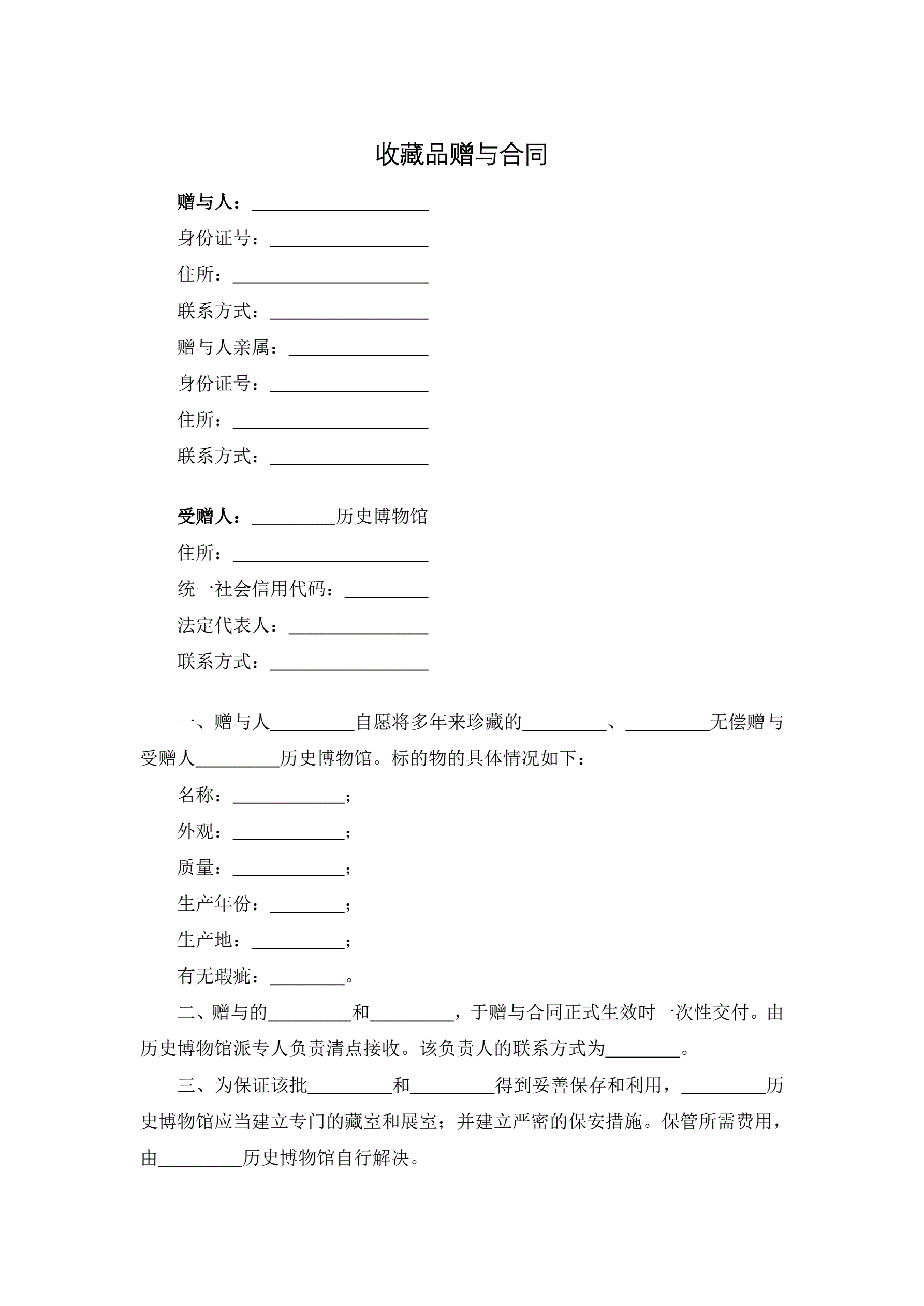 收藏品赠与合同