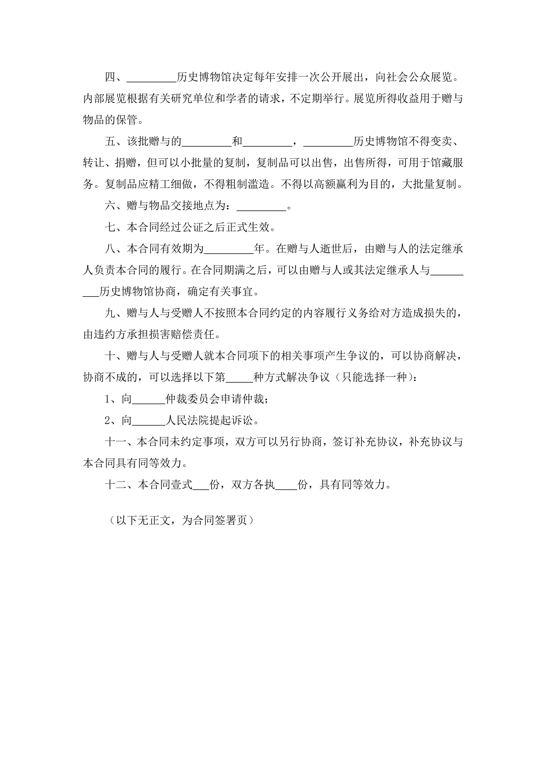 >收藏品赠与合同