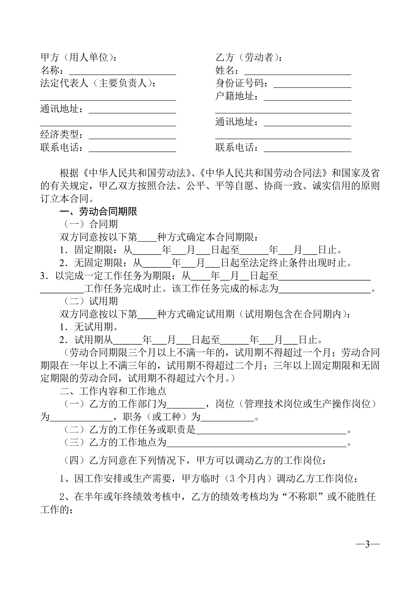 >广东省劳动合同样本