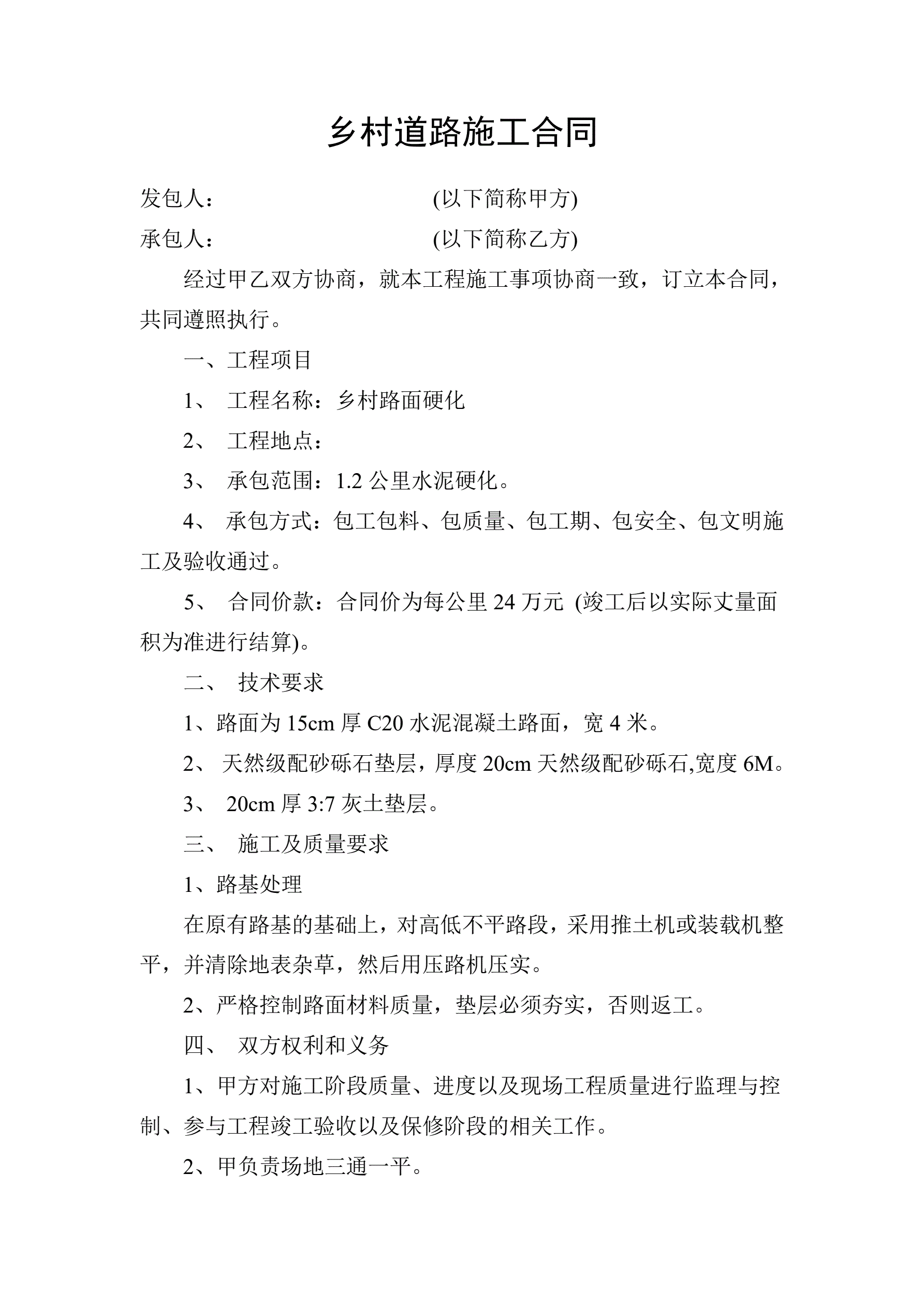 乡村道路施工合同