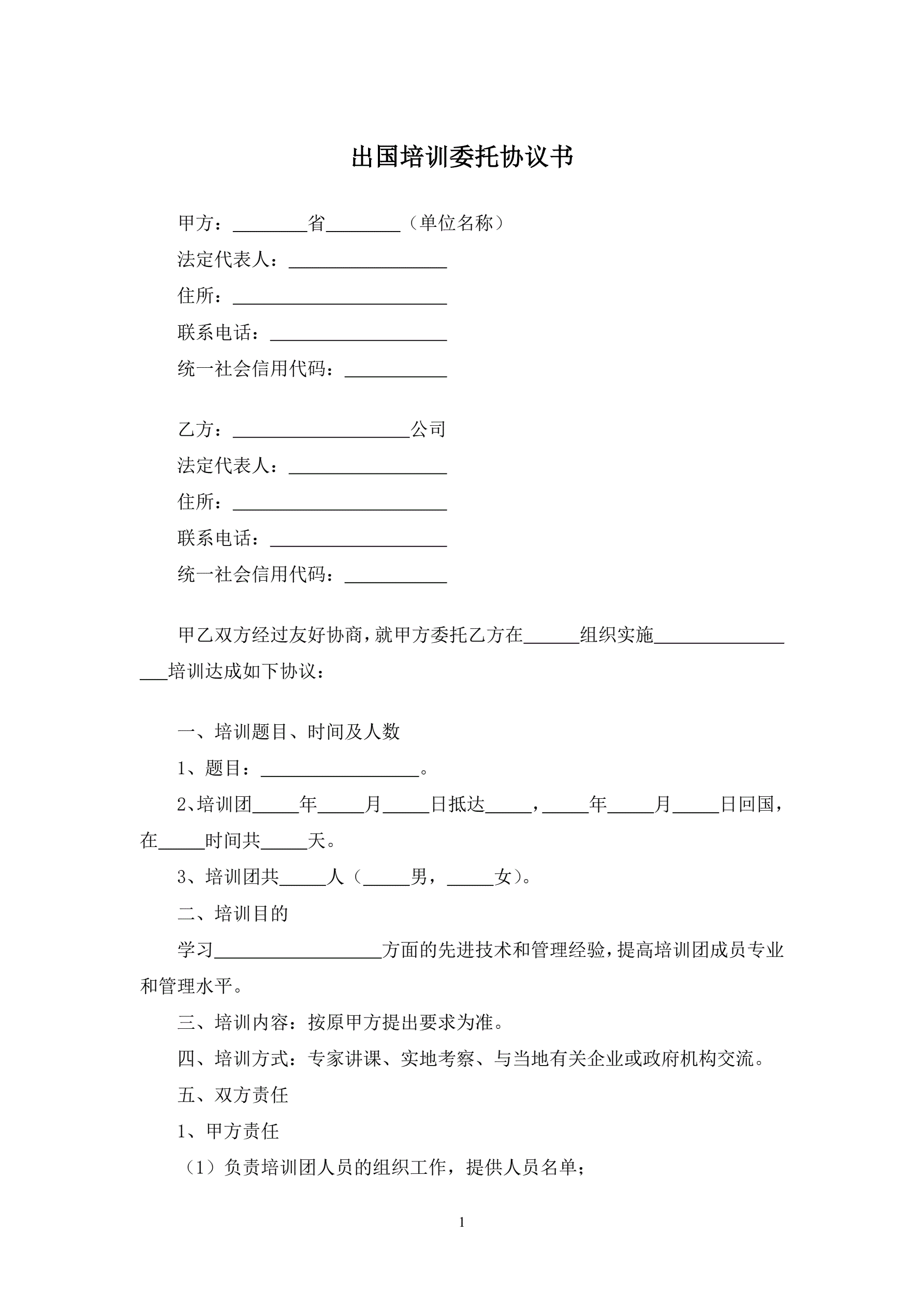 >出国培训委托协议书