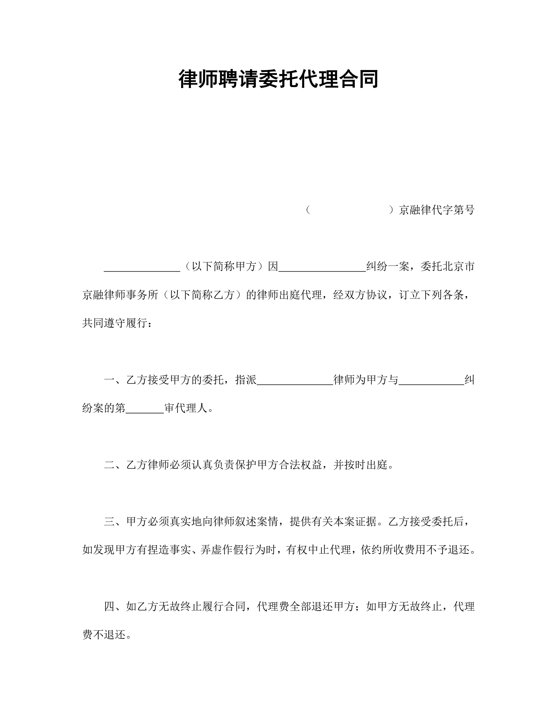 >律师聘请委托代理合同