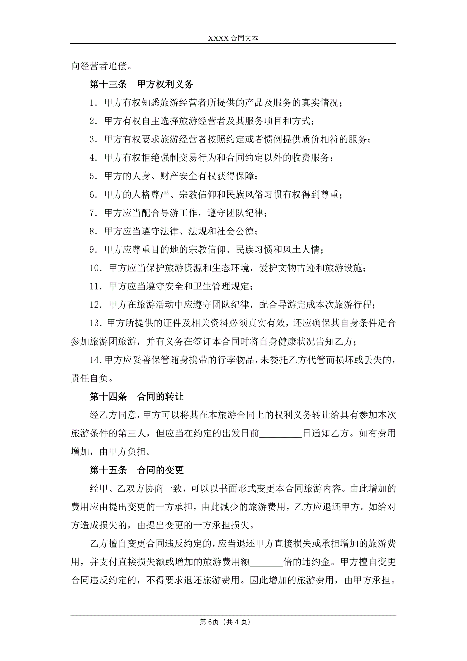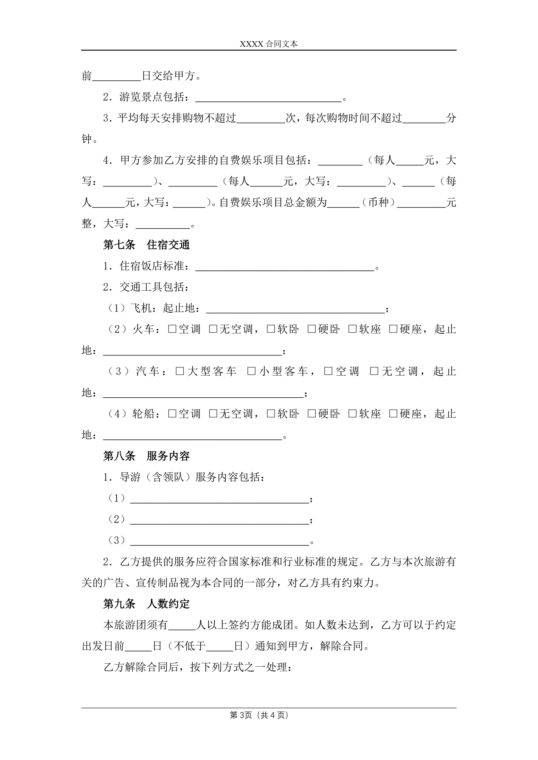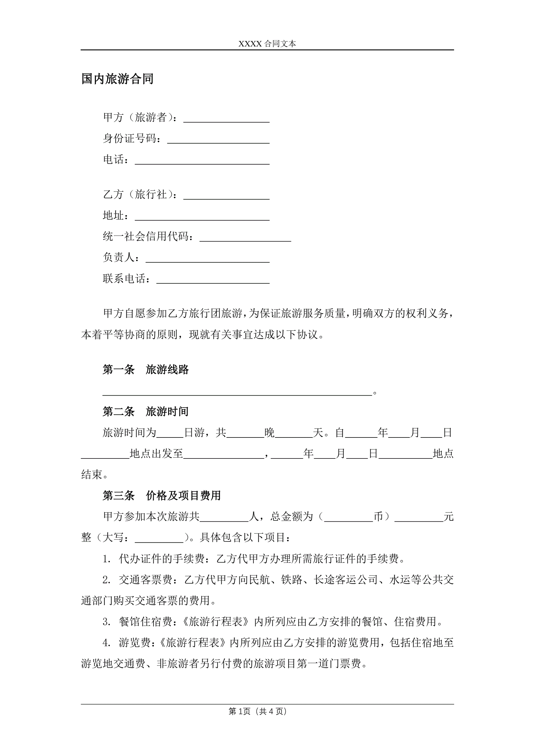>国内旅游合同