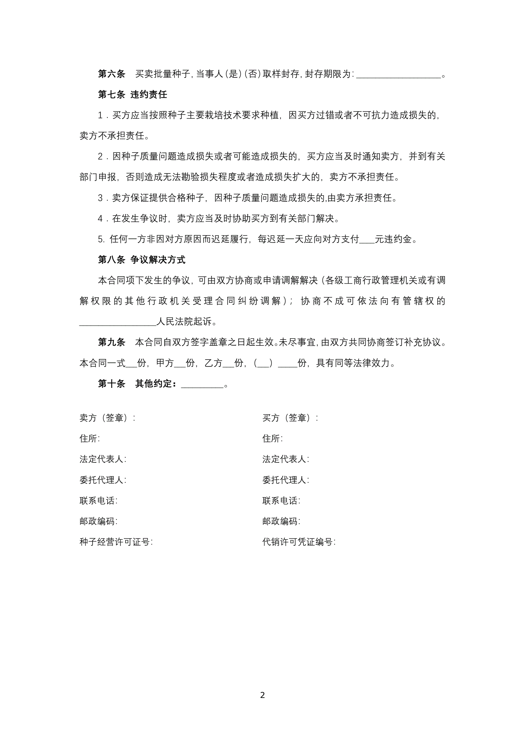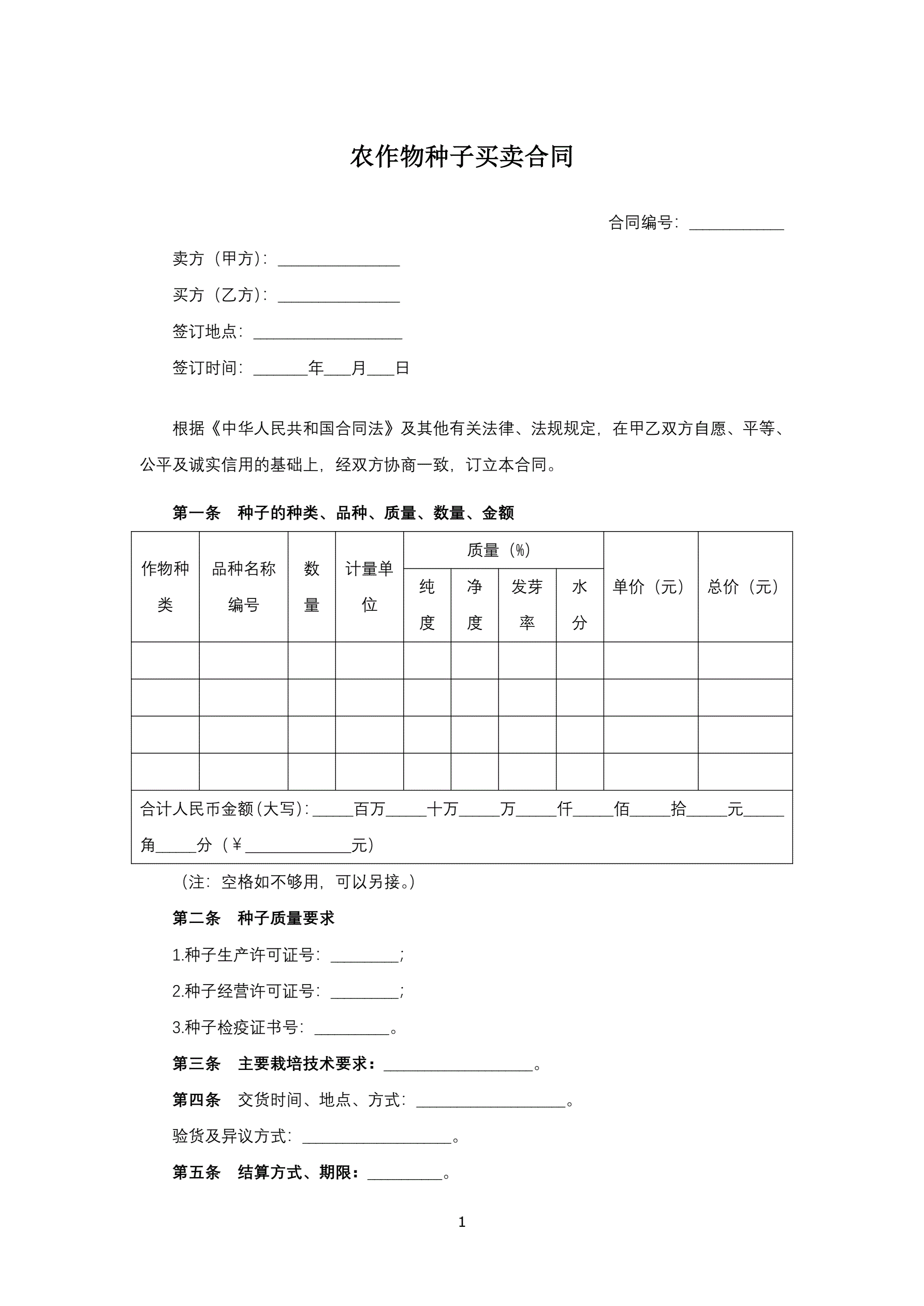 >农作物种子买卖合同