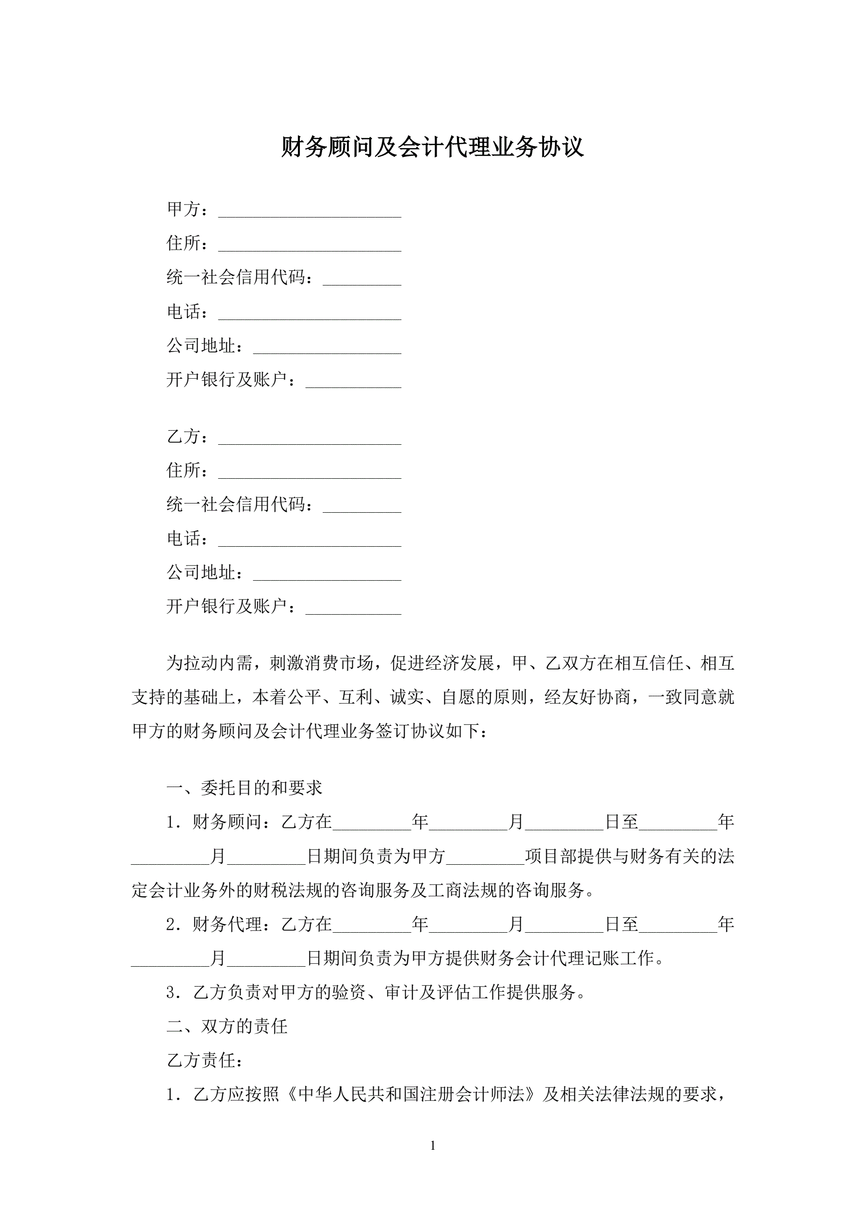 财务顾问及会计代理业务协议