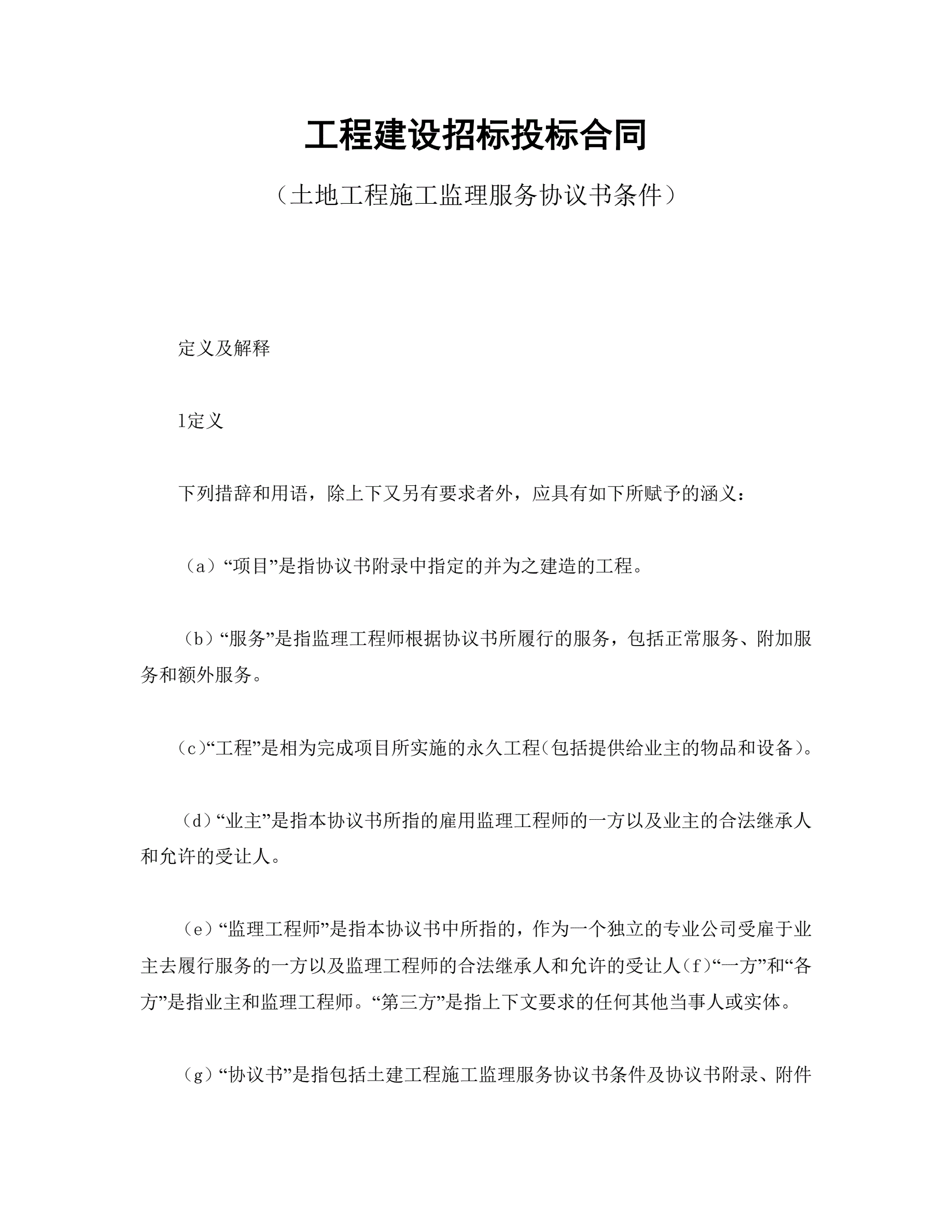 工程建设招标投标合同(土地工程施工监理服务协议书条件)