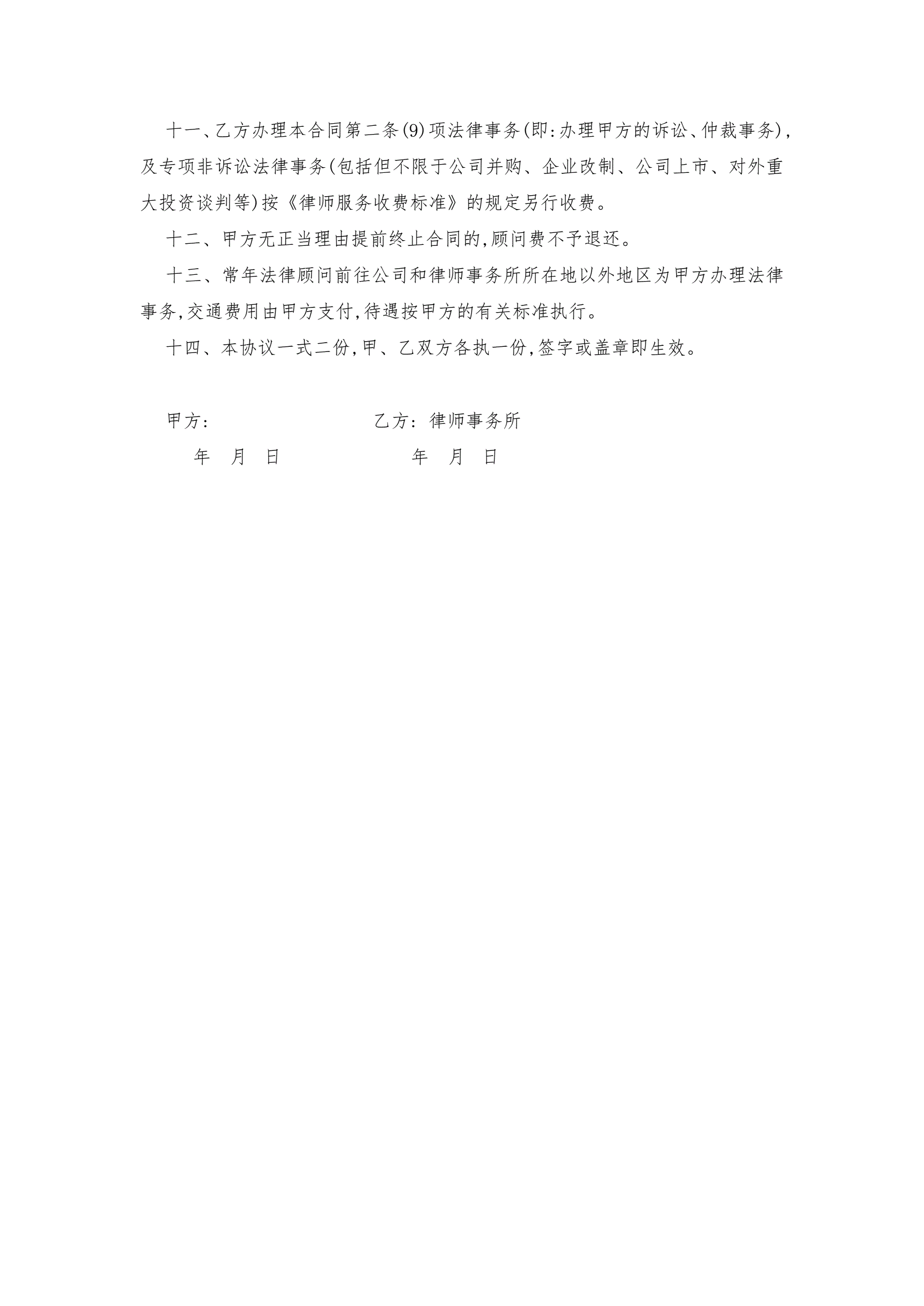 常年法律顾问聘请合同