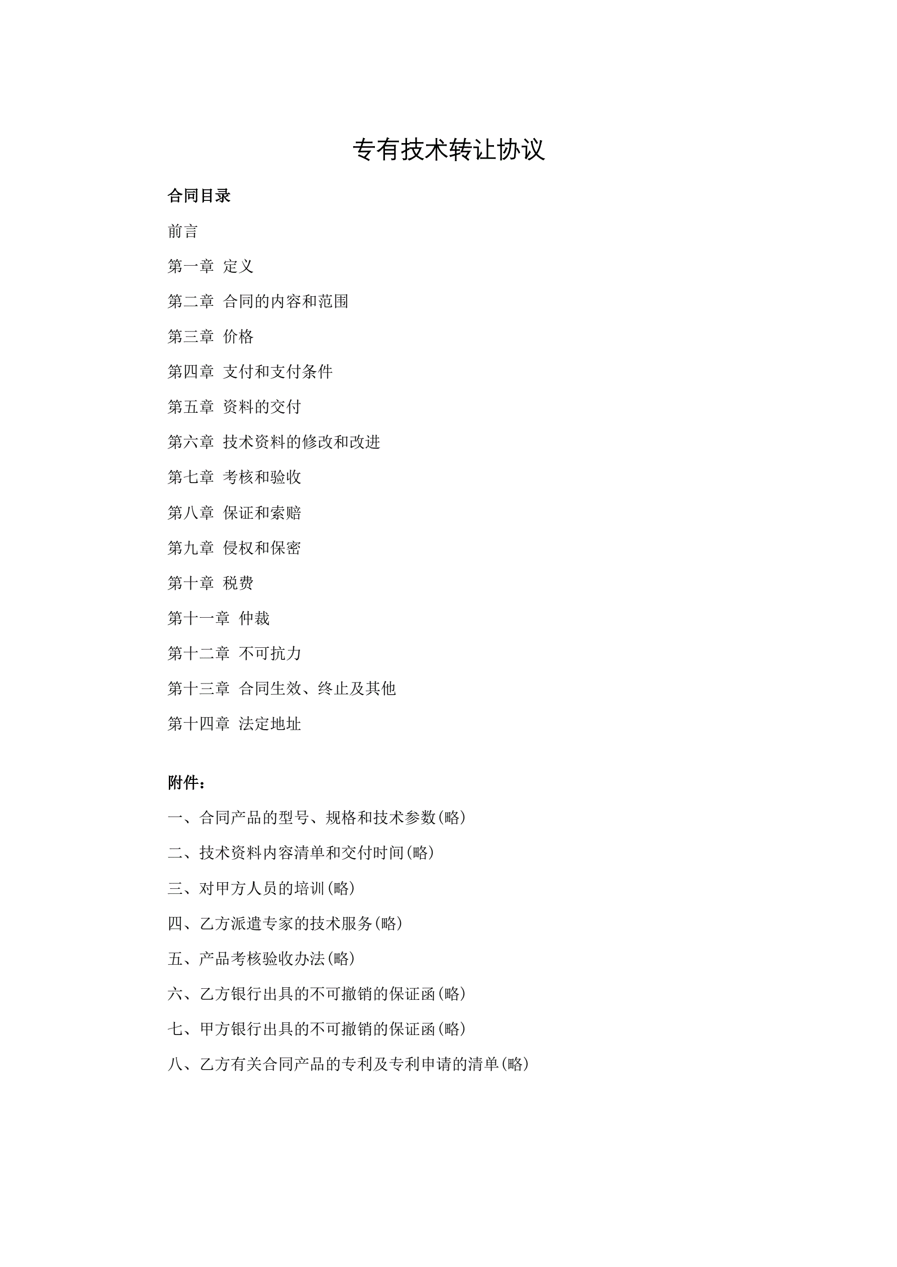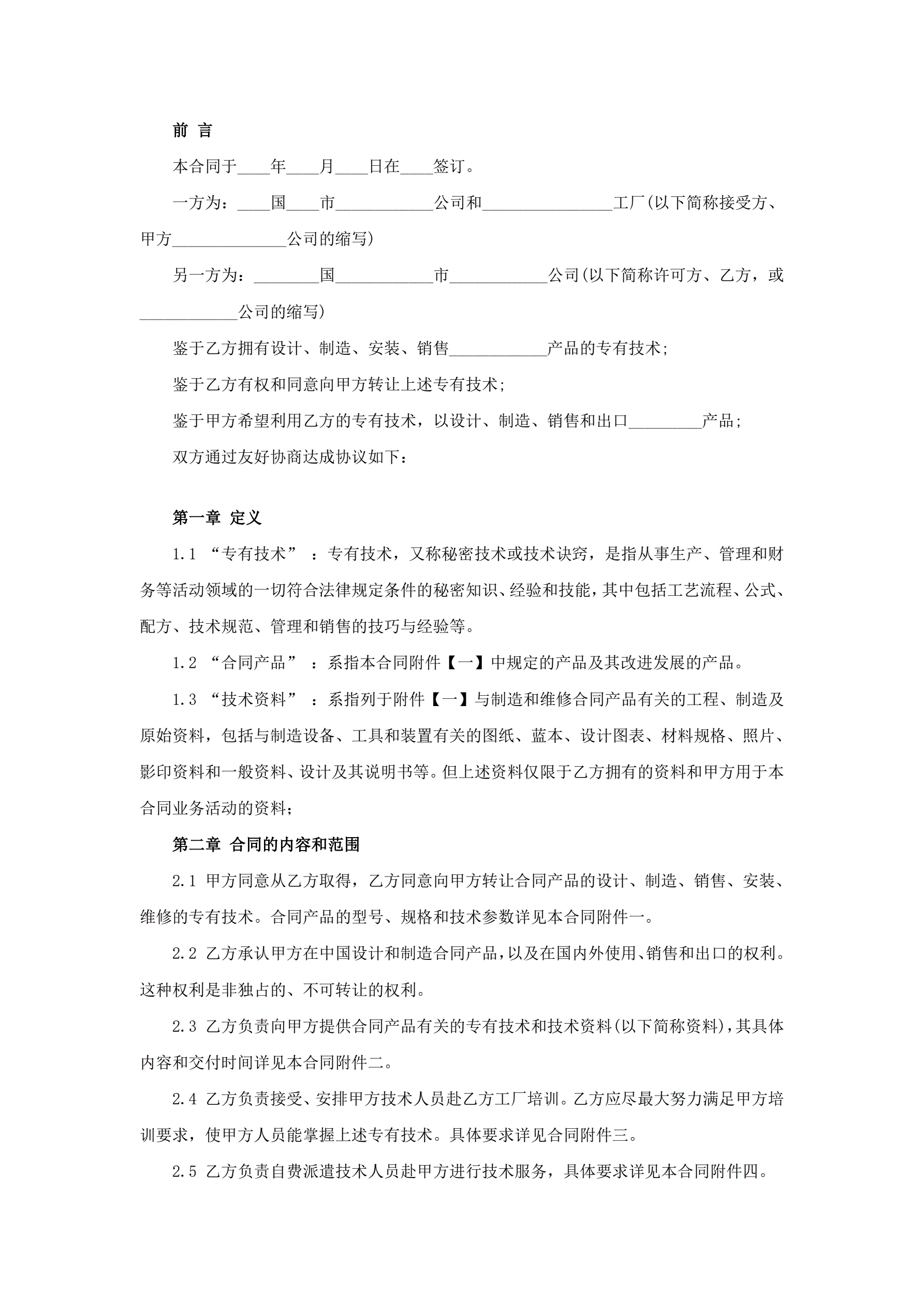 专有技术转让协议