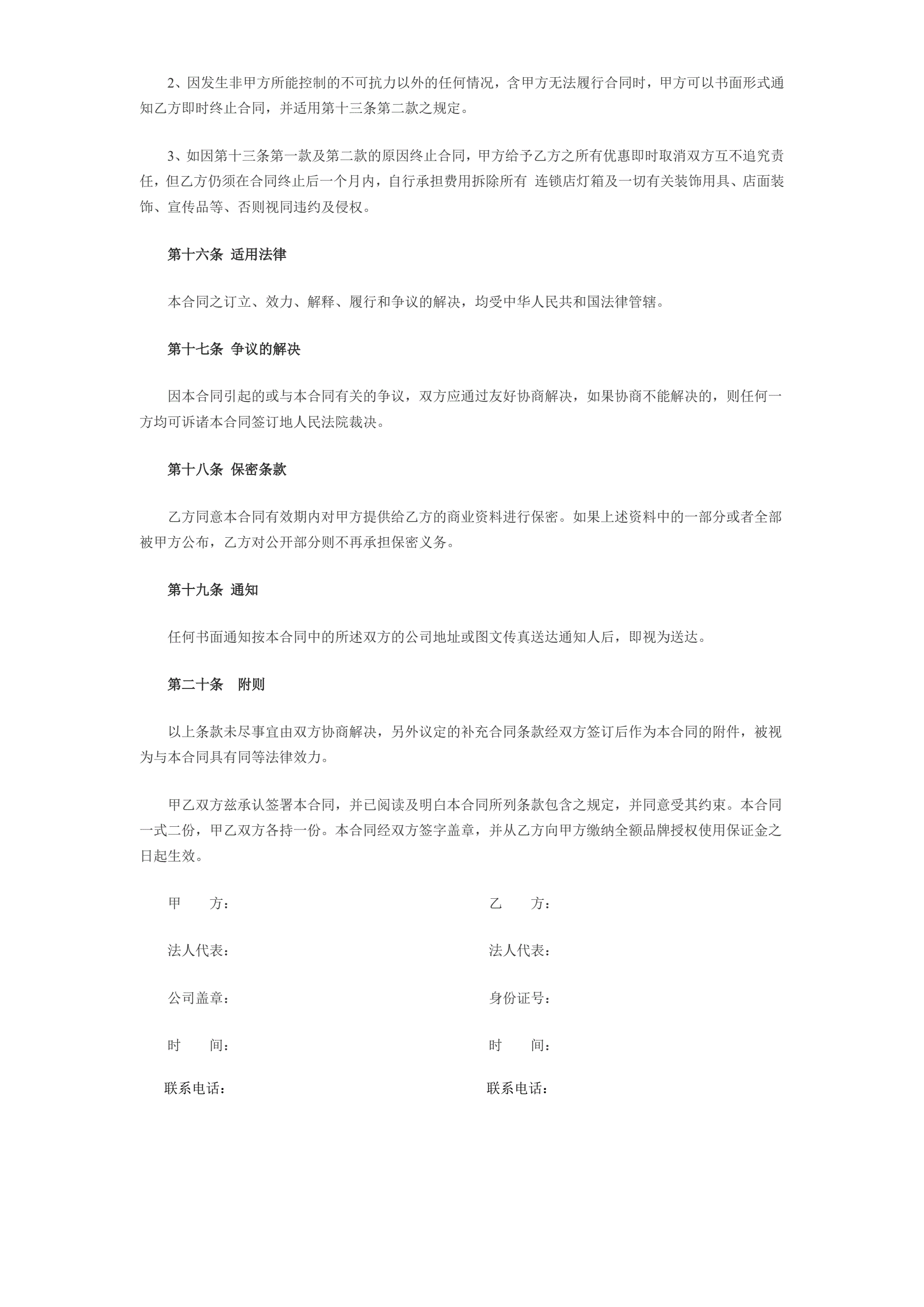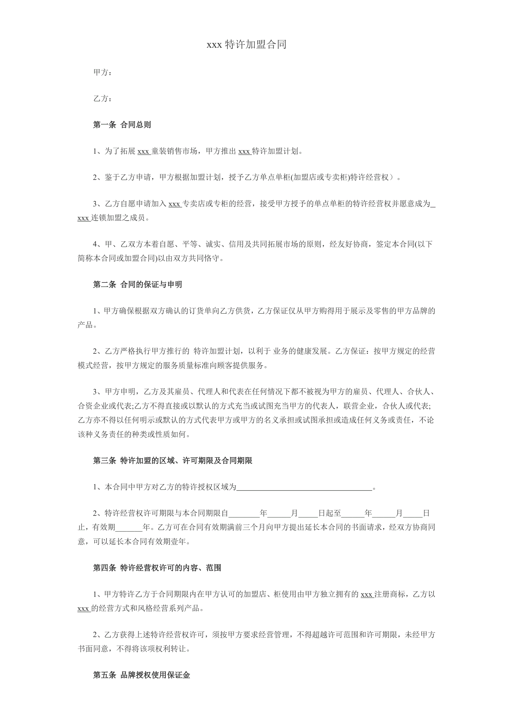 合同名称:服装品牌加盟合同