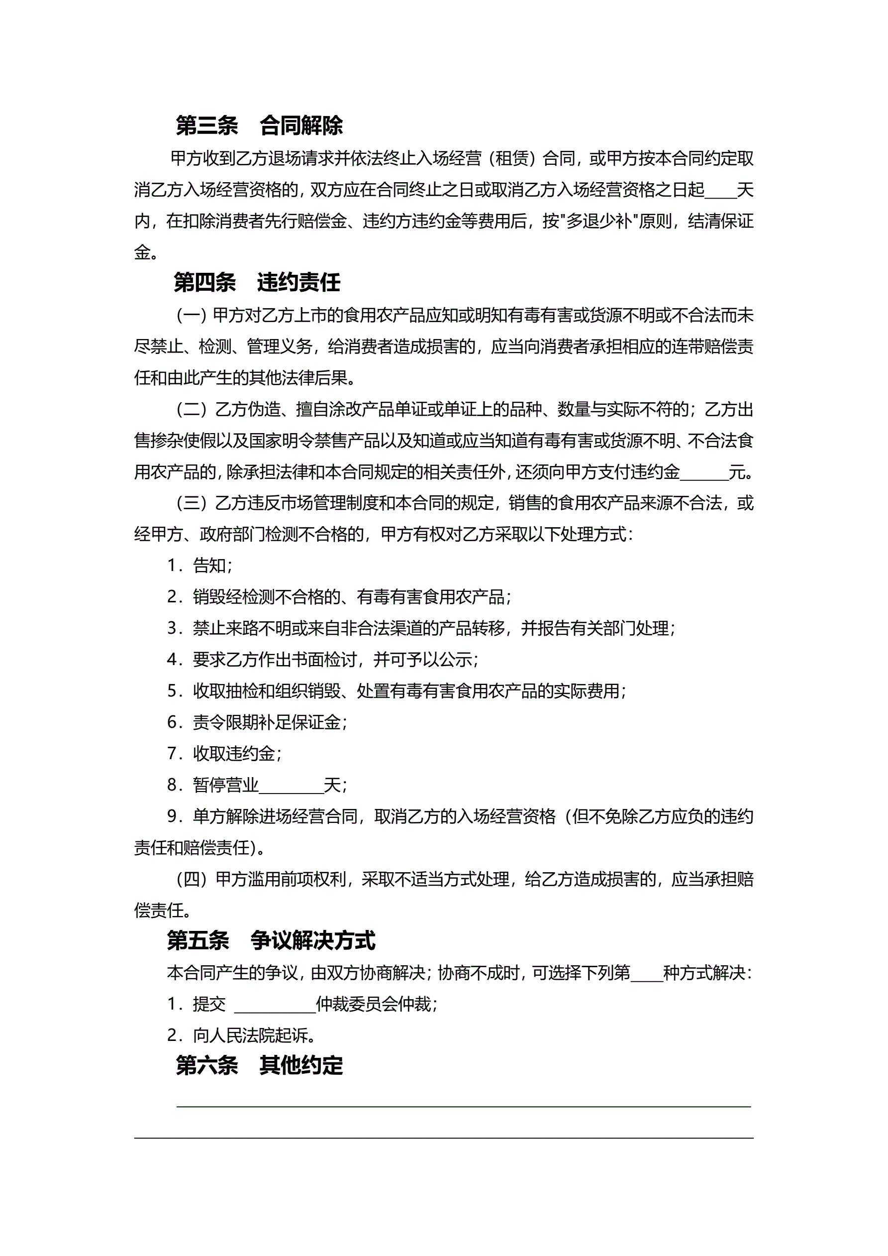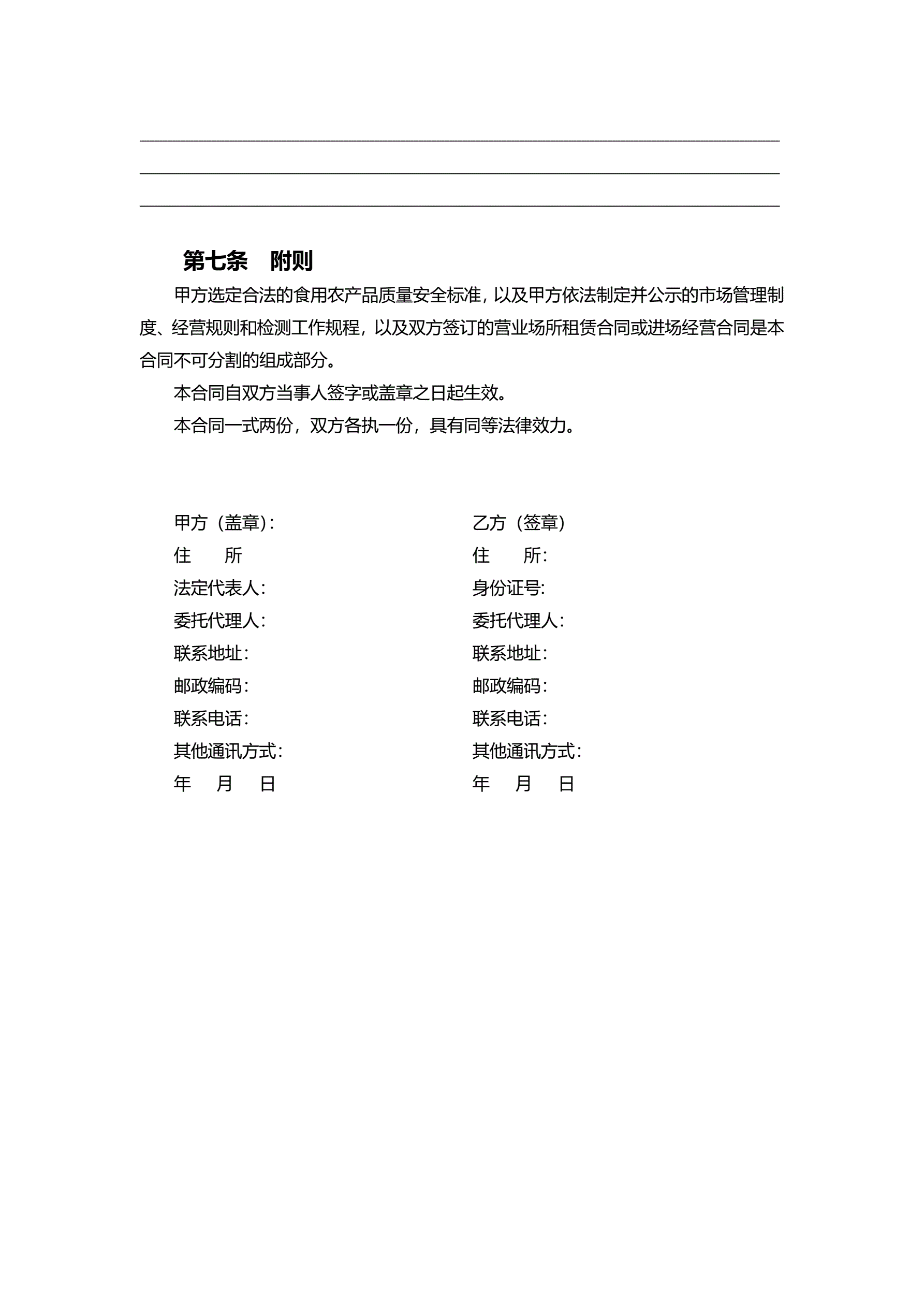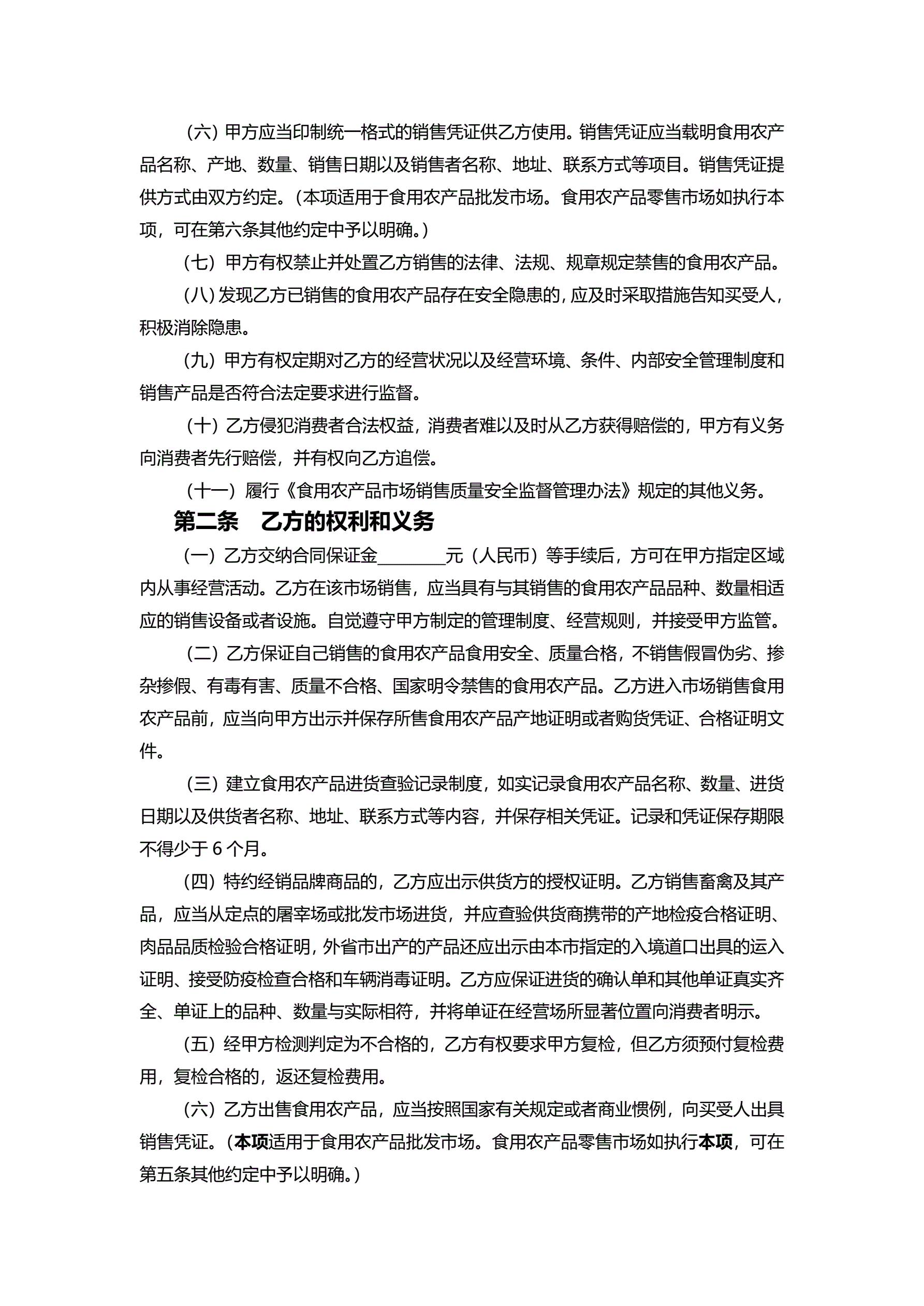 >天津市食用农产品质量安全合同