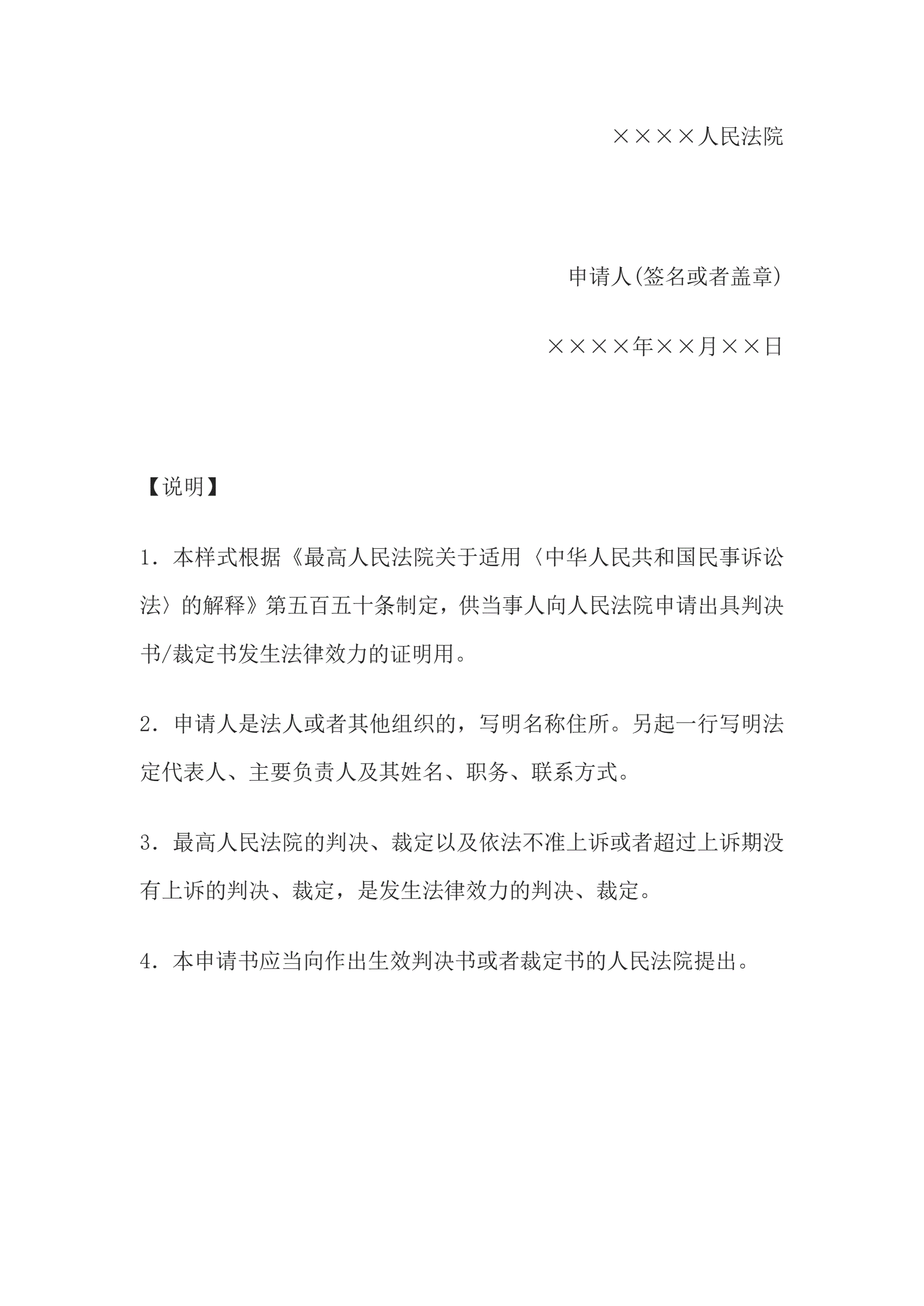 >申请书(申请证明判决书或者裁定书的法律效力用)
