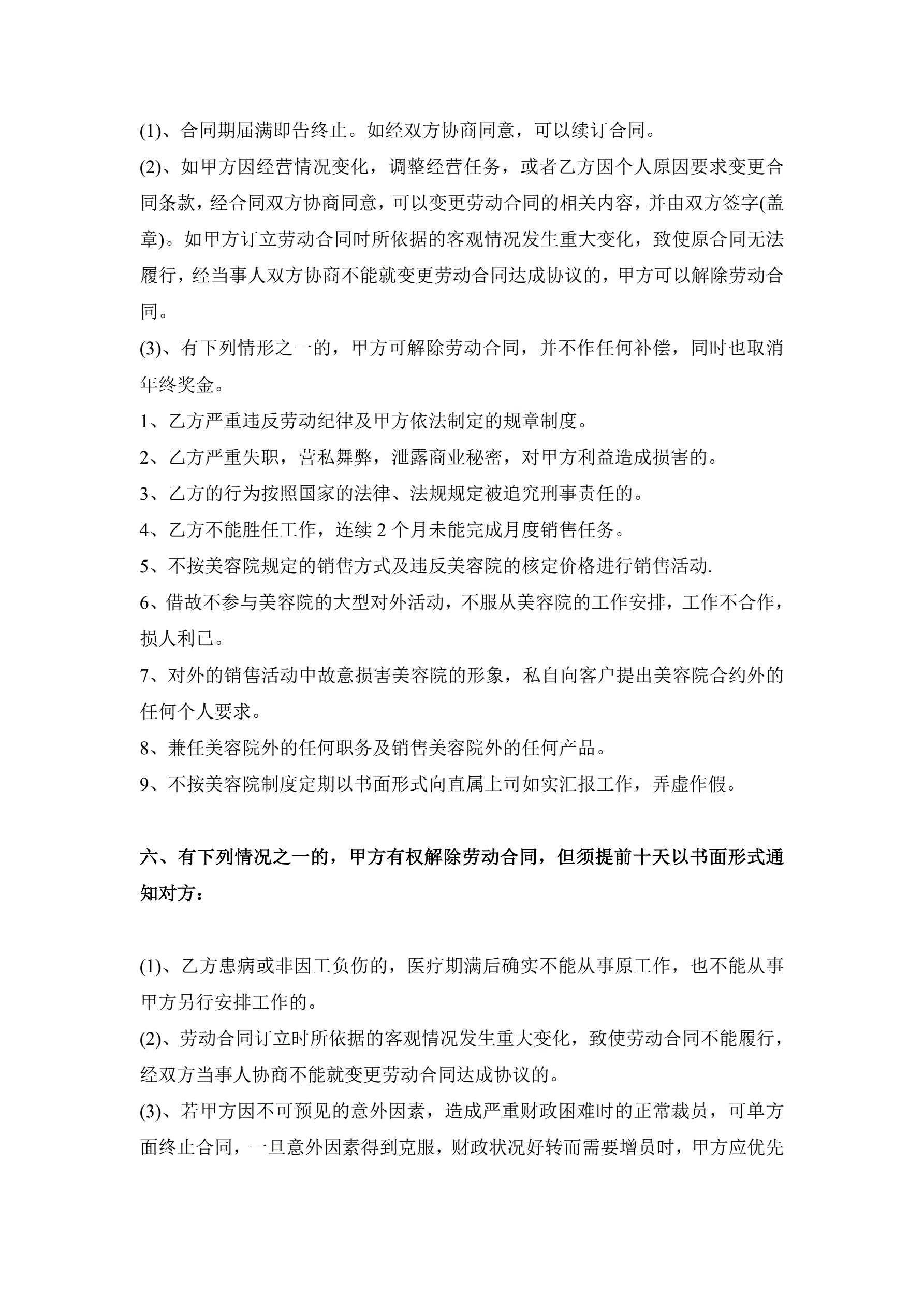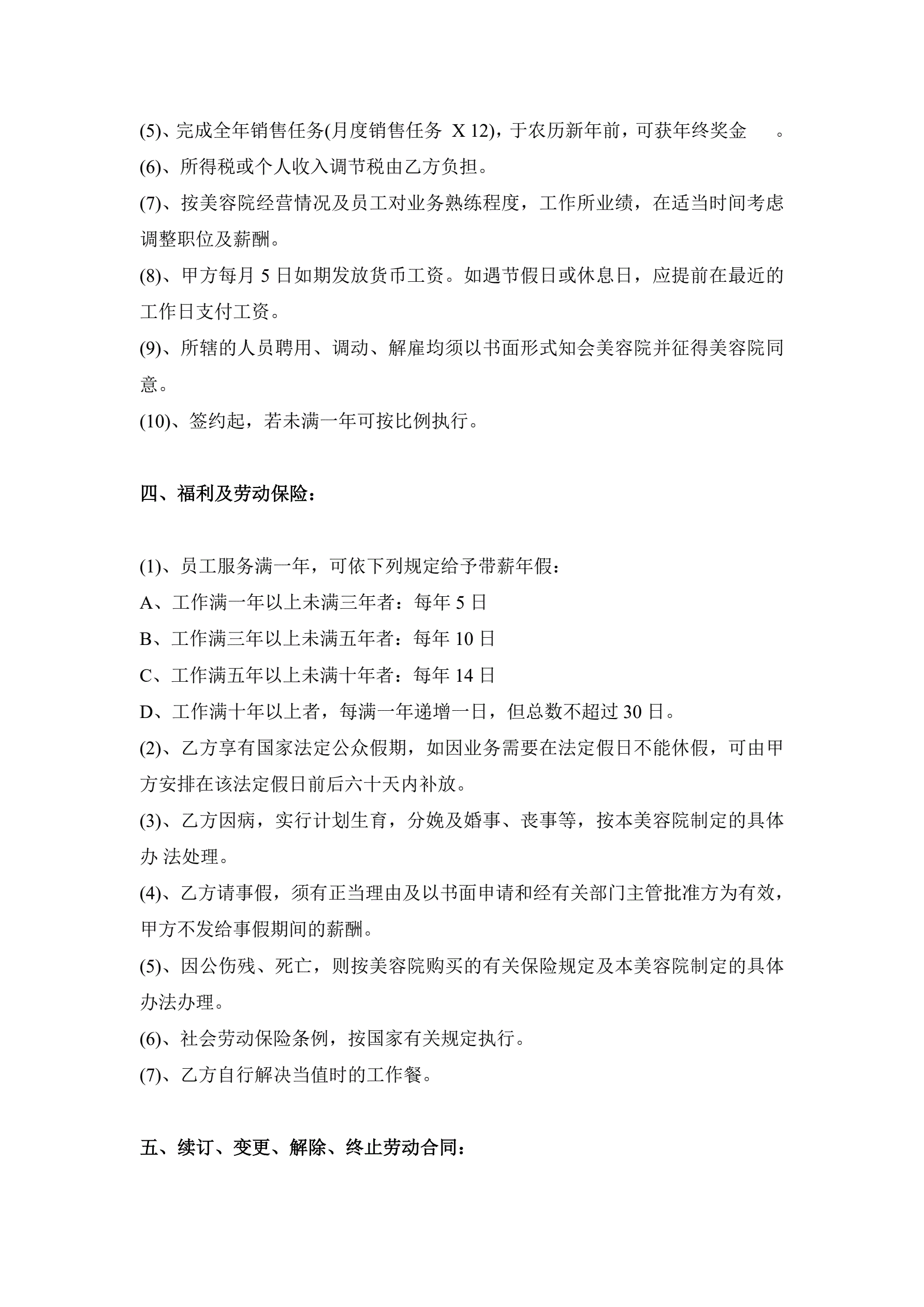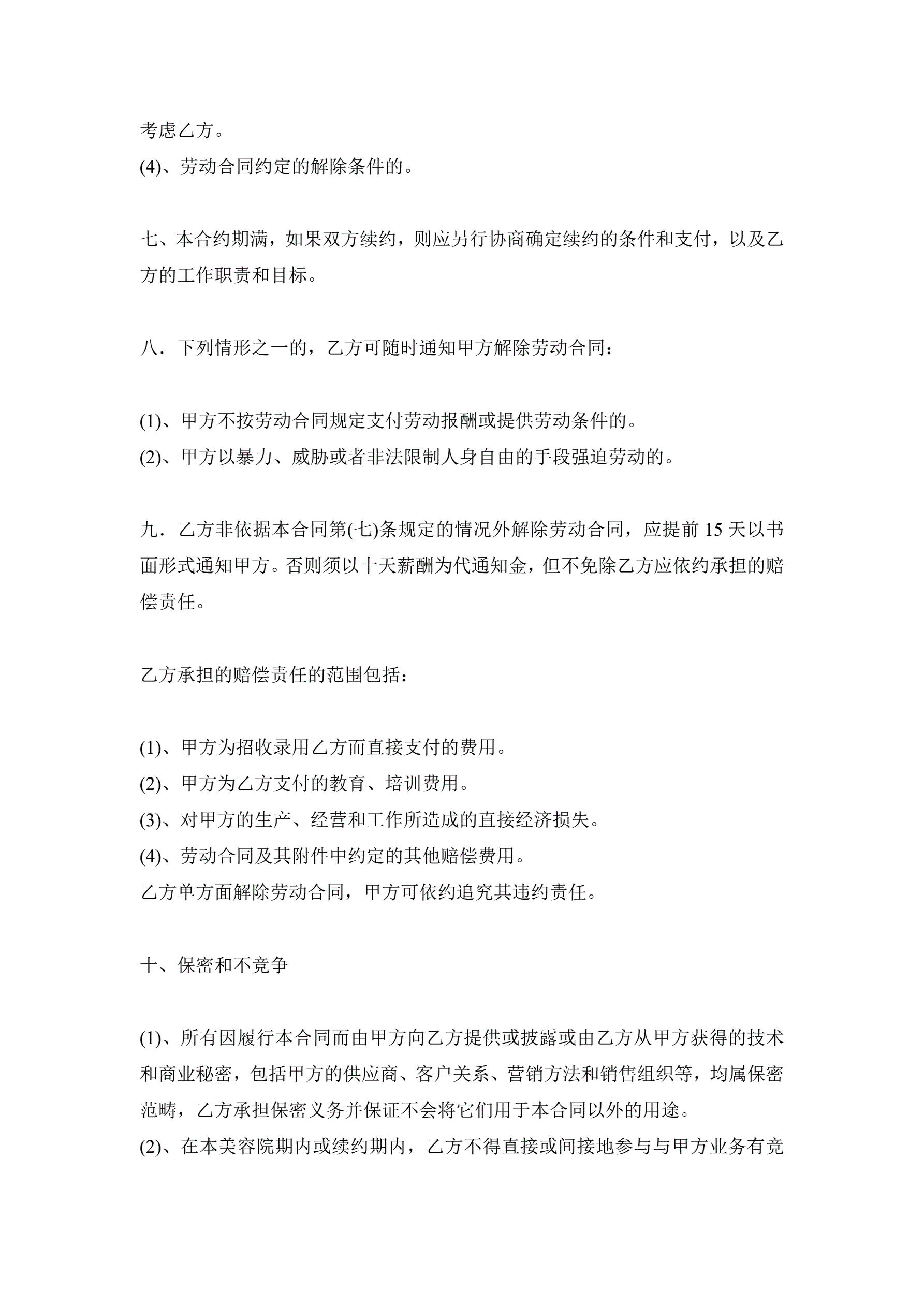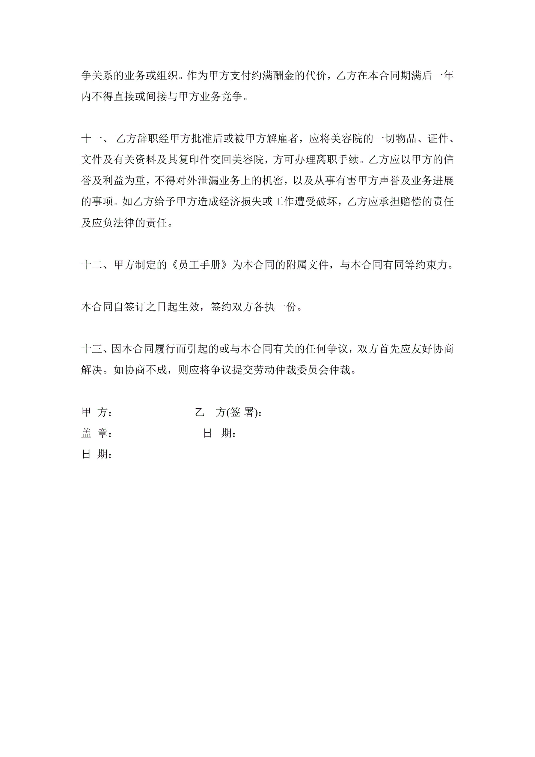 >美容院员工正式聘用合同范本