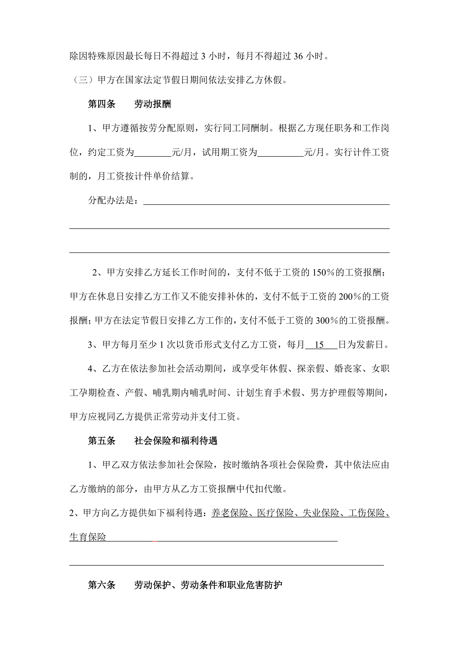 武汉市新版劳动合同
