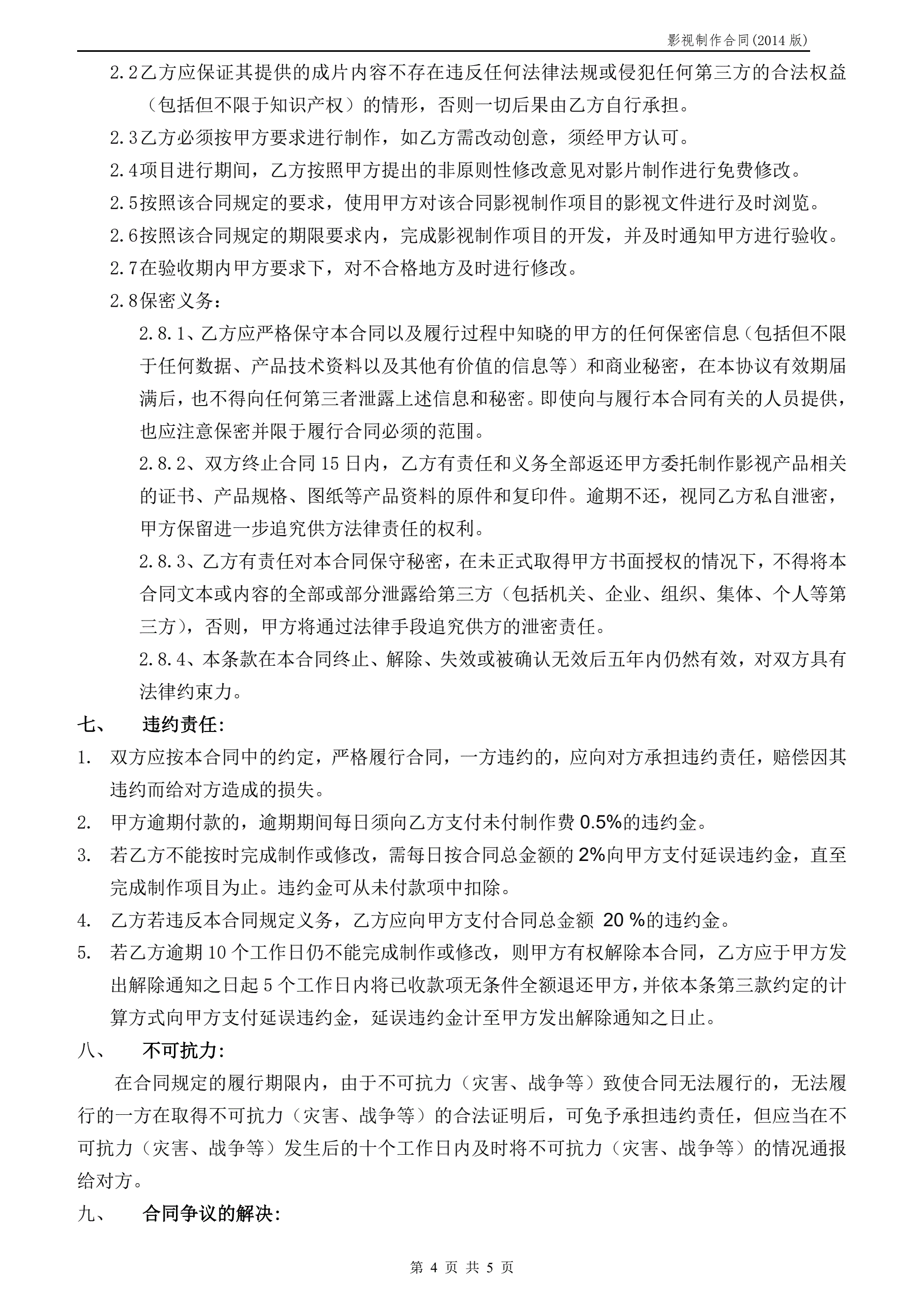 >影视制作合同范本